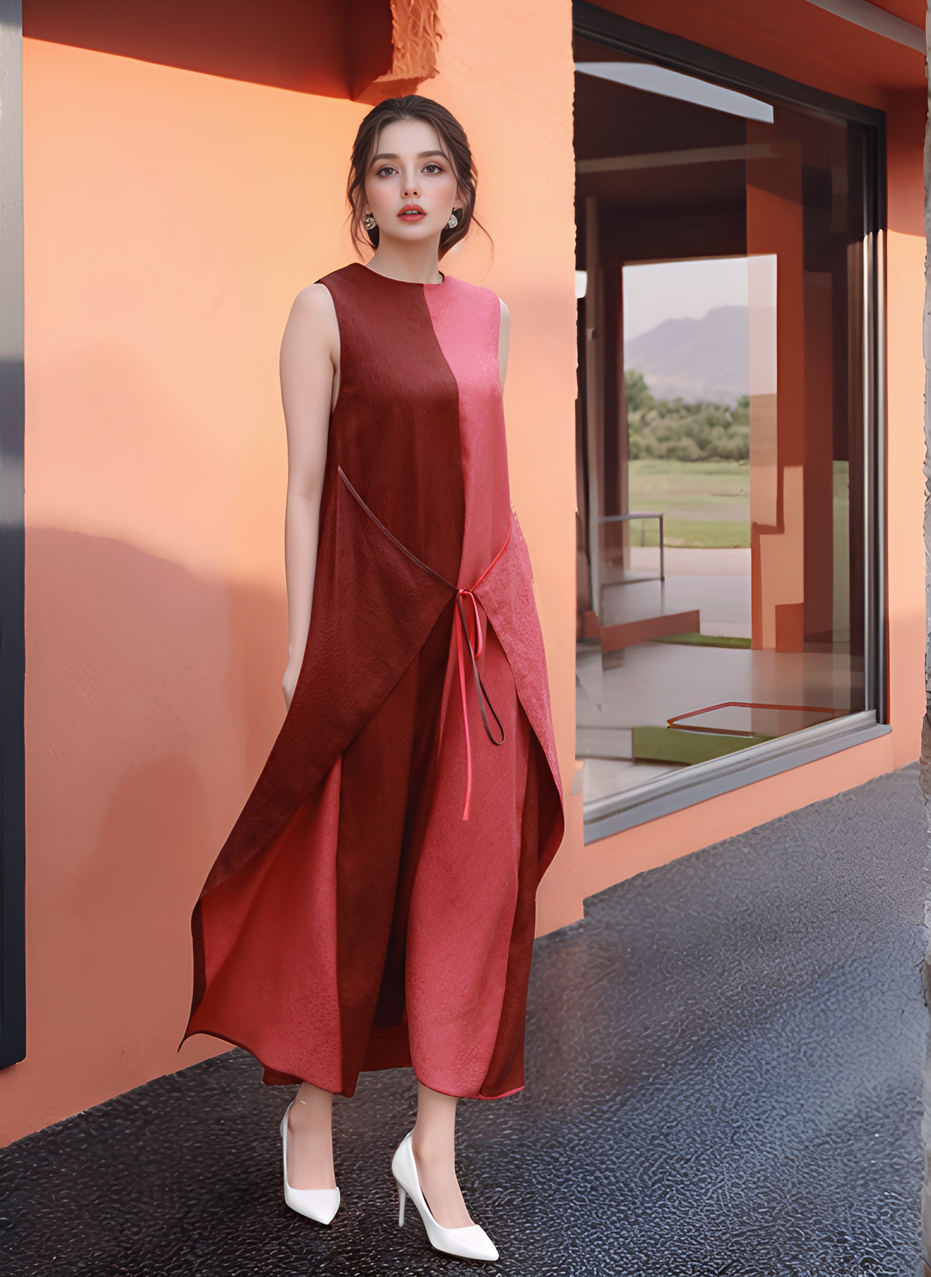 商品:LIN HL 双拼色前搭片设计松弛感连衣裙