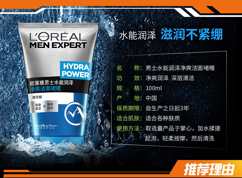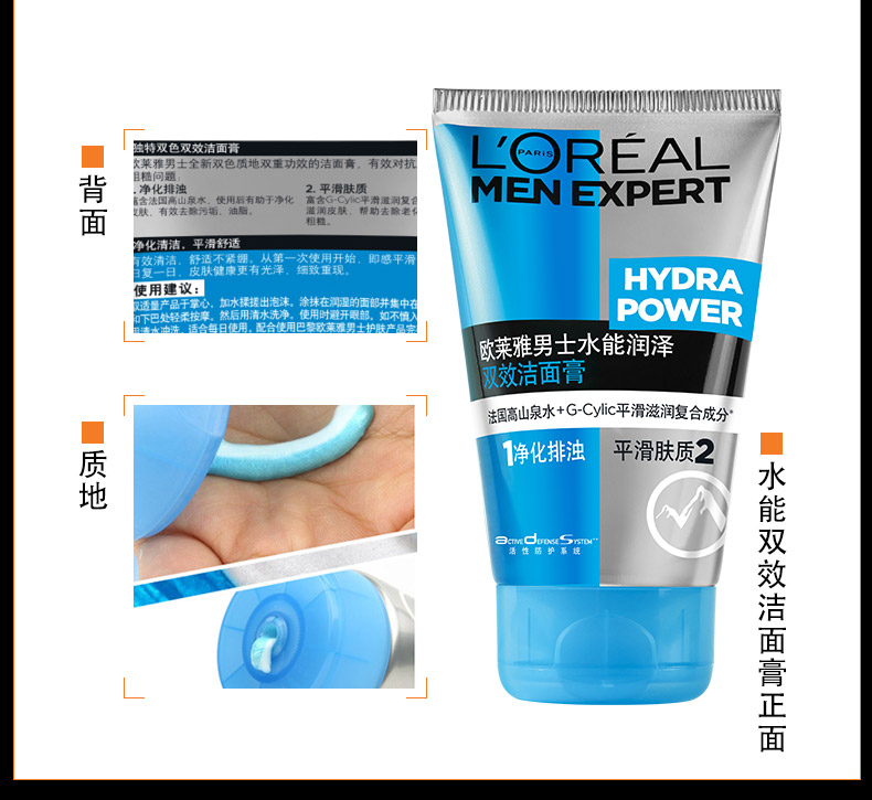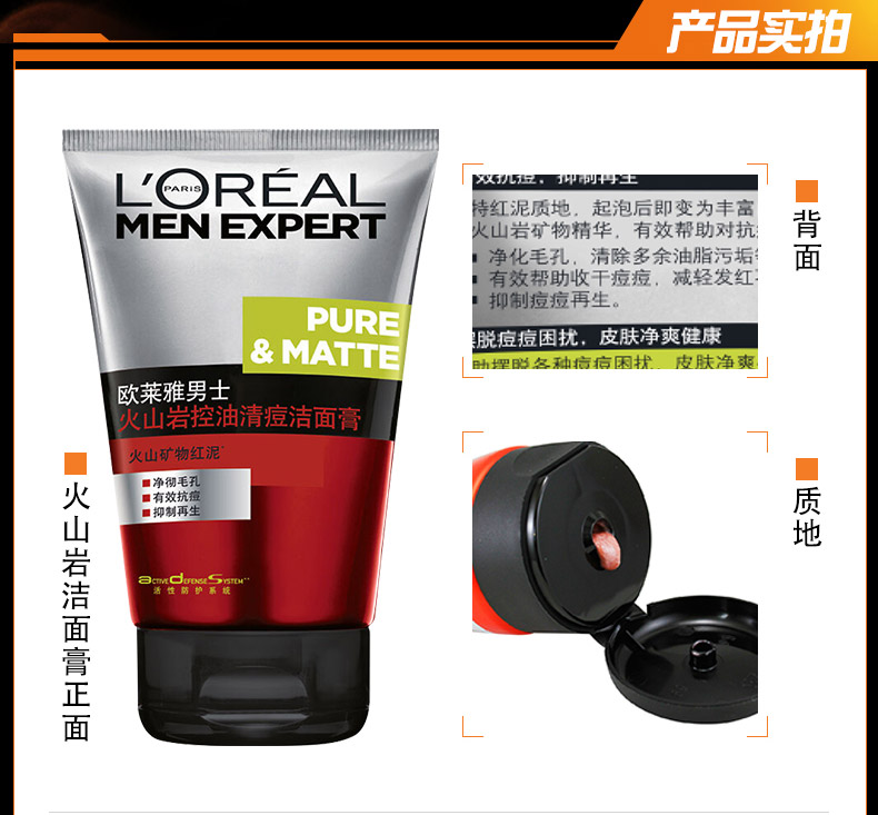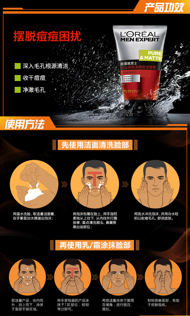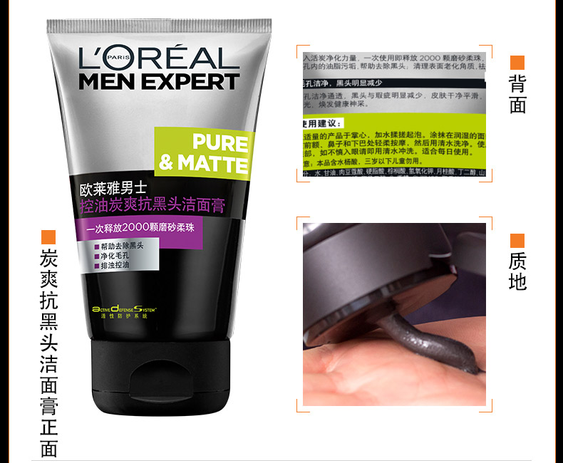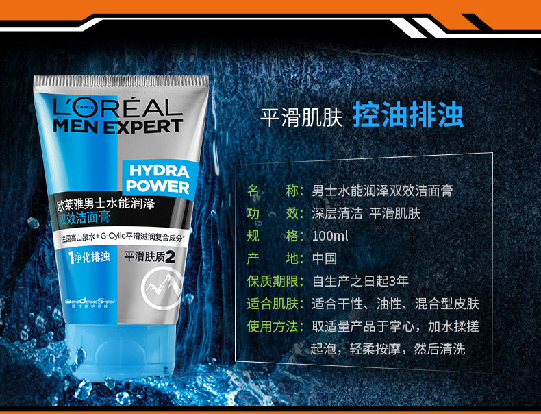 欧莱雅男士(控油碳爽抗黑头/矿漠泥长效控油) 洁面膏100ml
