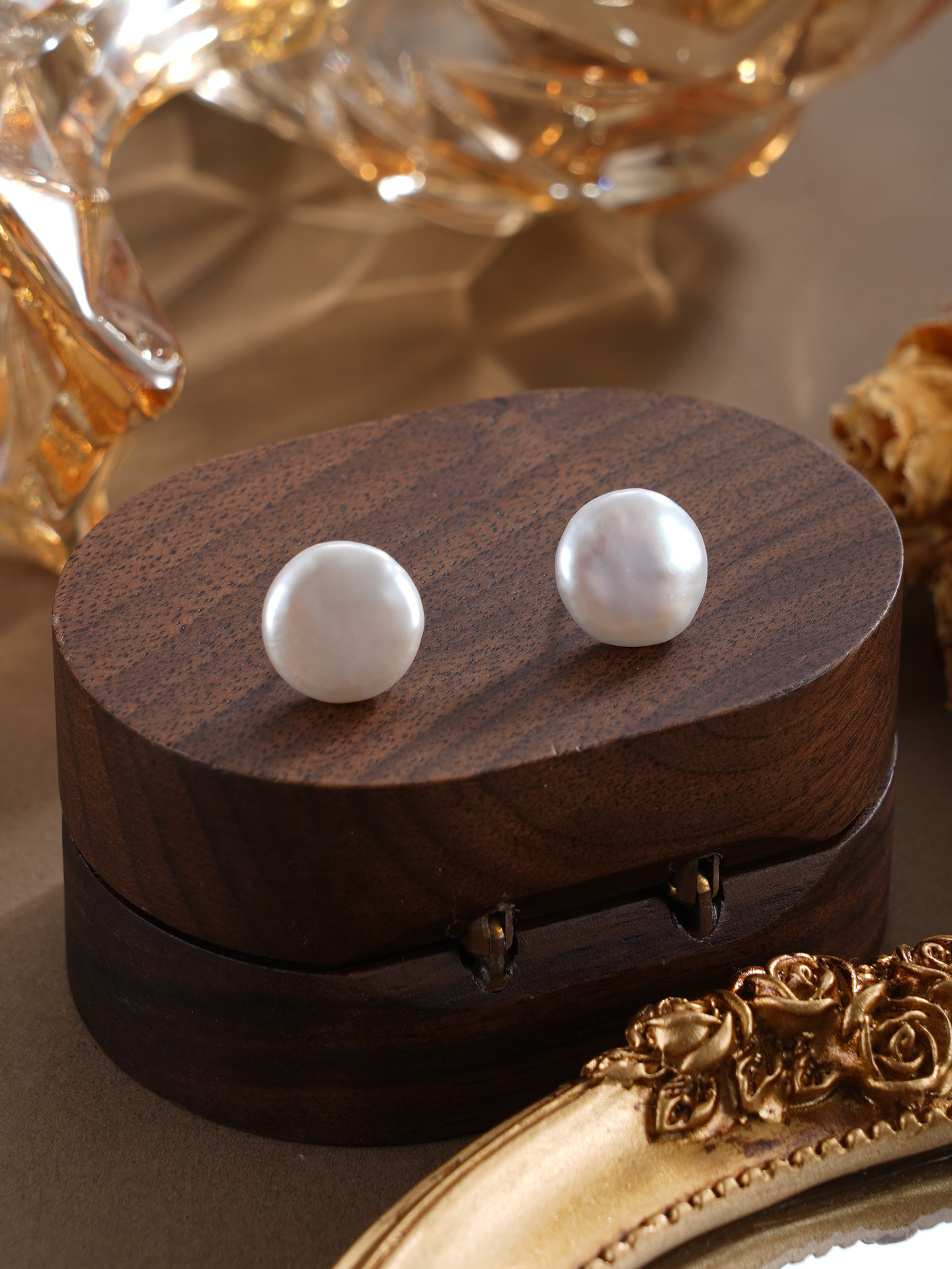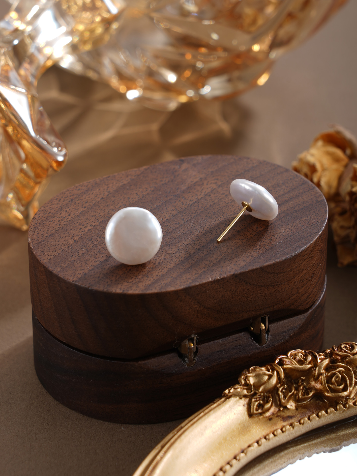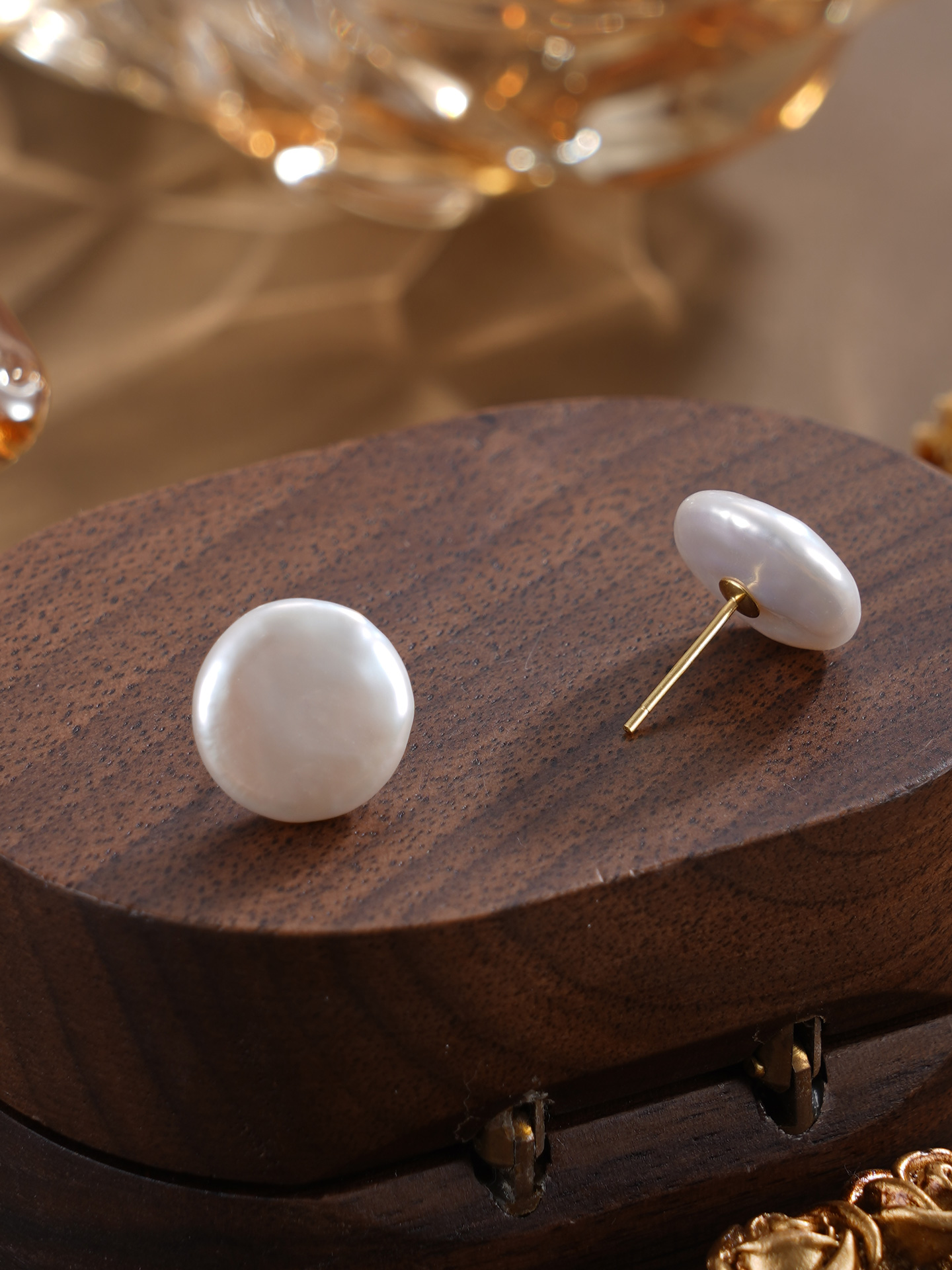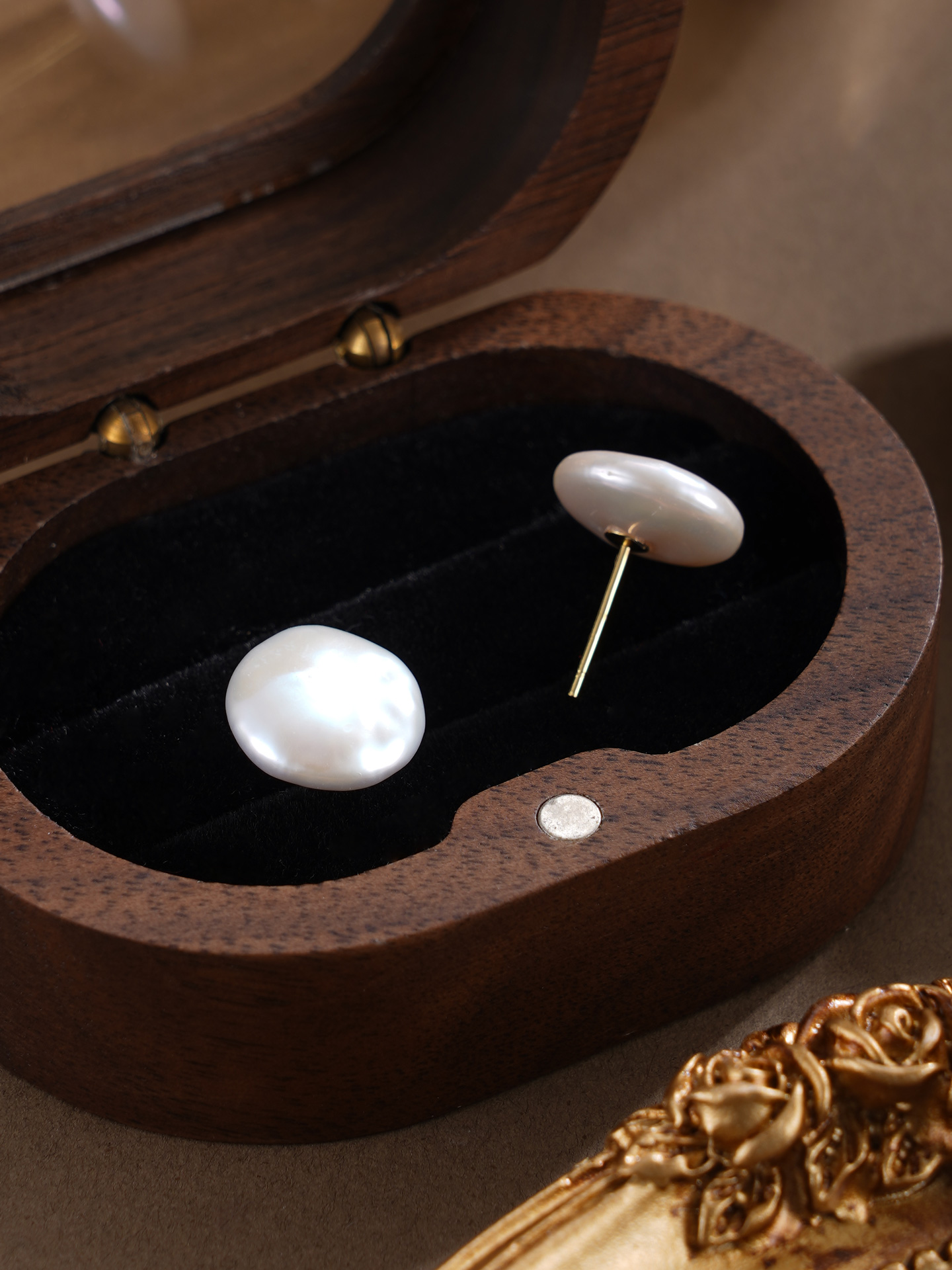 子佩集【圆月清歌】银S925珍珠惜王妃耳钉【SGE0260001】12mm珠镀金巴洛克扁珠2601