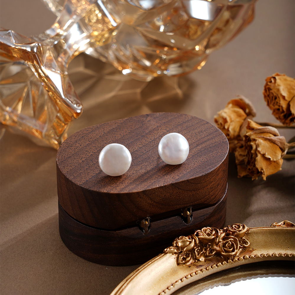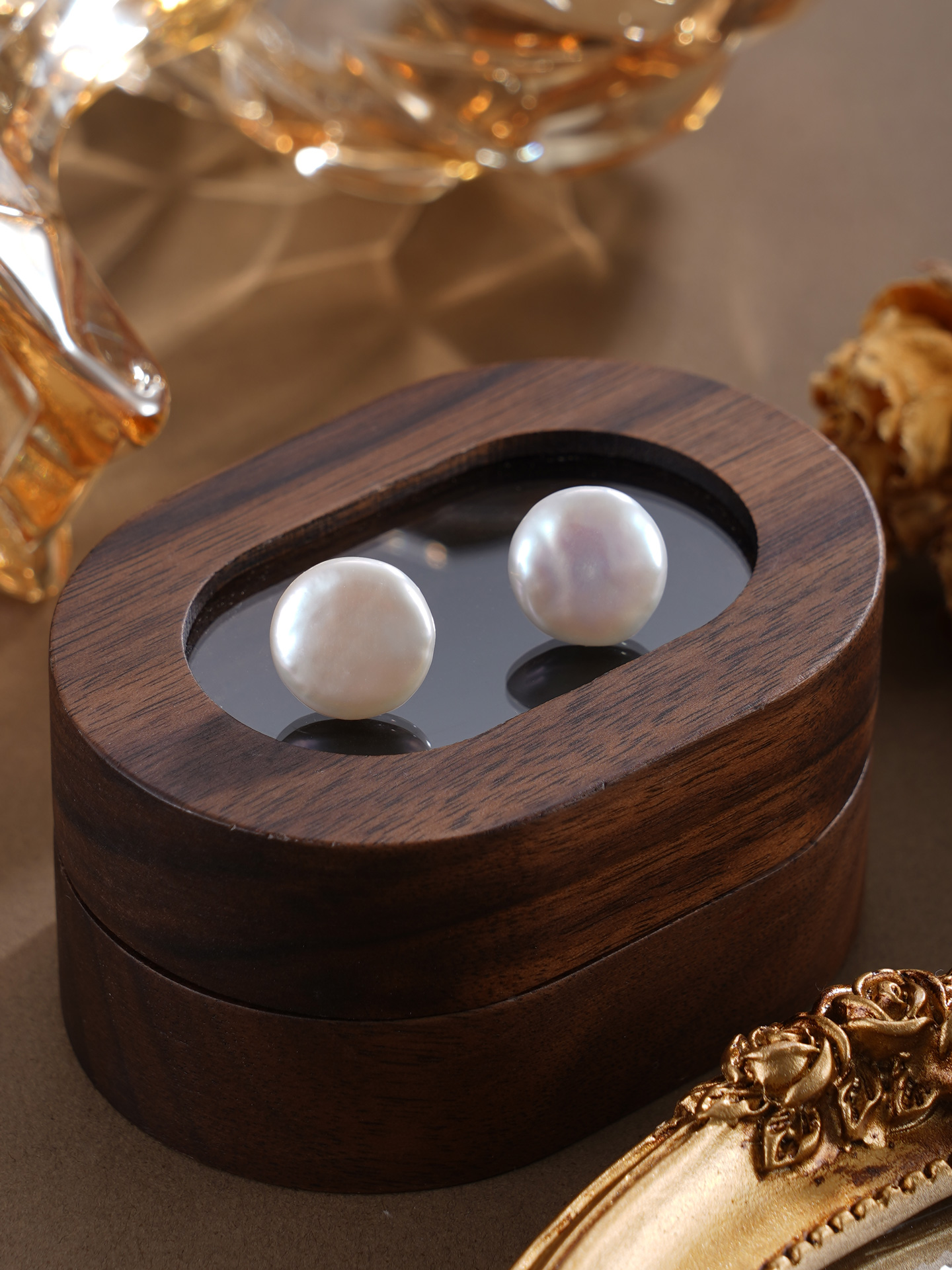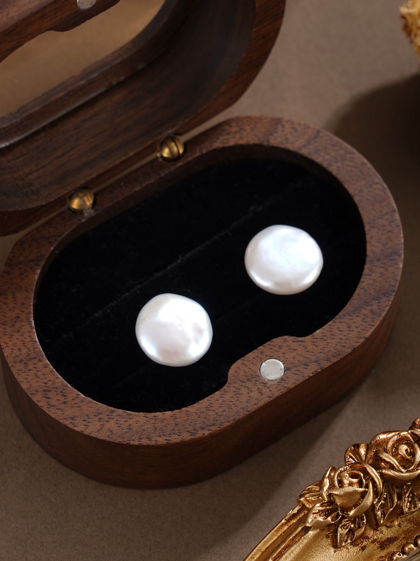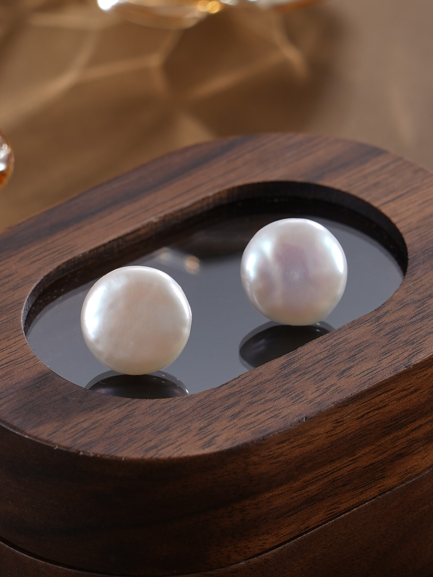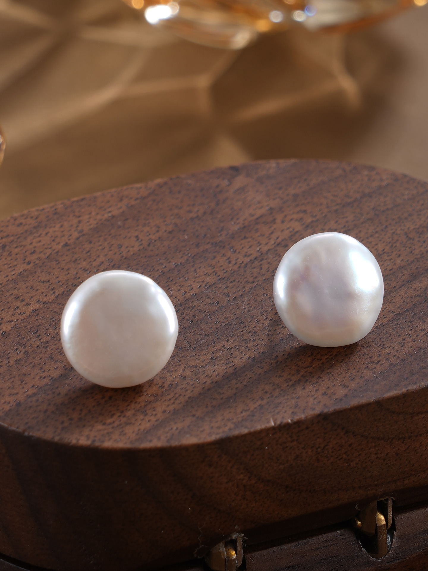 子佩集【圆月清歌】银S925珍珠惜王妃耳钉【SGE0260001】12mm珠镀金巴洛克扁珠2601