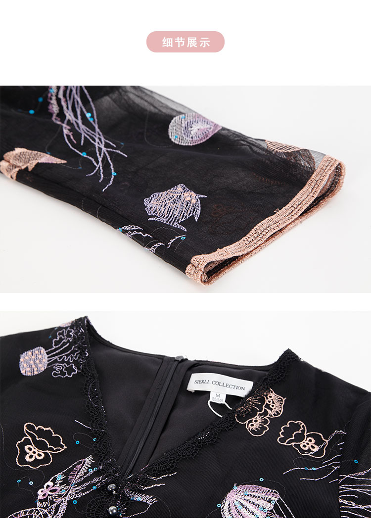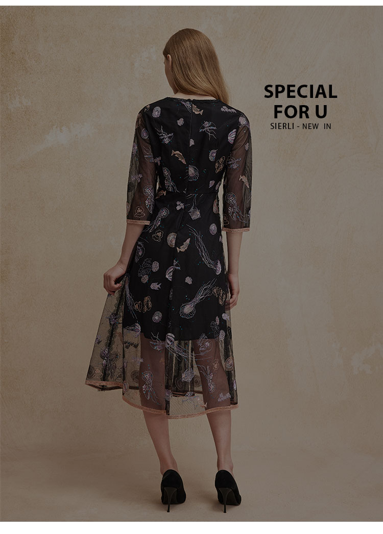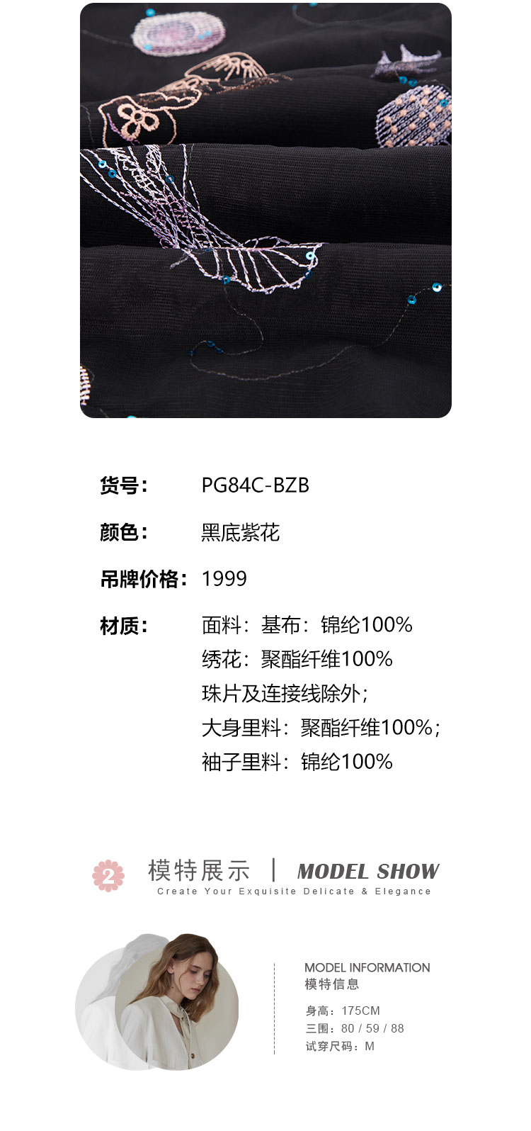 PG84C斯尔丽瑟俪2021年优雅气质绣花网布A摆裙
