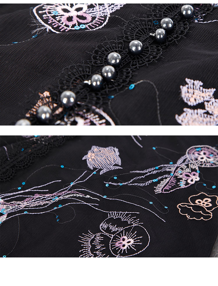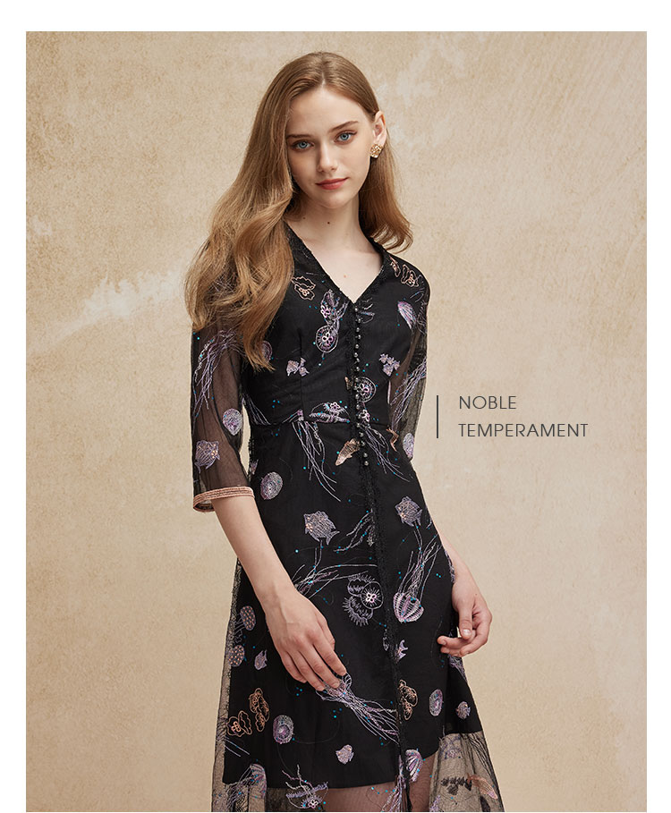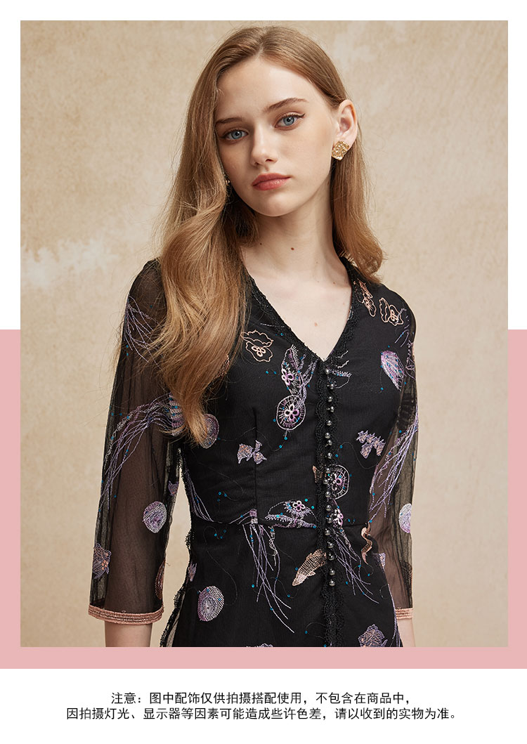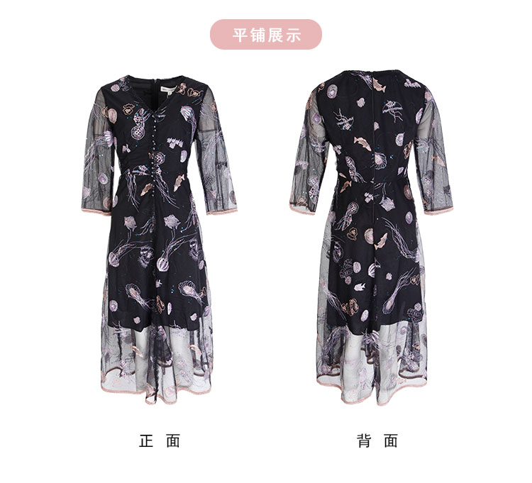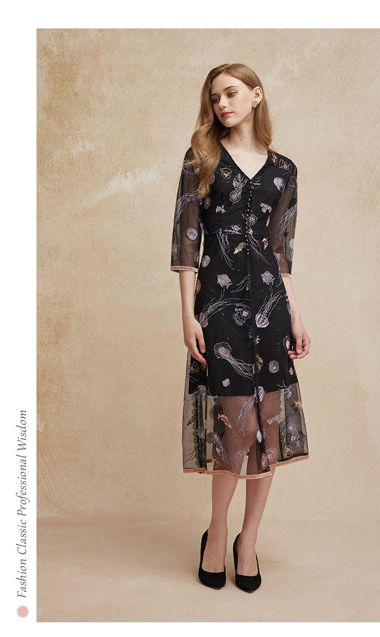 PG84C斯尔丽瑟俪2021年优雅气质绣花网布A摆裙