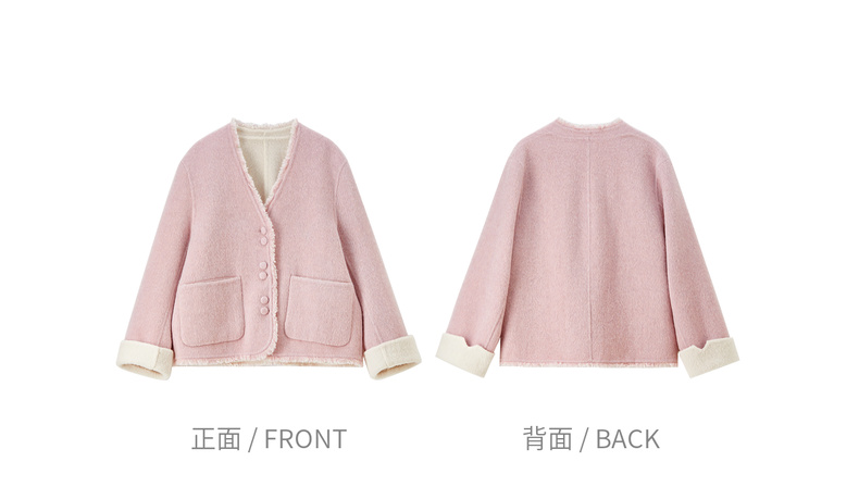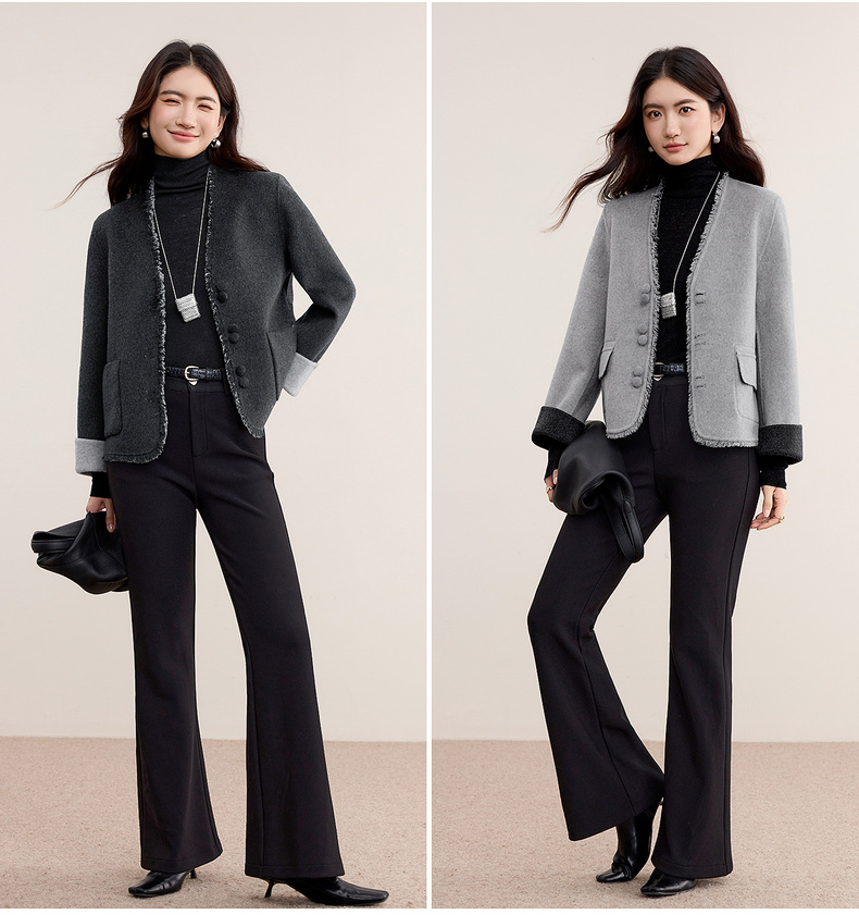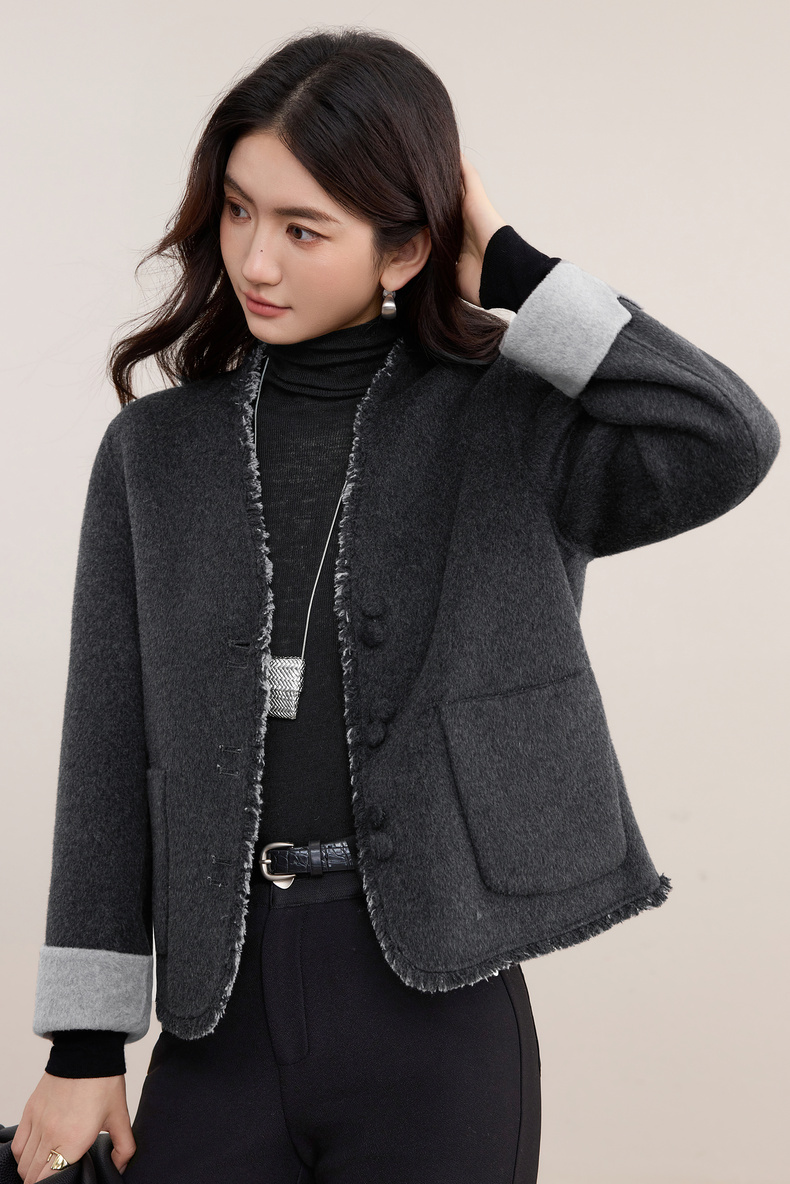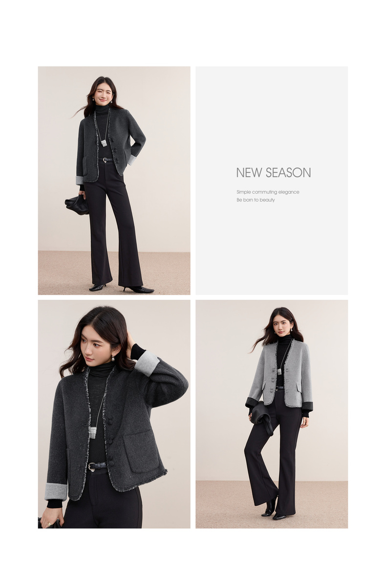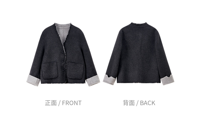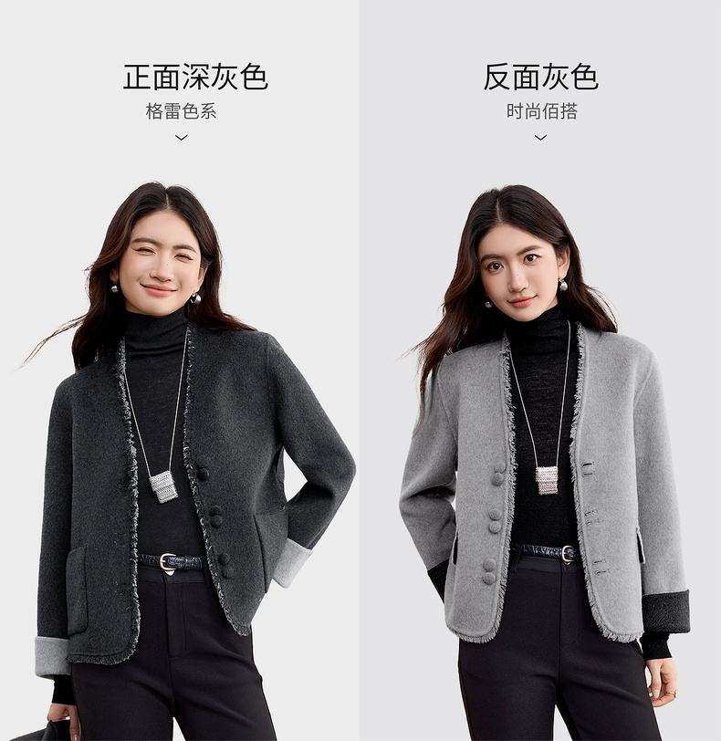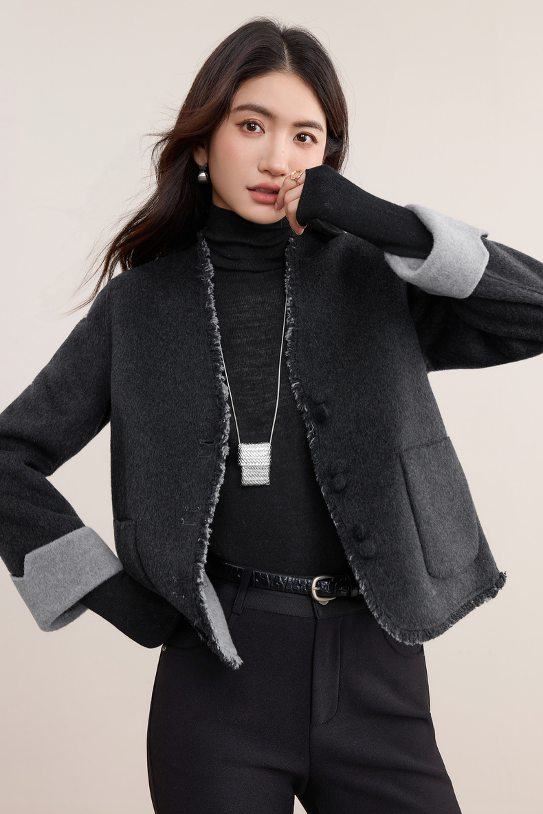 【内购】【正反两穿】通勤圆领撞色单排扣厚实保暖65支绵羊毛双面呢外套-W54OG2909