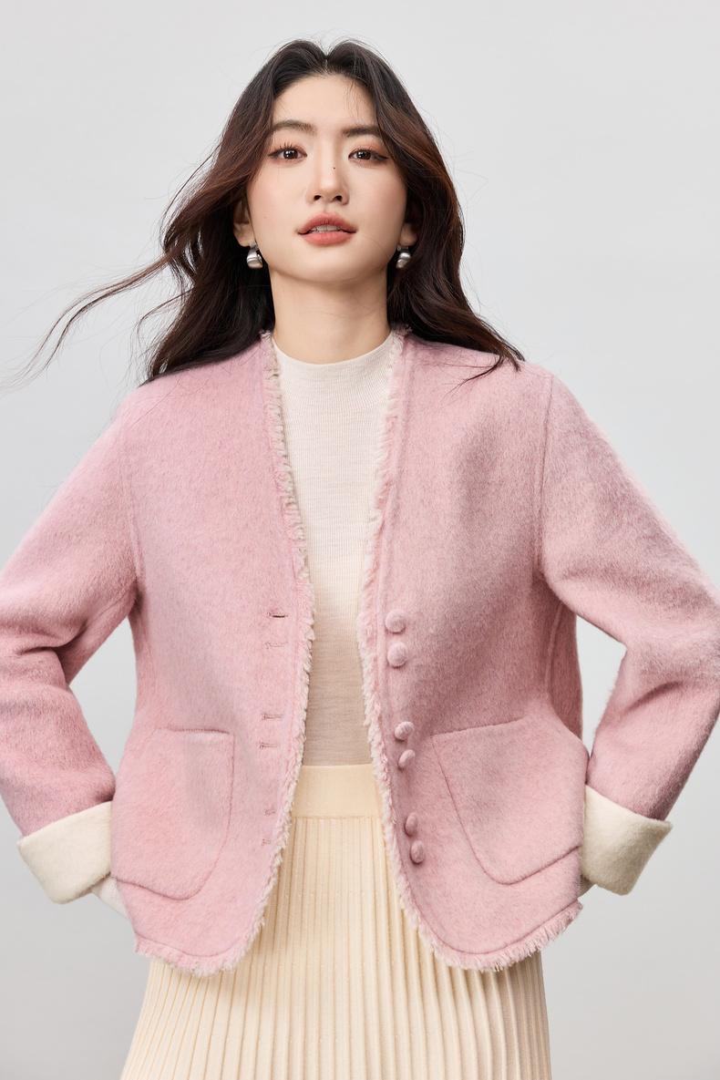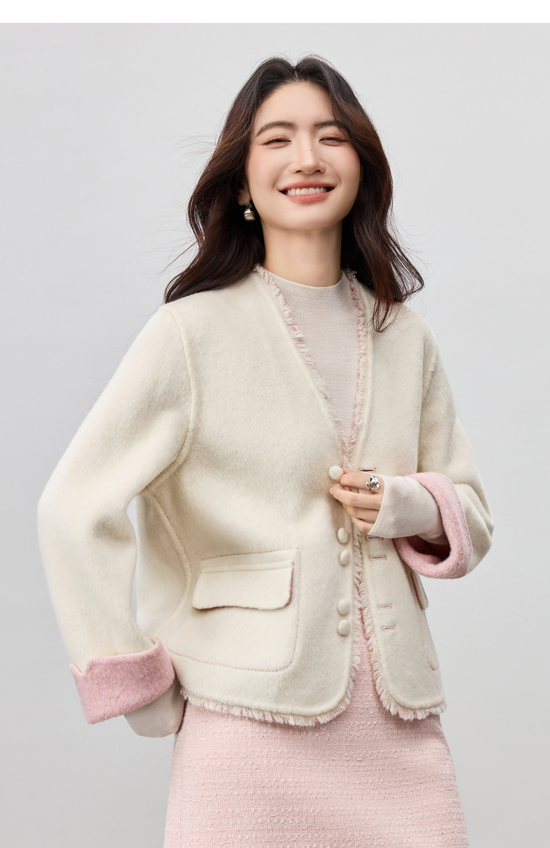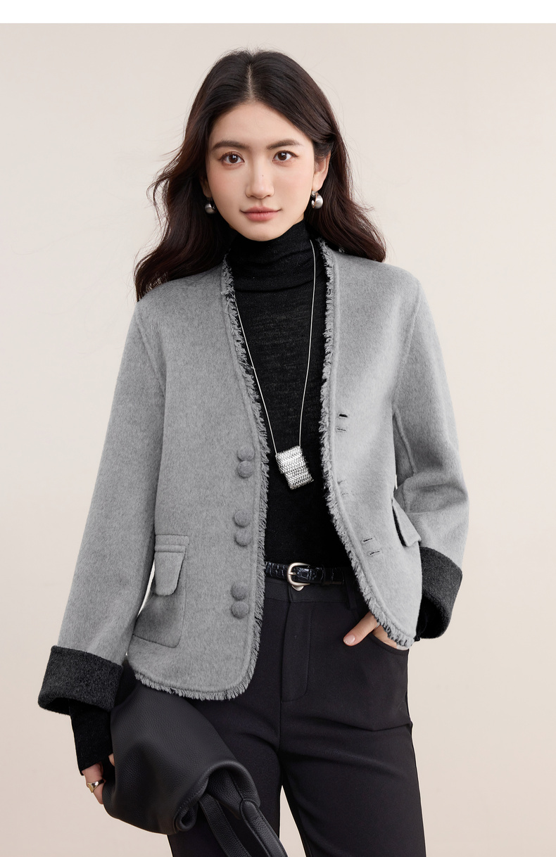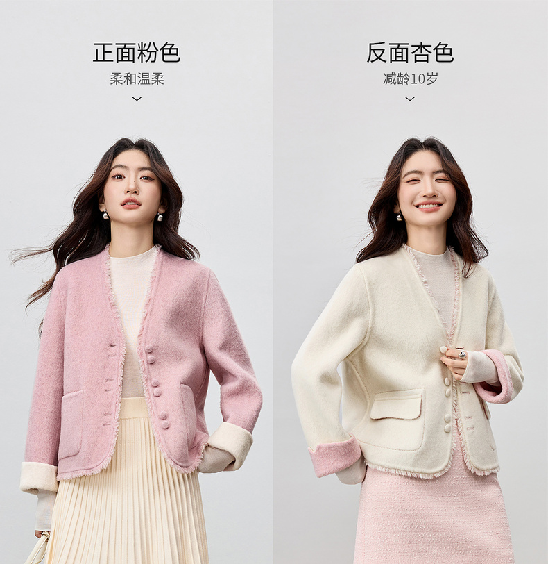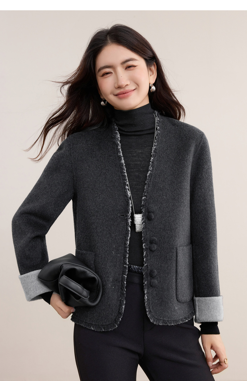 【内购】【正反两穿】通勤圆领撞色单排扣厚实保暖65支绵羊毛双面呢外套-W54OG2909