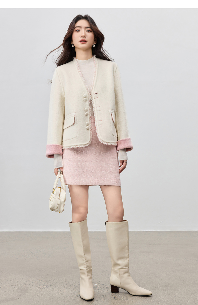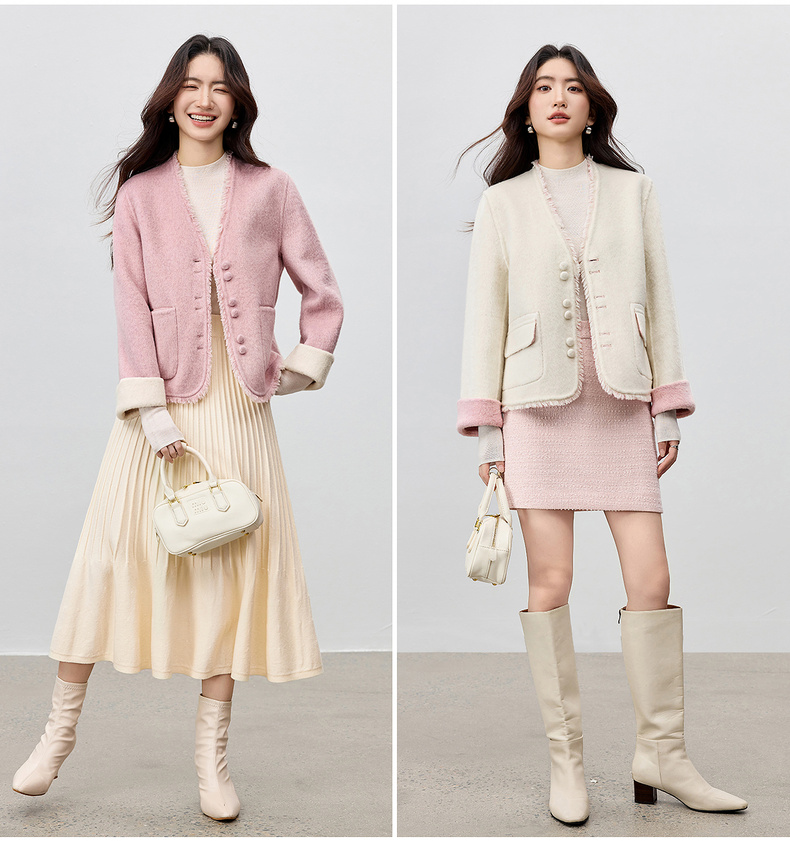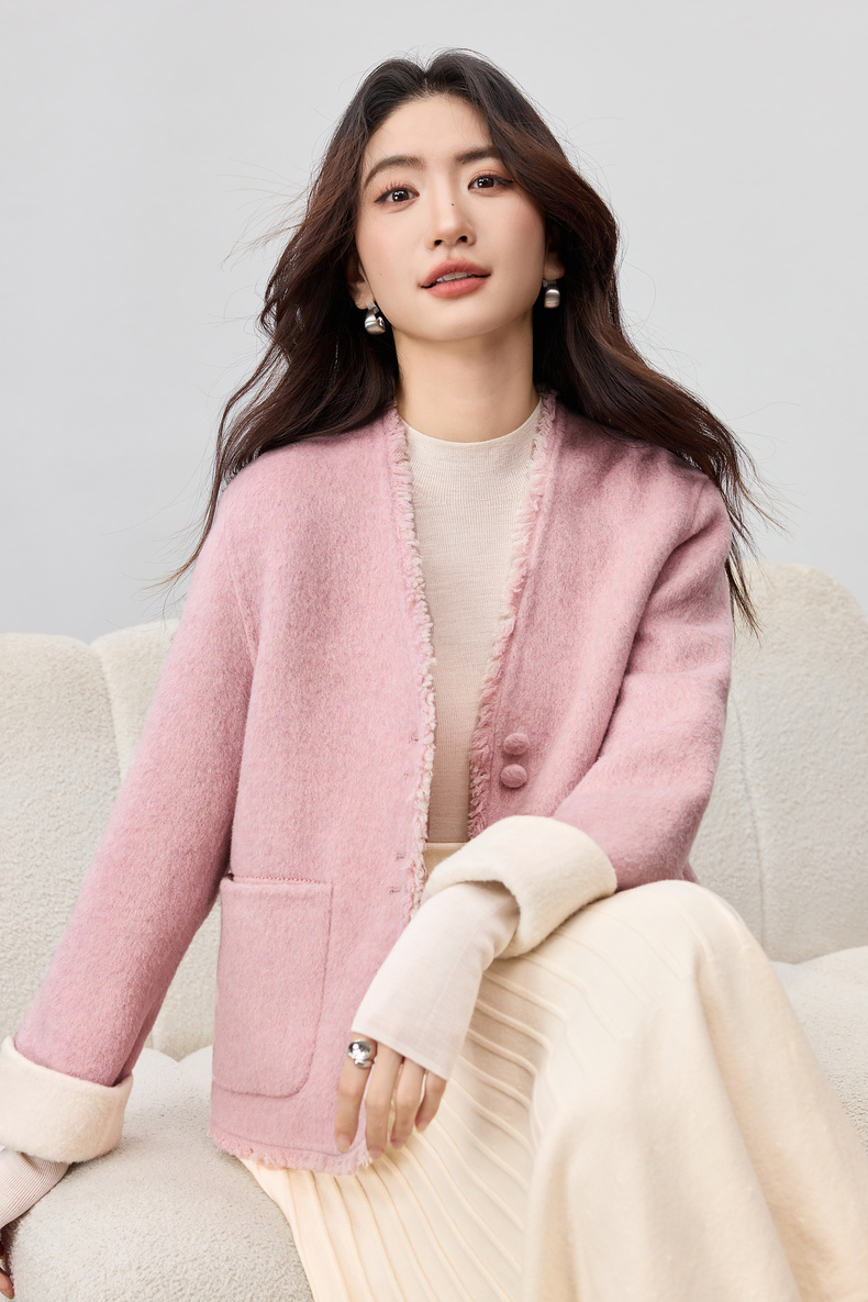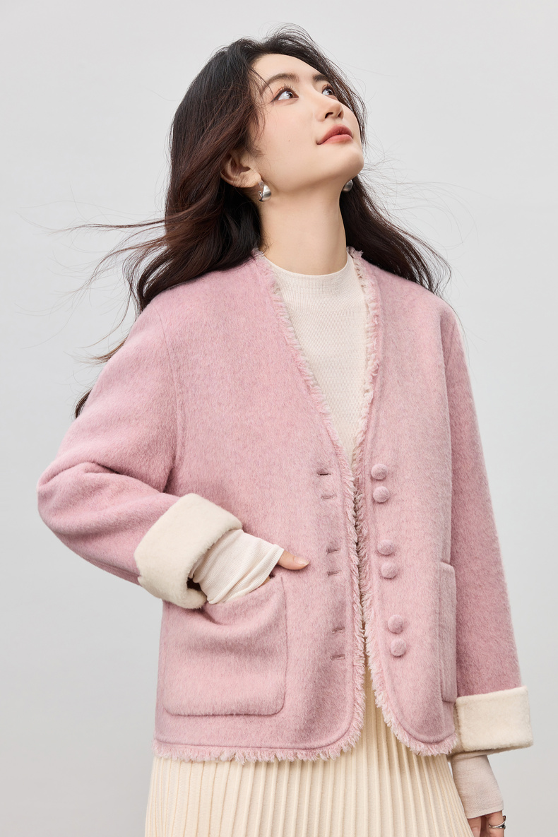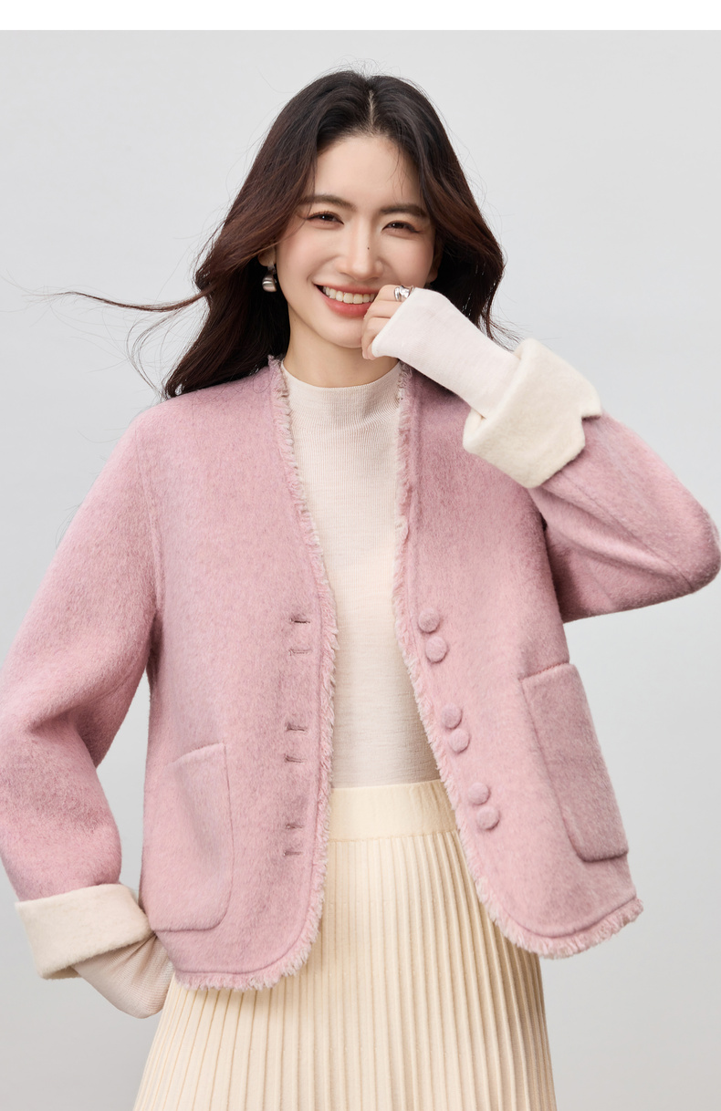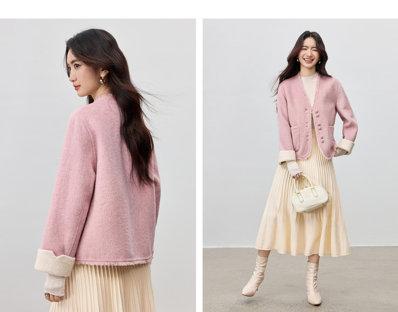 【内购】【正反两穿】通勤圆领撞色单排扣厚实保暖65支绵羊毛双面呢外套-W54OG2909