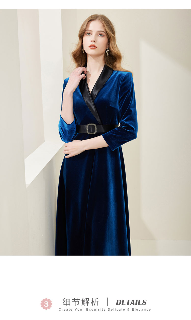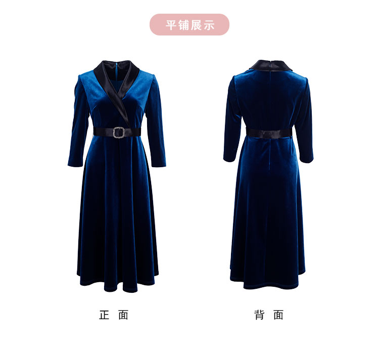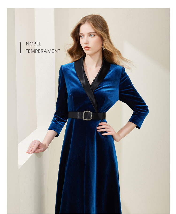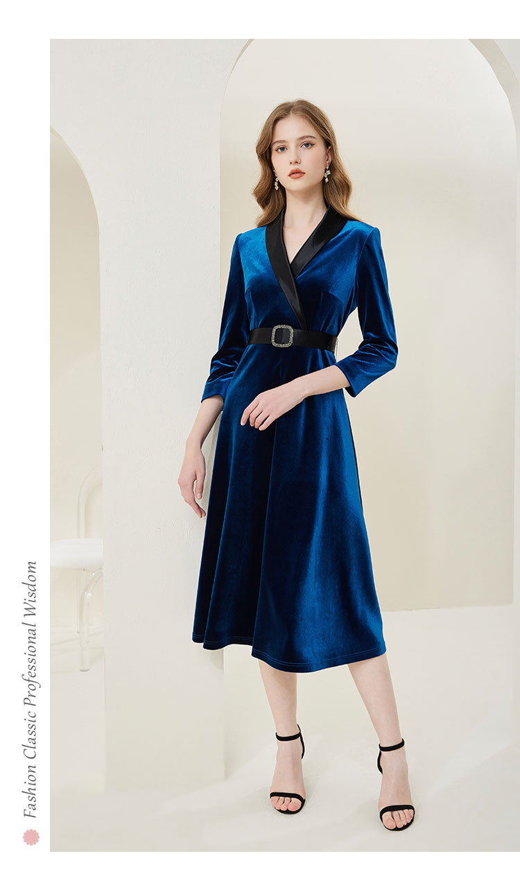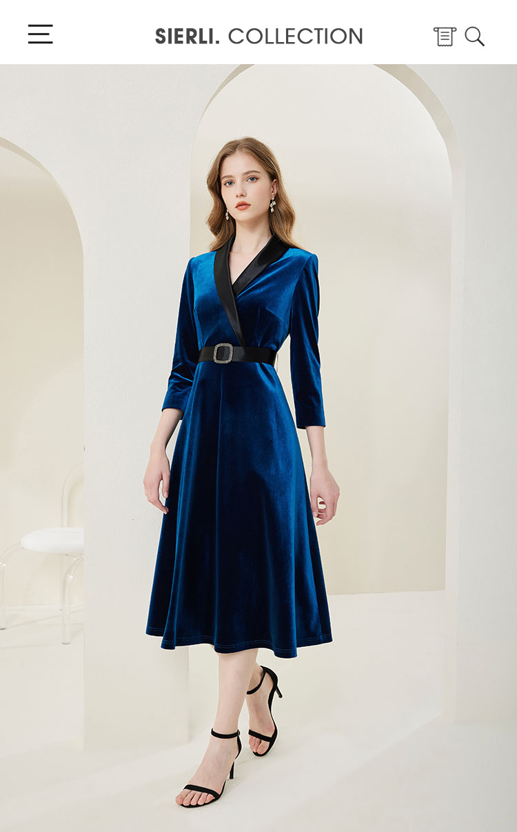 NA818斯尔丽瑟俪2023春季新款气质V领收腰显瘦A摆灯芯绒中长连衣裙