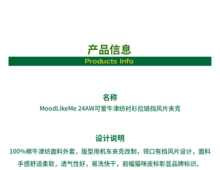 Mood Like Me/MCS2412/可爱牛津纺衬衫拉链挡风片夹克