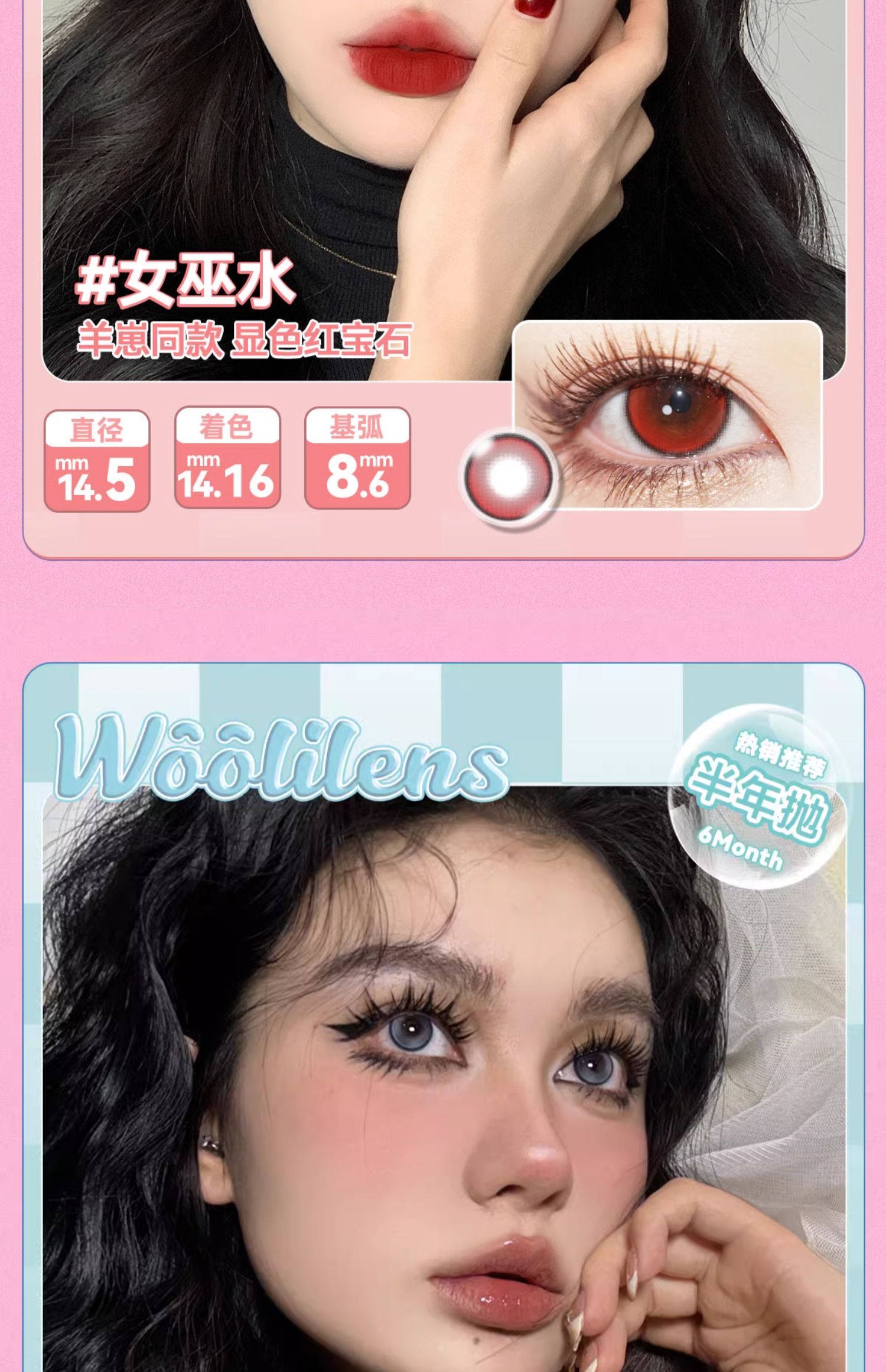 【Woolilens半年抛】沃莉丝美瞳半年抛红色大直径女巫水cos混血棕色隐形眼镜