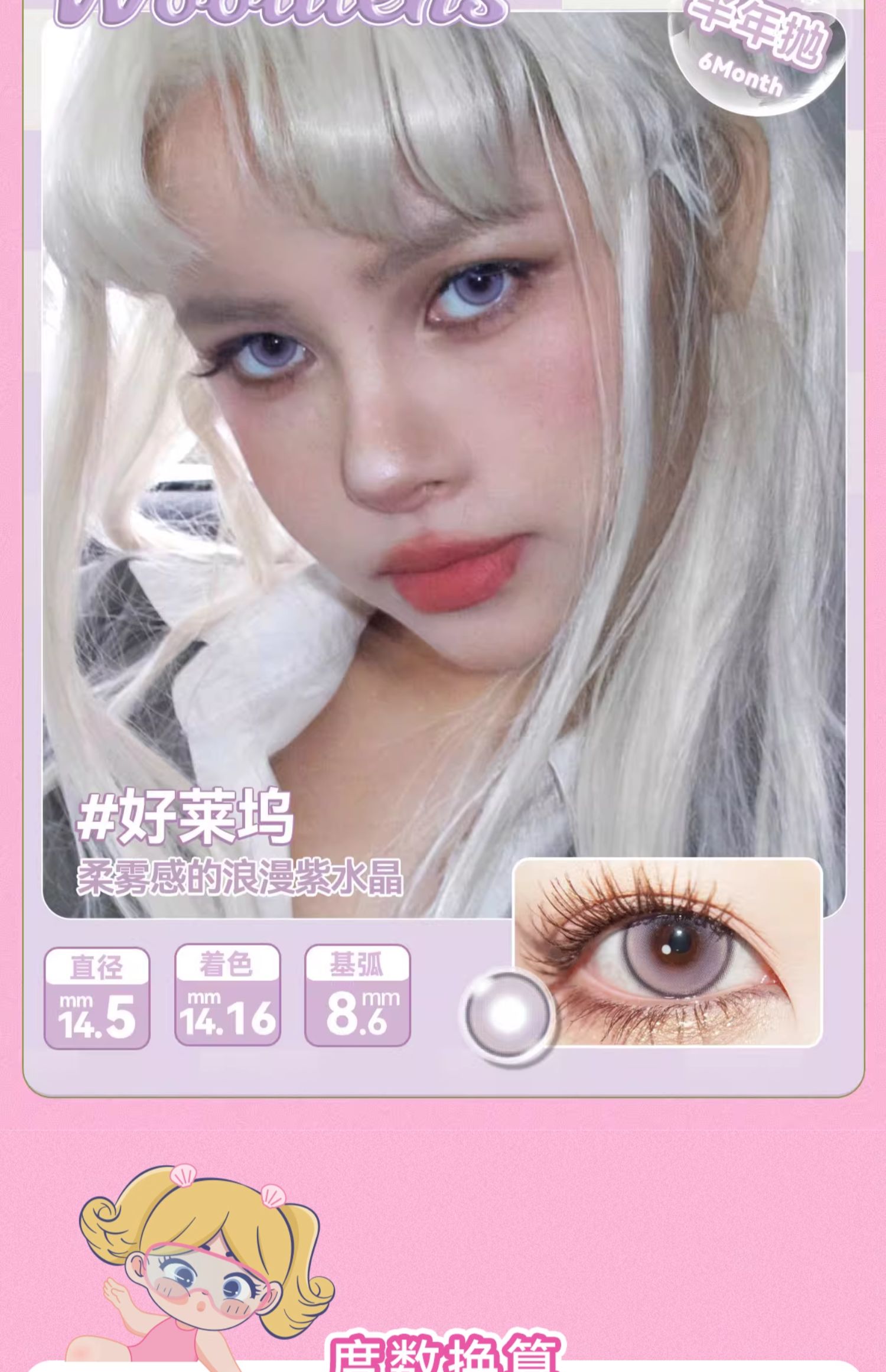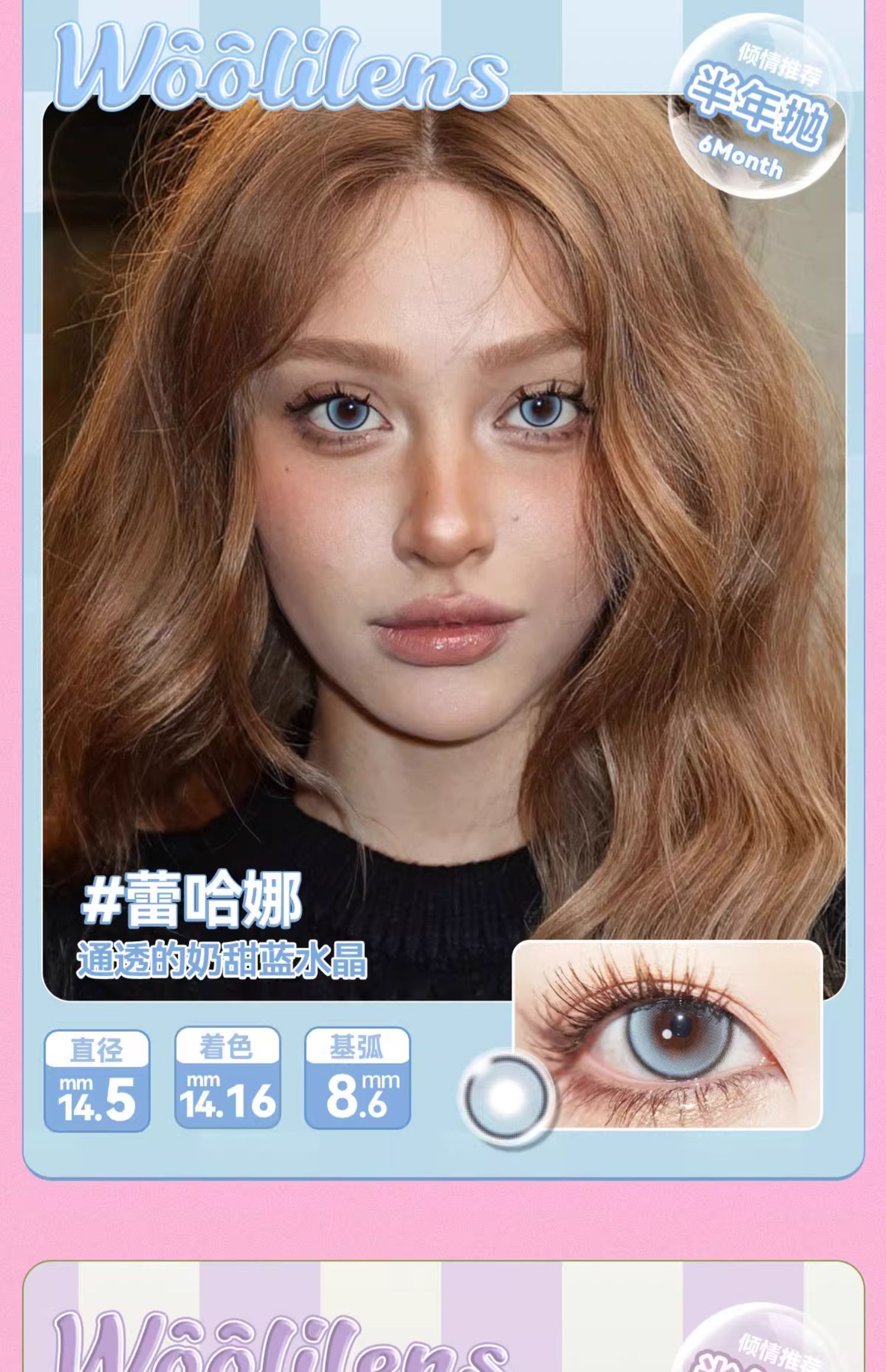 【Woolilens半年抛】沃莉丝美瞳半年抛海域神女蓝色小大直径微混血隐形眼镜