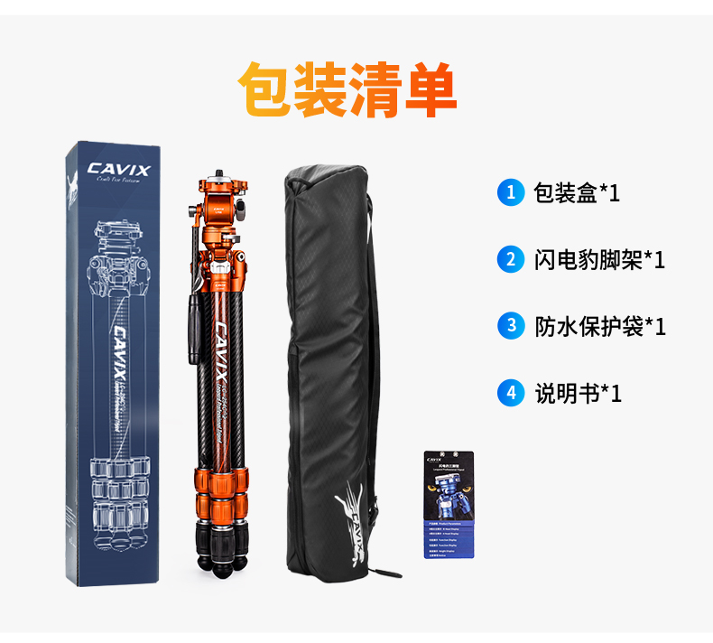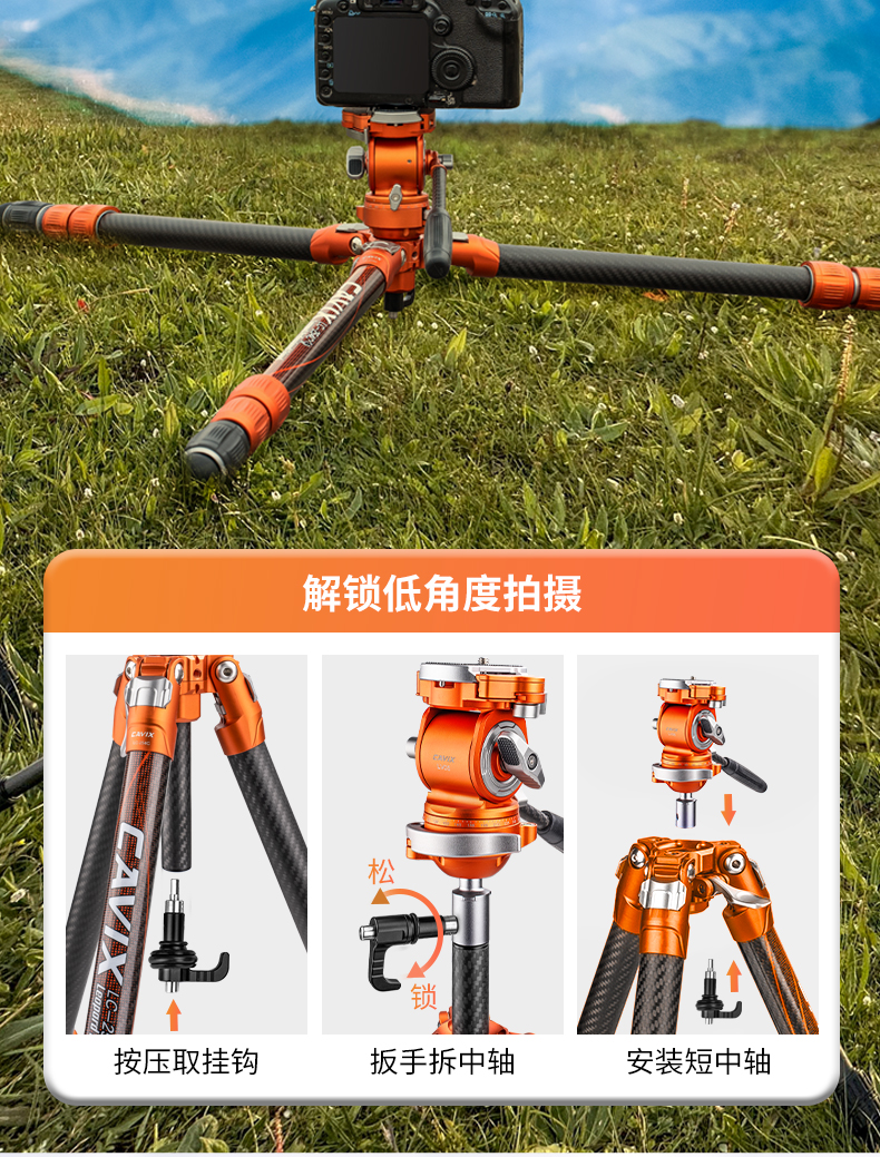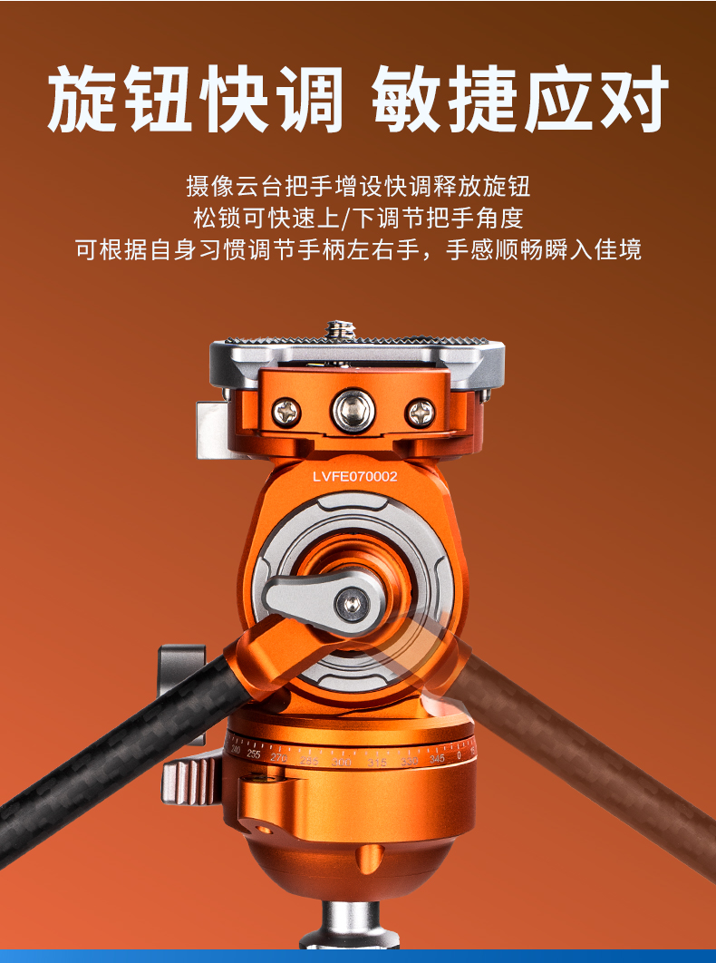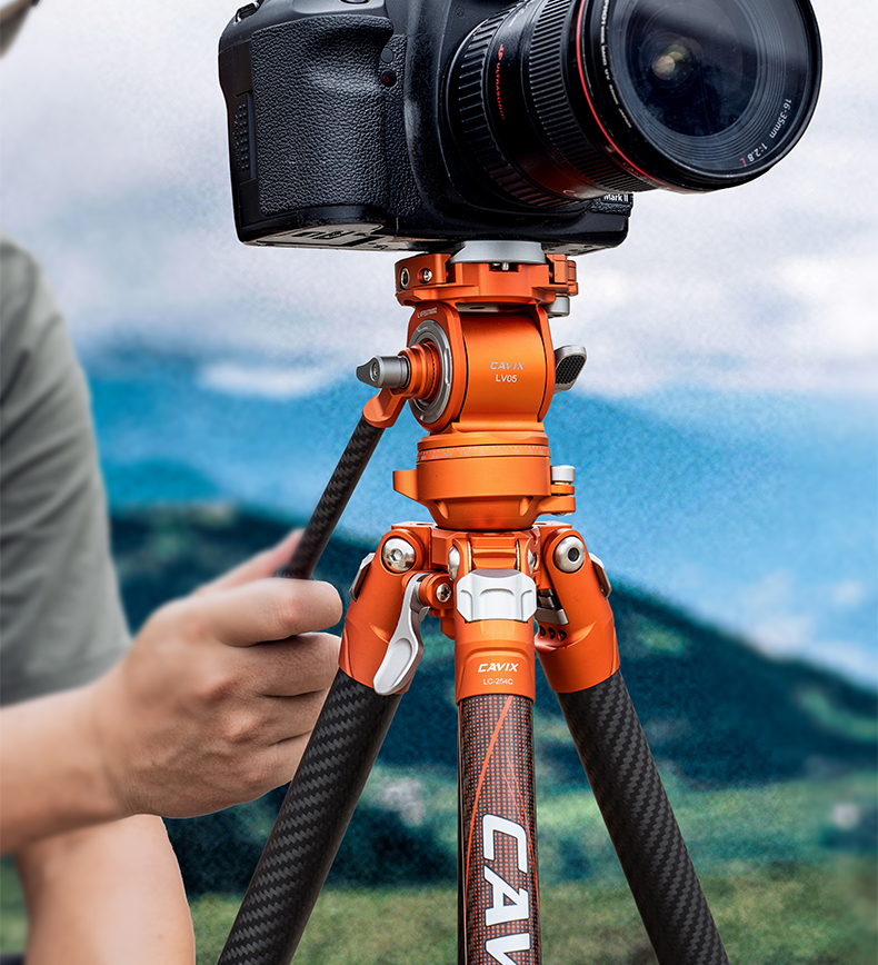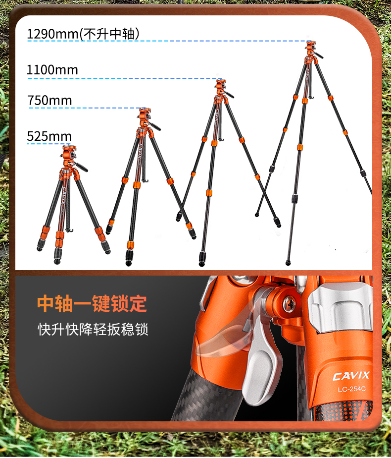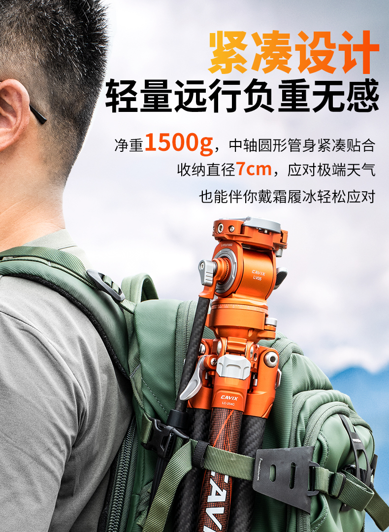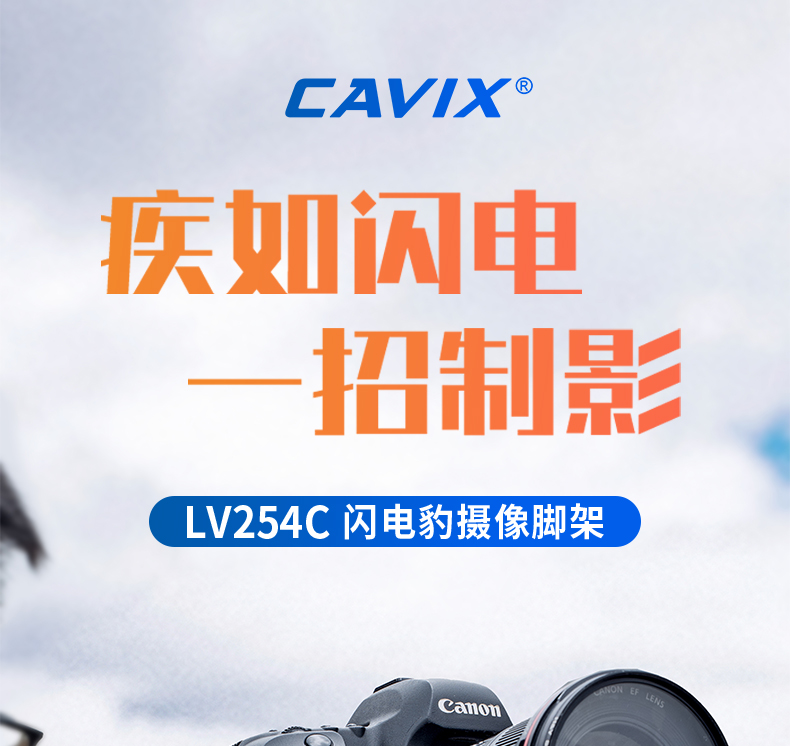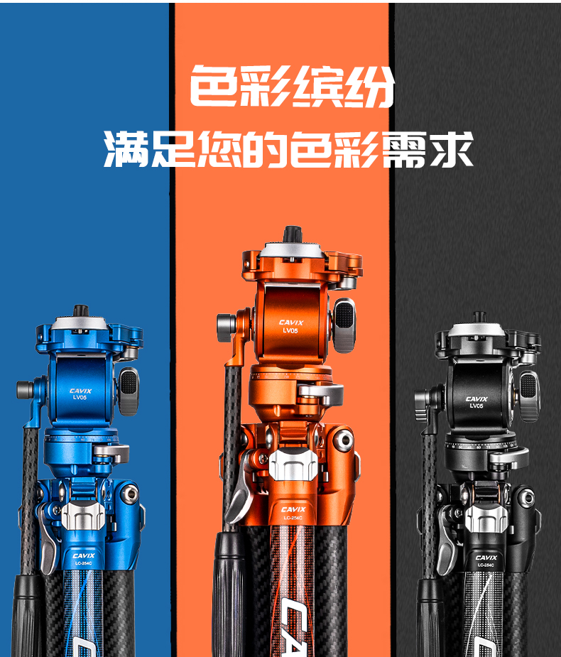 CAVIX|闪电豹LV254C摄影摄像液压碳纤维快速三脚架单反微单相机便携全景云台视频直播摄影支架 LV-254CB 摄像版