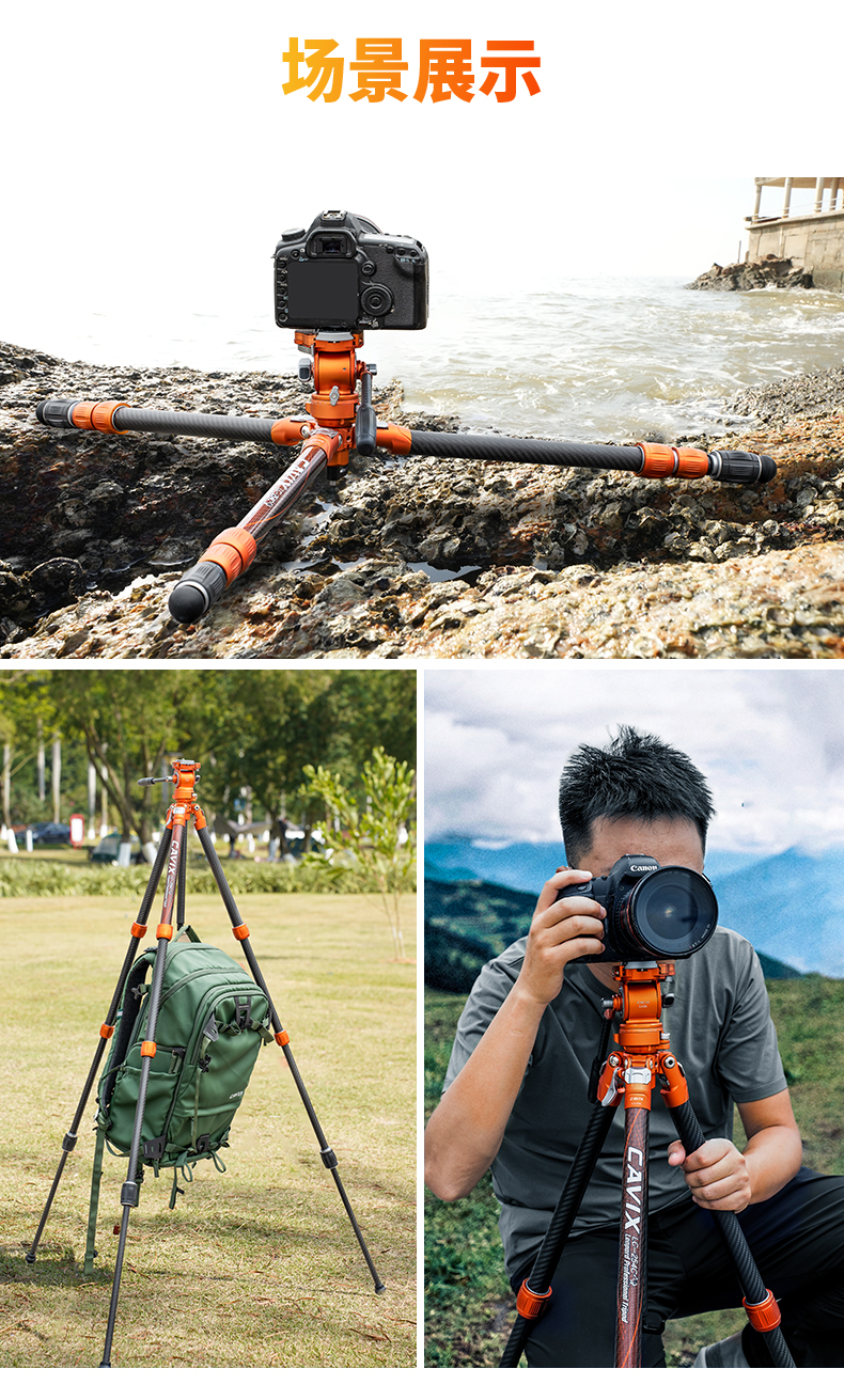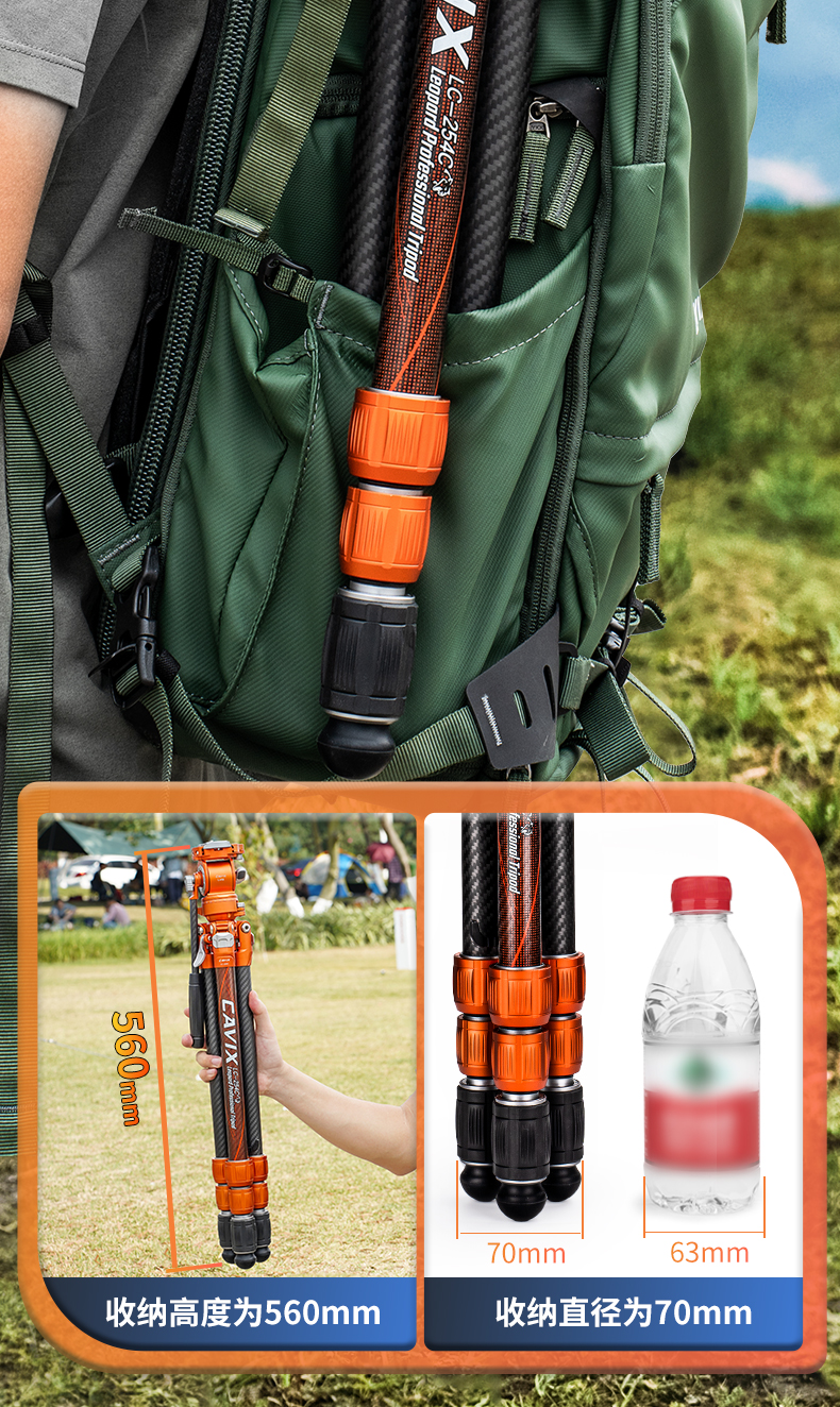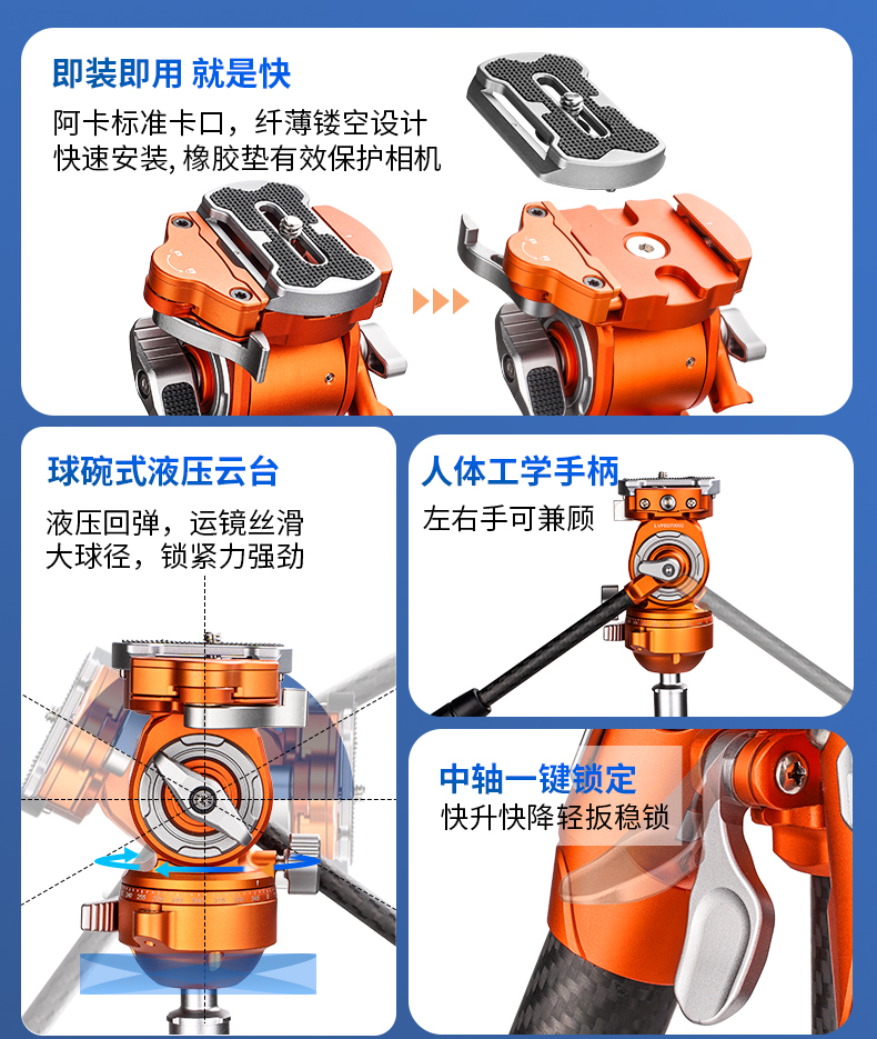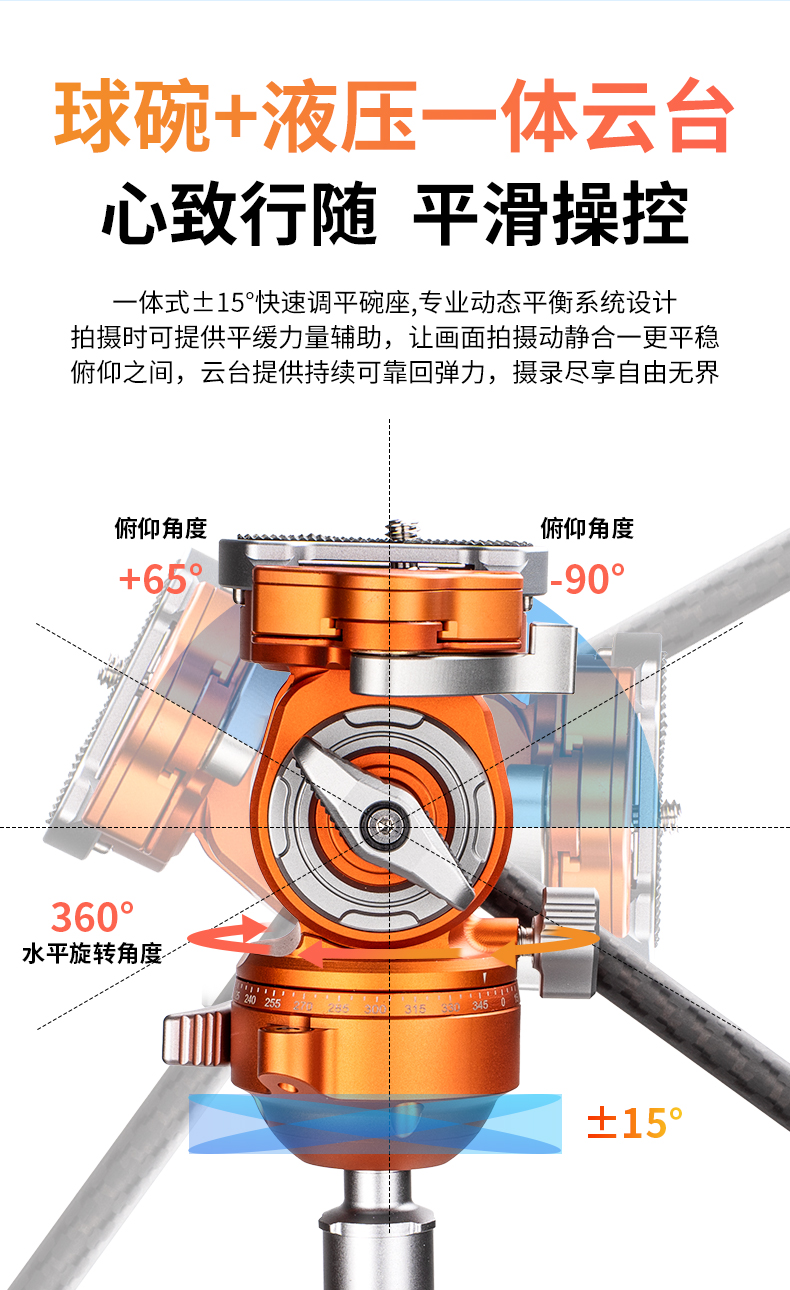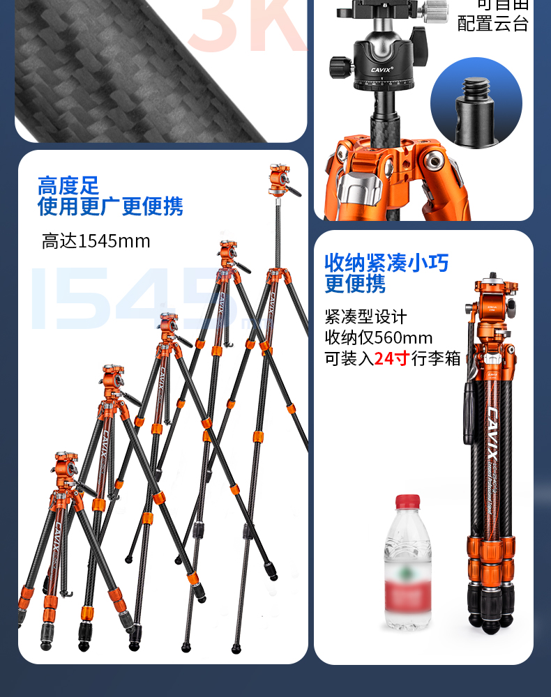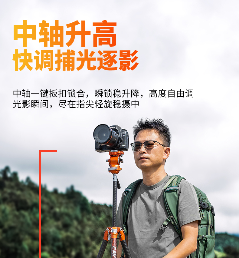 CAVIX|闪电豹LV254C摄影摄像液压碳纤维快速三脚架单反微单相机便携全景云台视频直播摄影支架 LV-254CB 摄像版