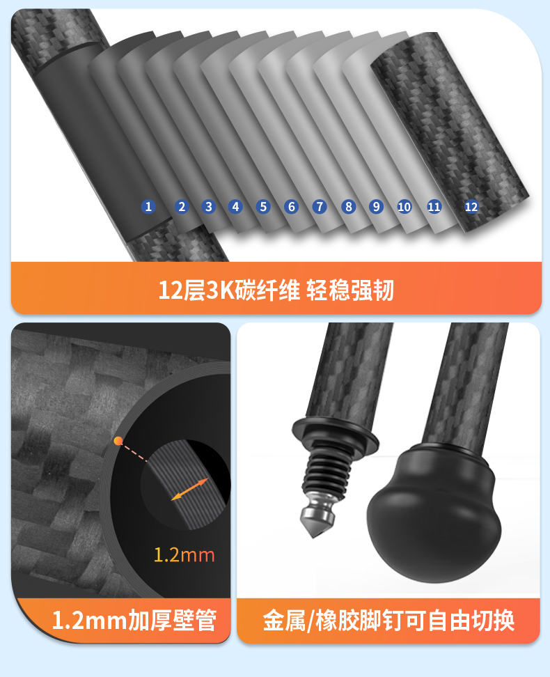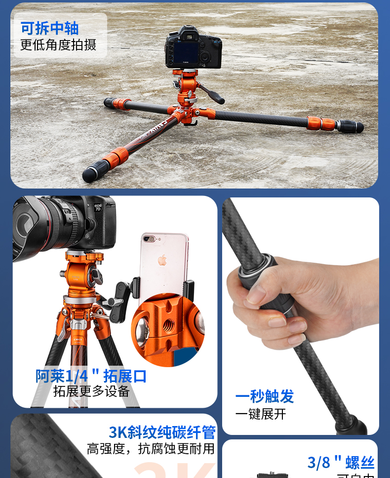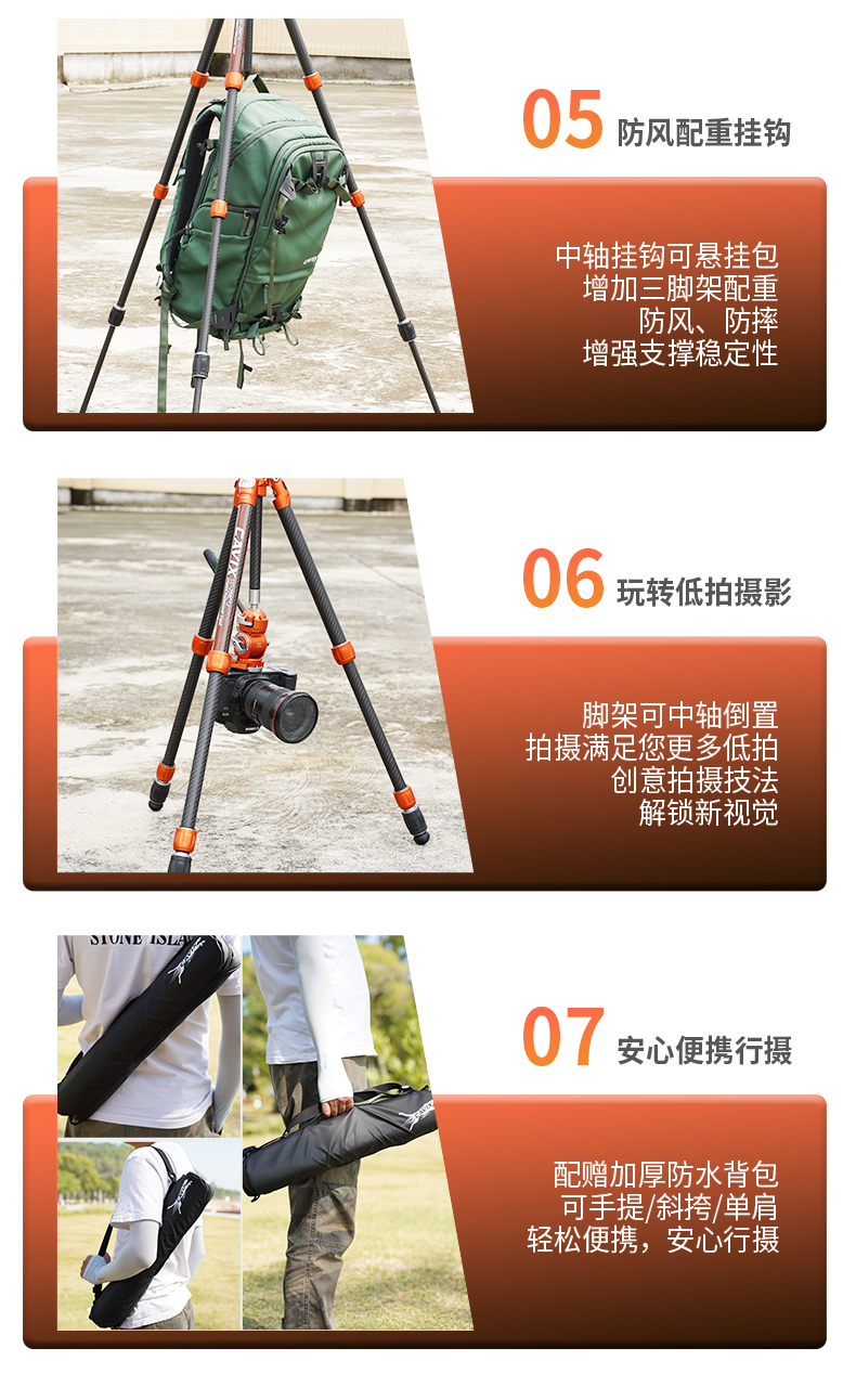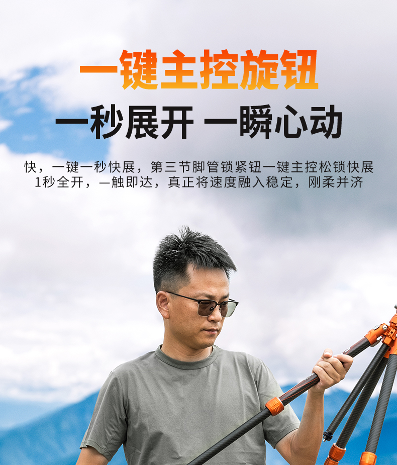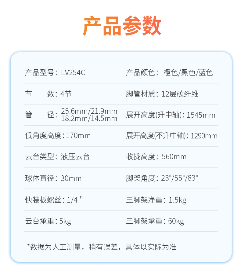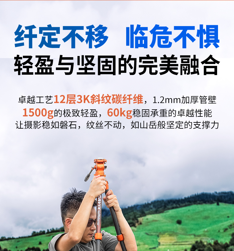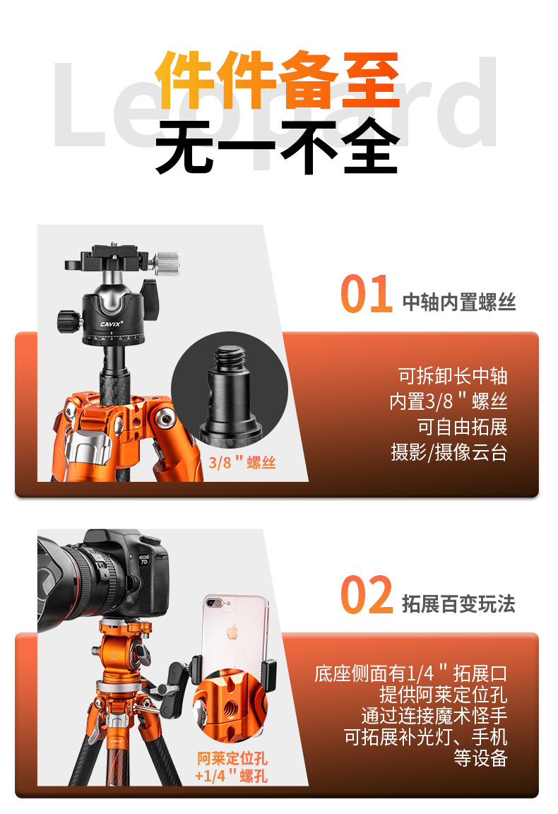 CAVIX|闪电豹LV254C摄影摄像液压碳纤维快速三脚架单反微单相机便携全景云台视频直播摄影支架 LV-254CB 摄像版