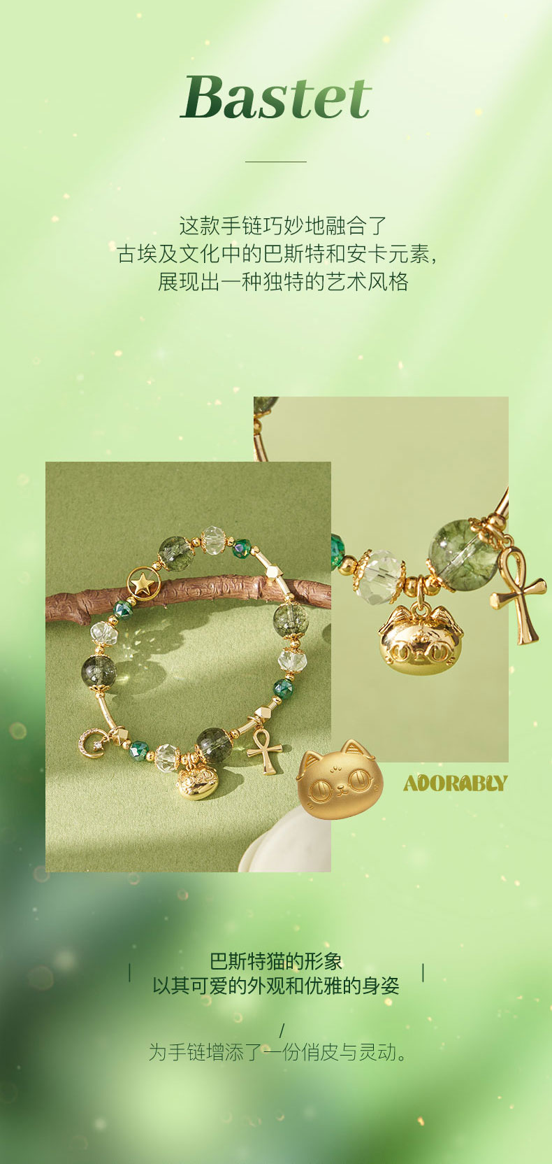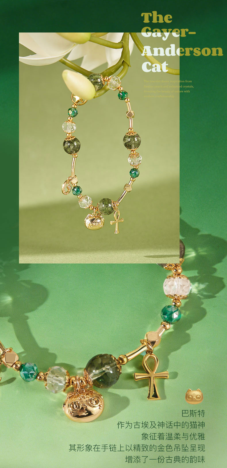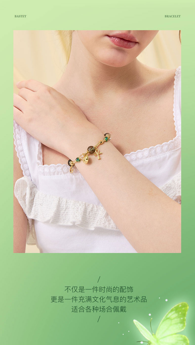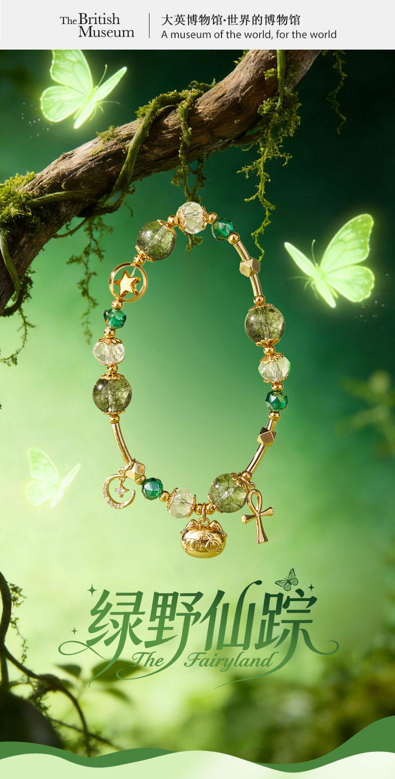 大英博物馆 盖亚·巴斯特系列 萌猫安卡绿野仙踪水晶手链