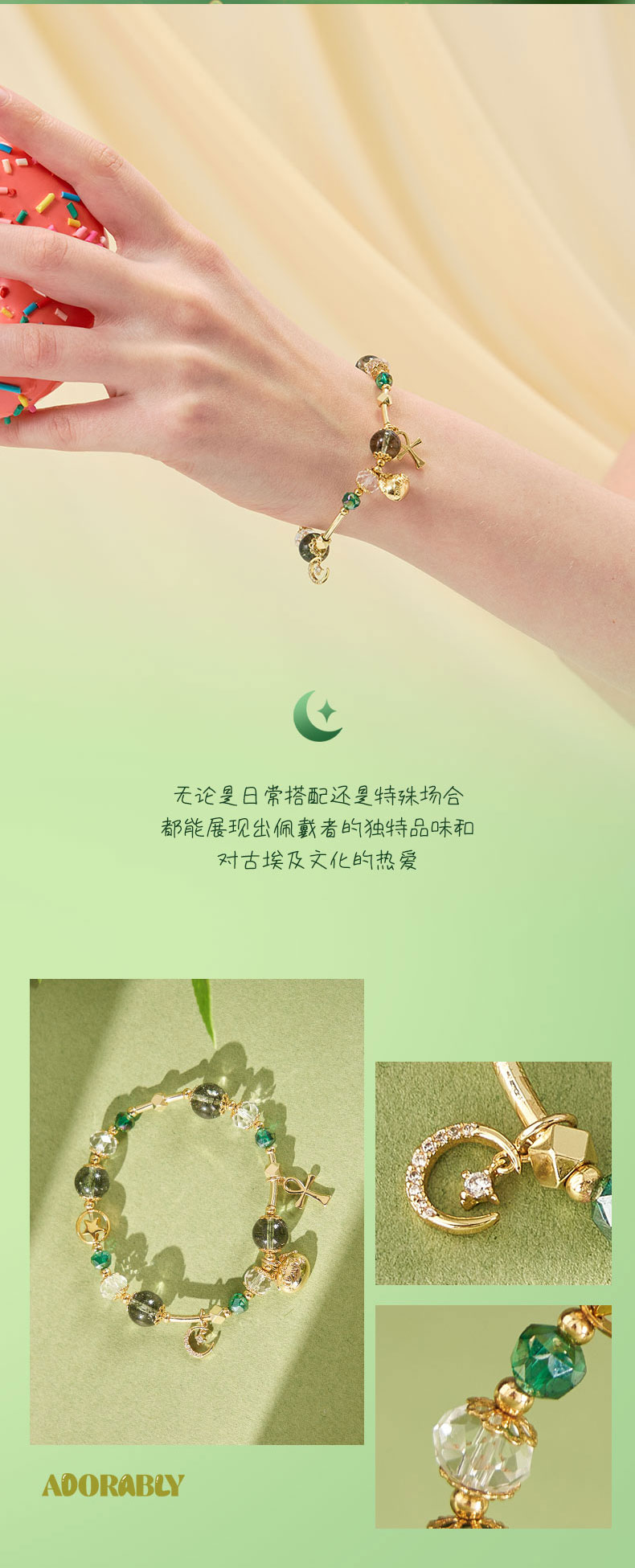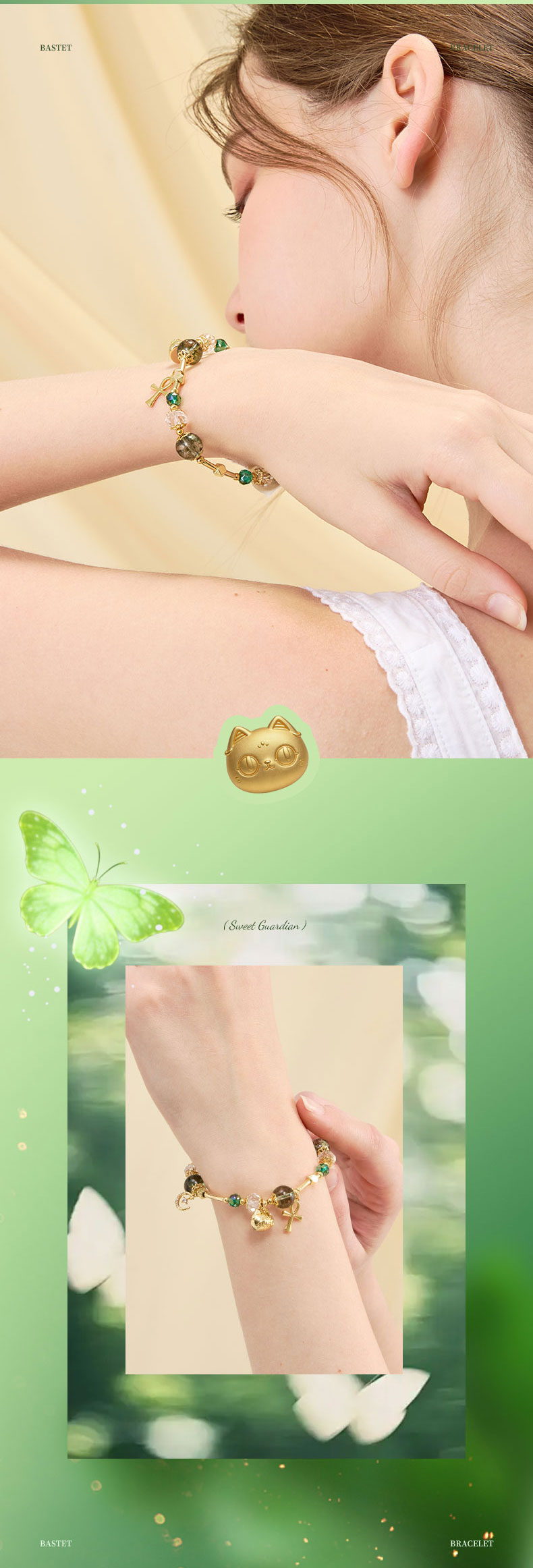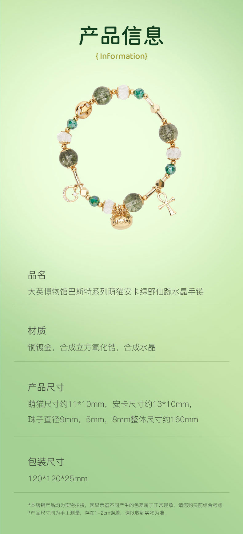 大英博物馆 盖亚·巴斯特系列 萌猫安卡绿野仙踪水晶手链