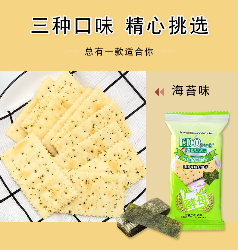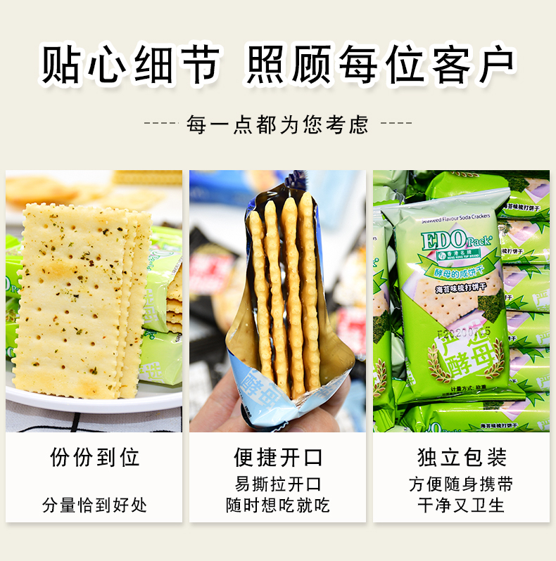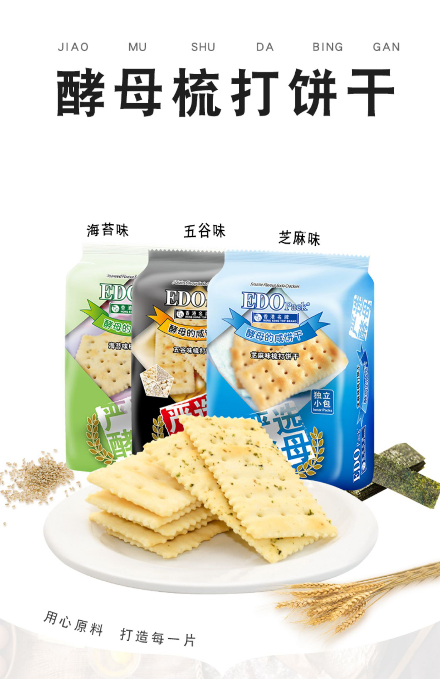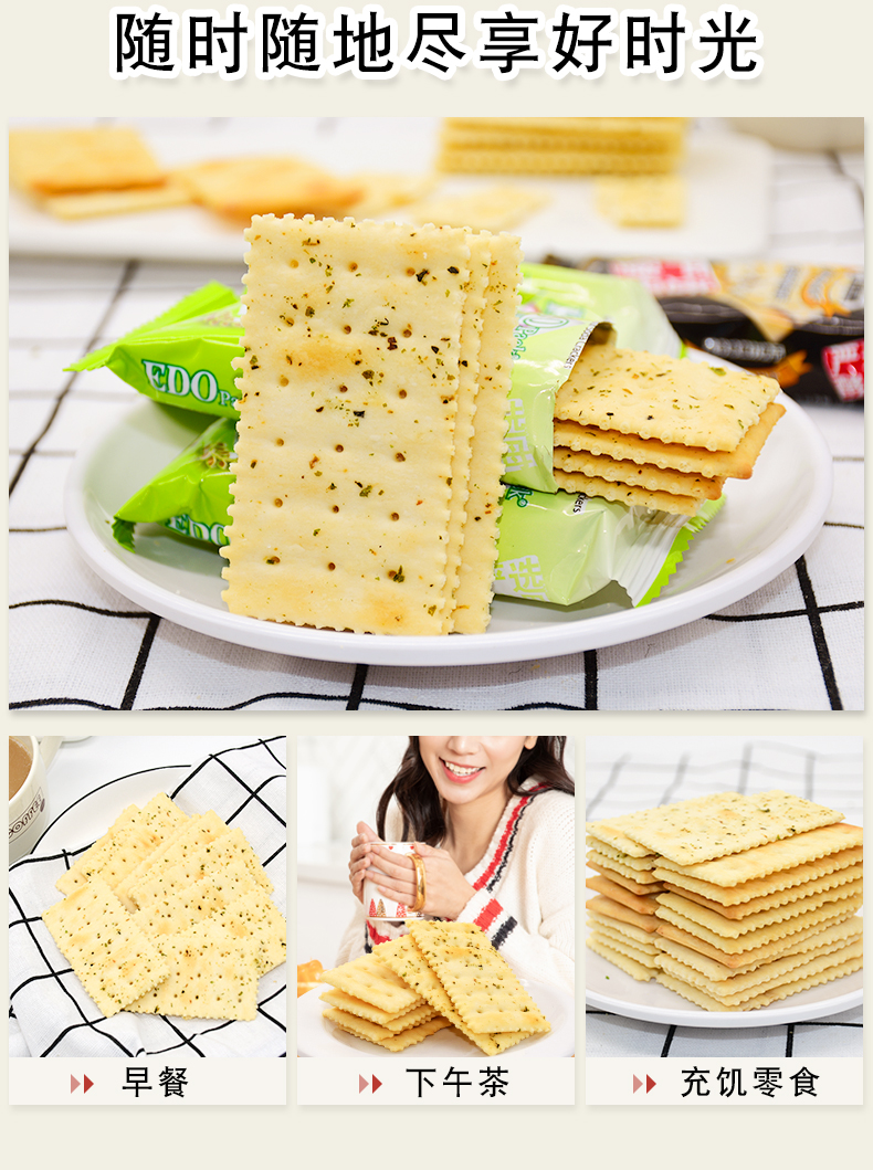 EDO Pack 休闲零食小饼干 梳打饼海苔味+五谷味+芝麻味 3种口味精心挑选
