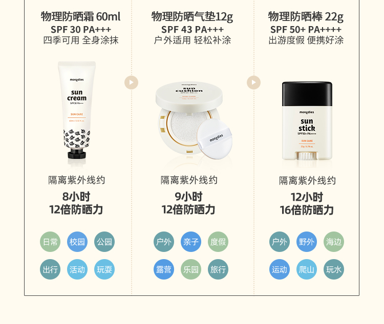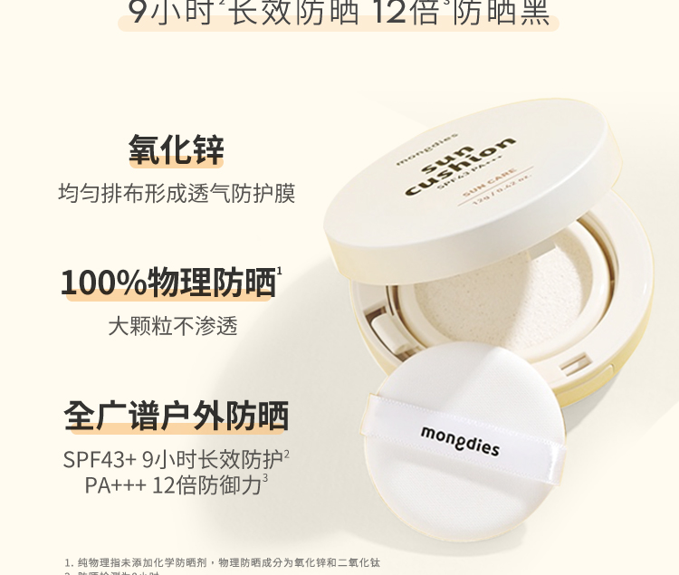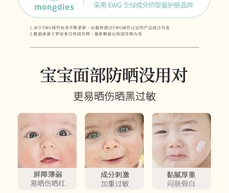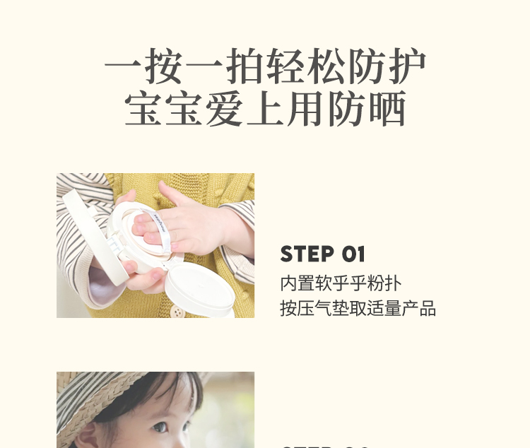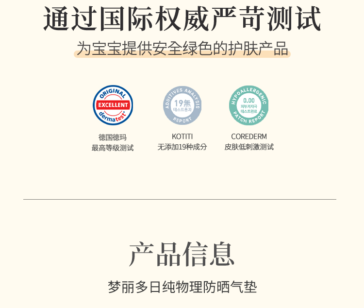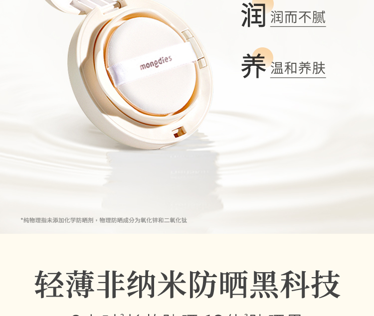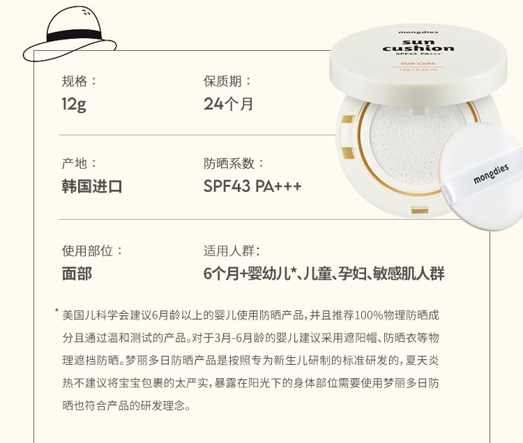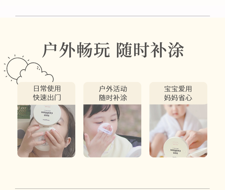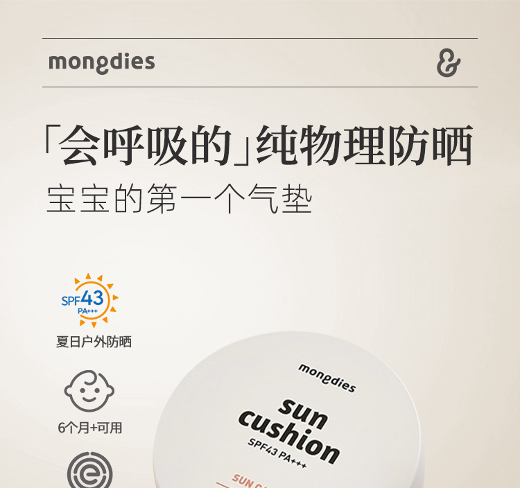 Mongdies梦丽多日韩国婴儿童3秒防晒气垫纯物理防晒霜6月龄+SPF43