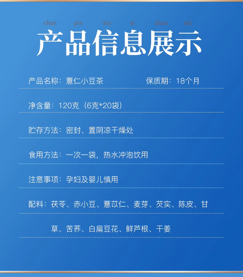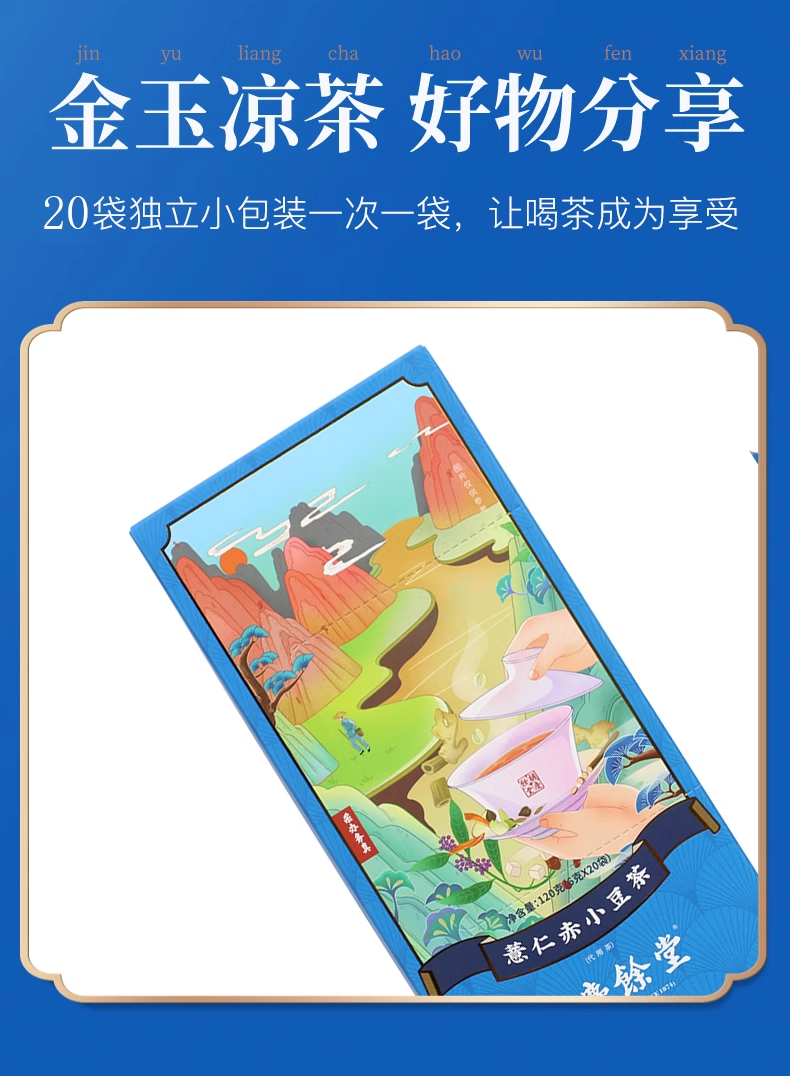 胡庆余堂 薏仁赤小豆茶 红豆薏米茶 袋装茶茶包6g*20袋