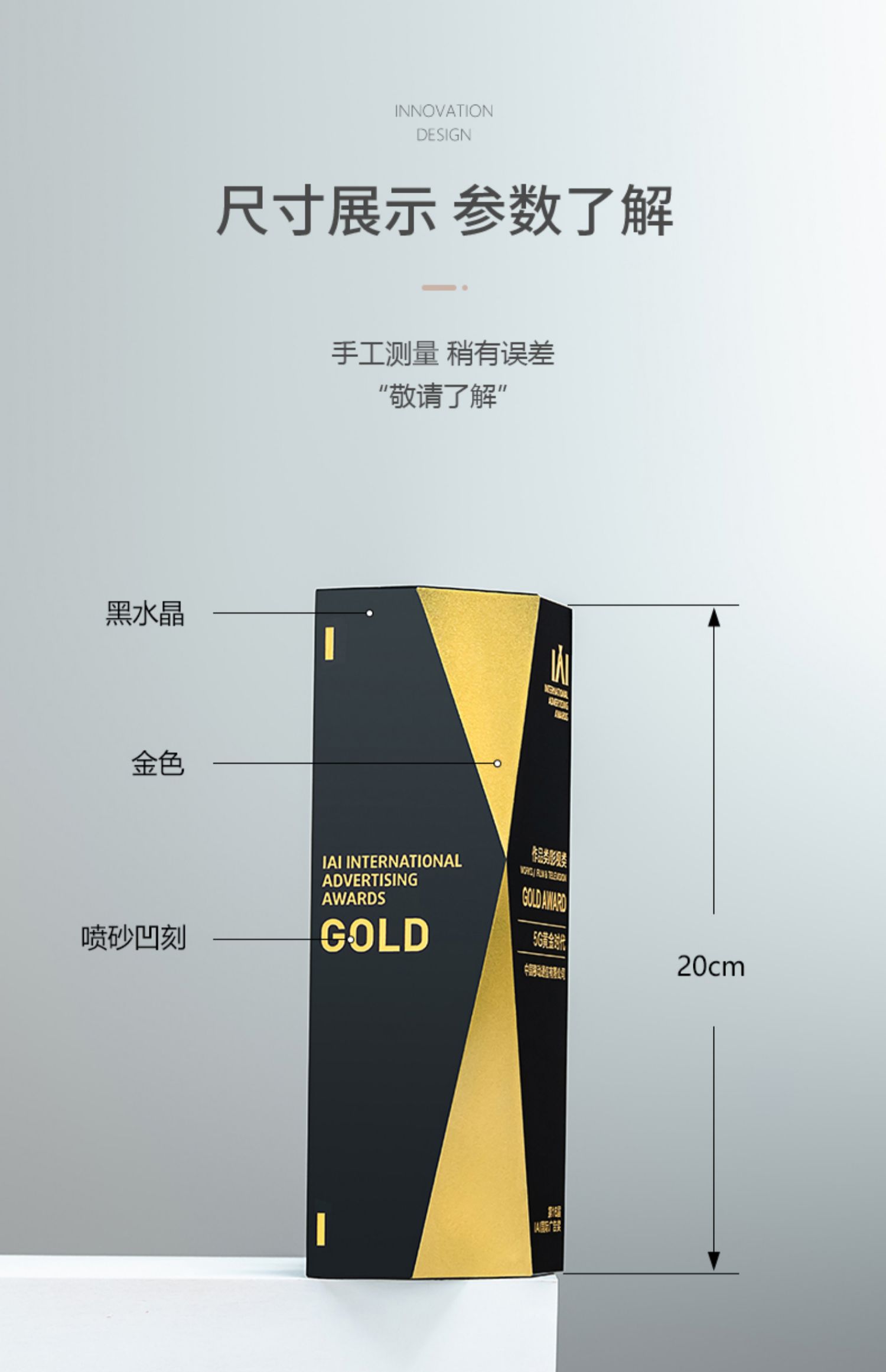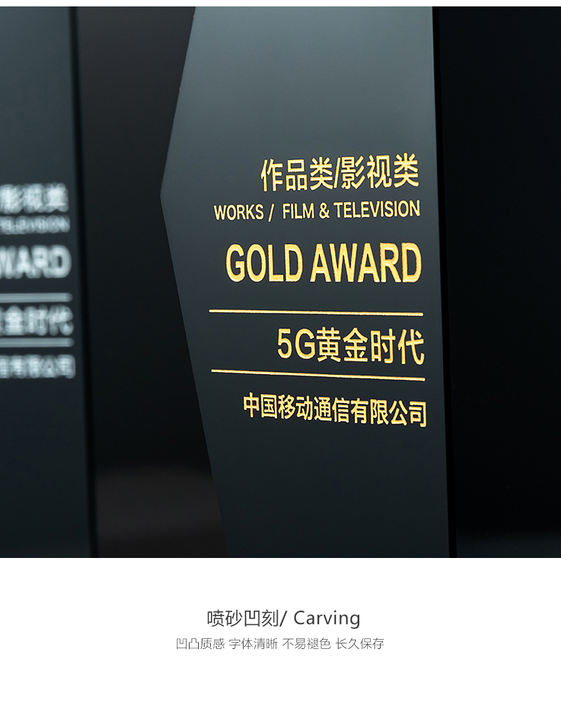 【新款首发】黑水晶高端奖杯定制创意纪念奖座高档奖牌定做刻字
