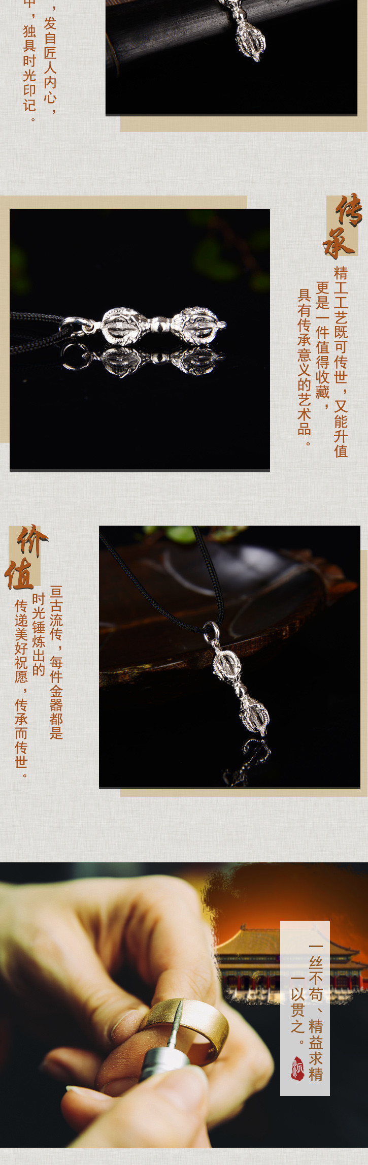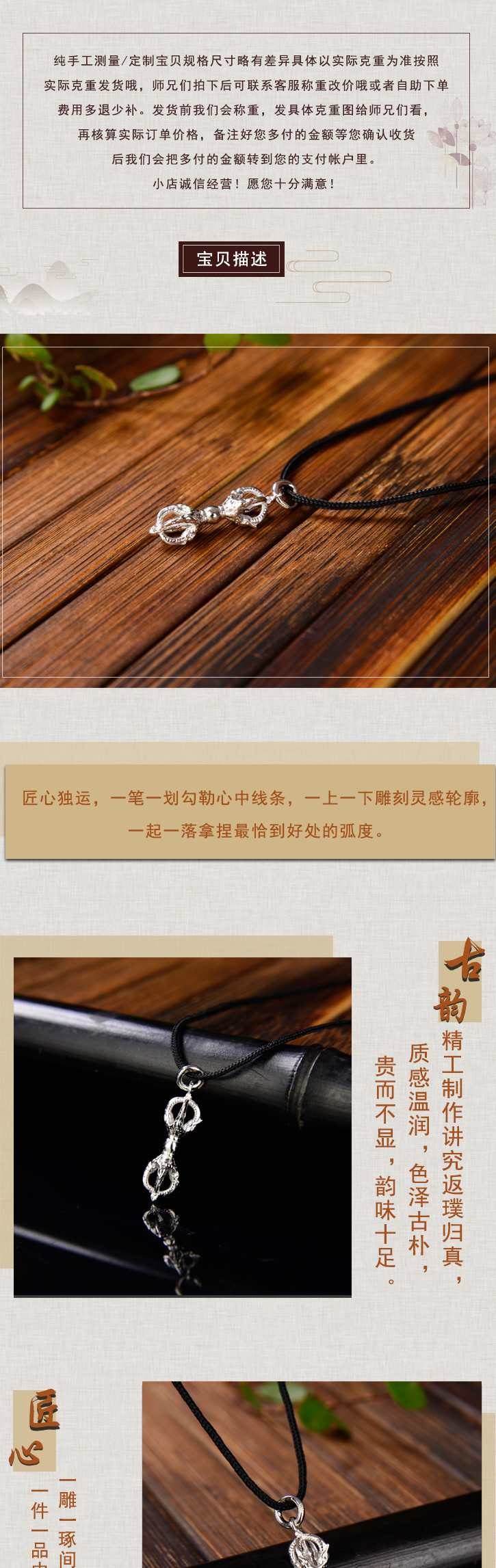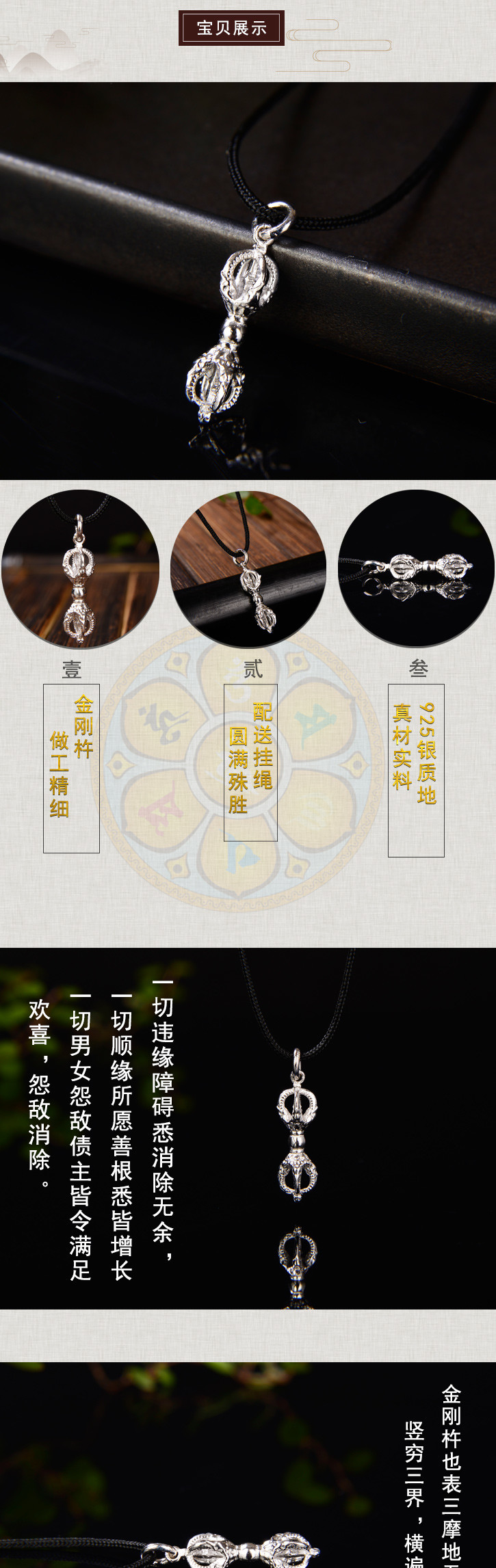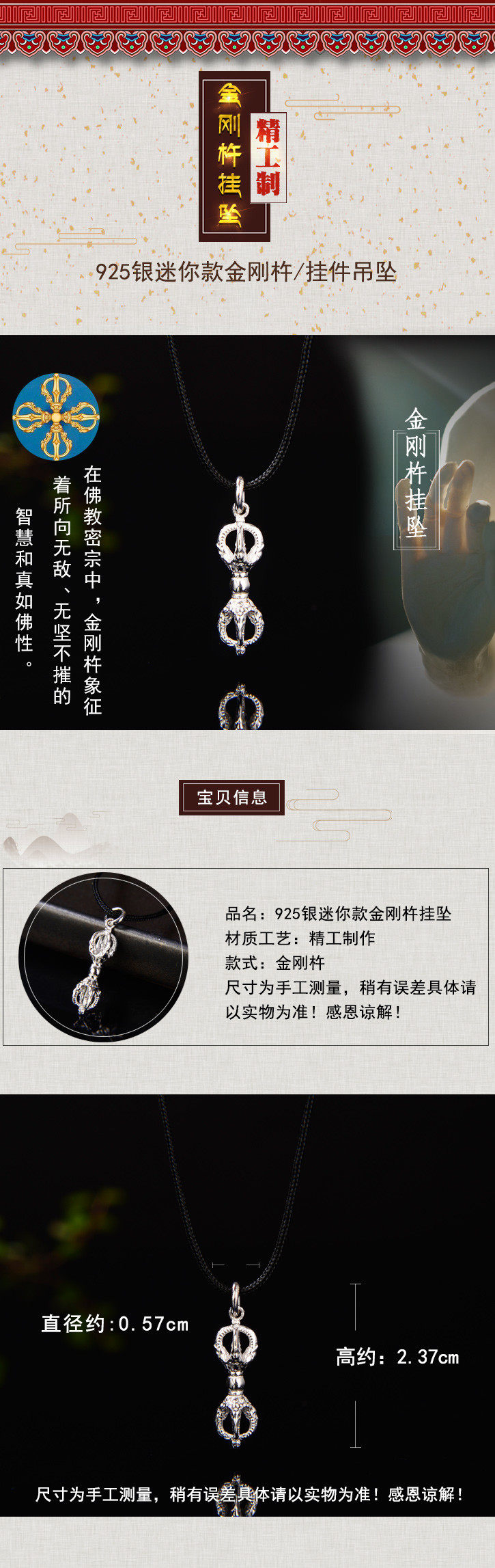 天语龙吟 银精工制作密宗法器迷你款金刚杵吊坠挂件男女款吊坠