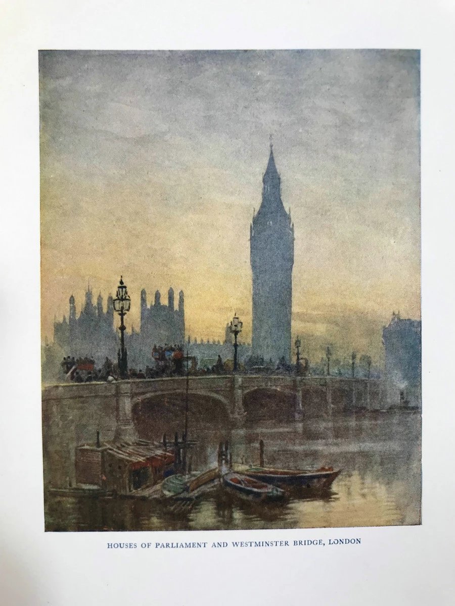 1914年 英格兰风物志 32幅彩色插图 漆布精装大32开