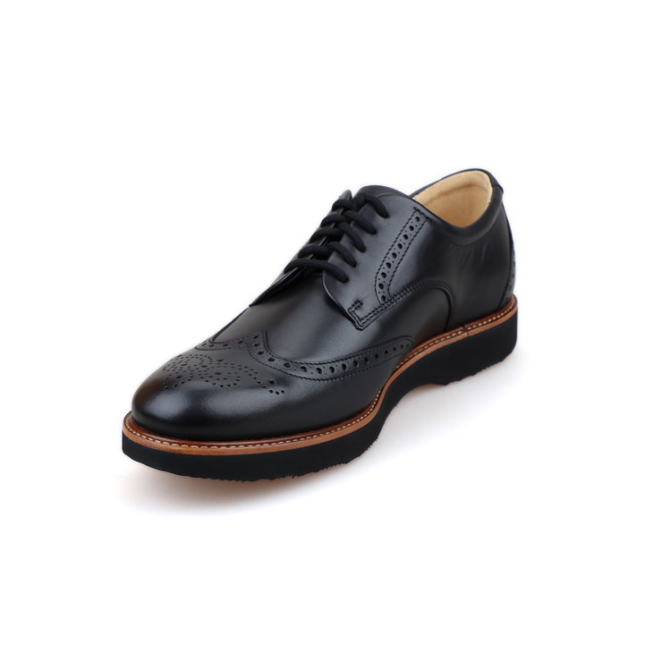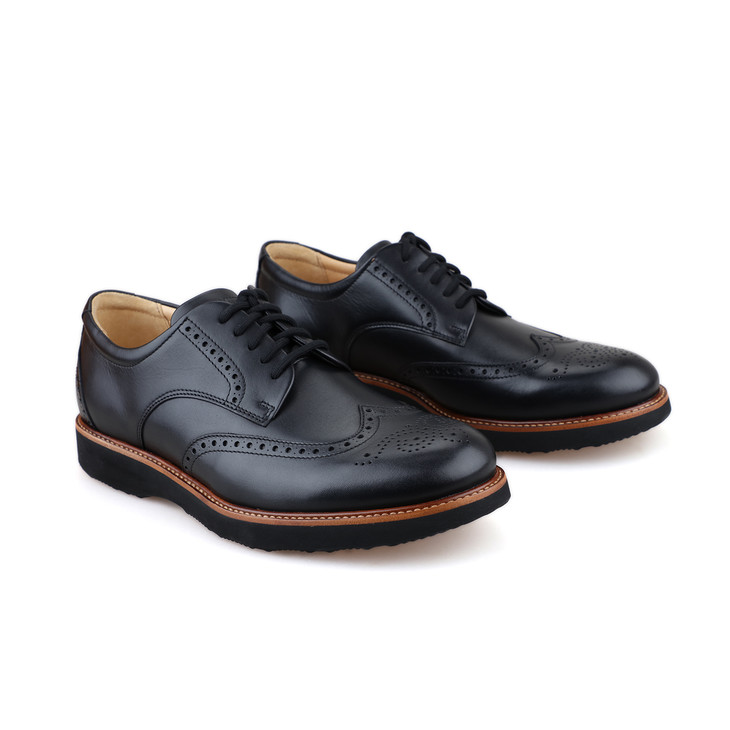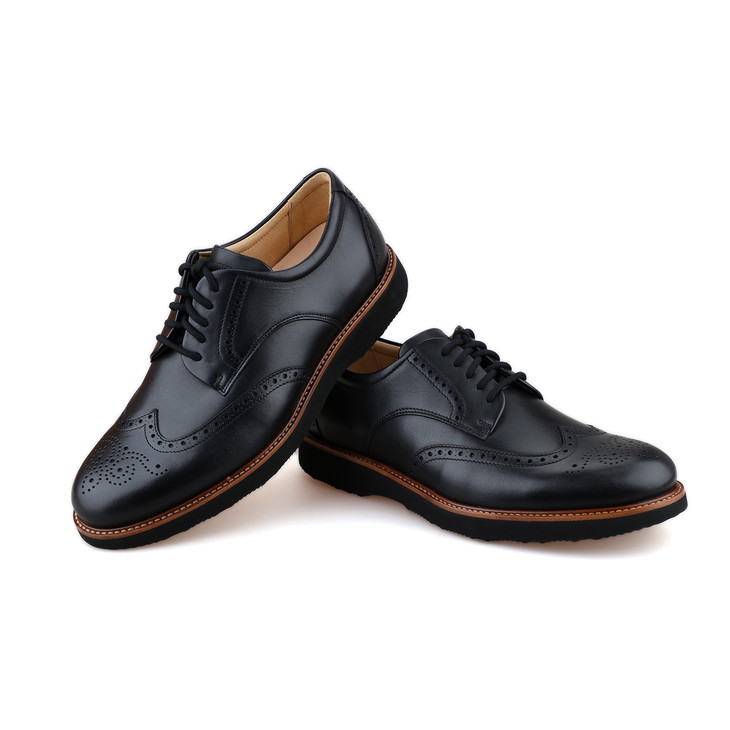 葡萄牙原产手工制作高品质舒适翼型雕花布洛克商务休闲皮鞋黑色M2130(超轻款)
