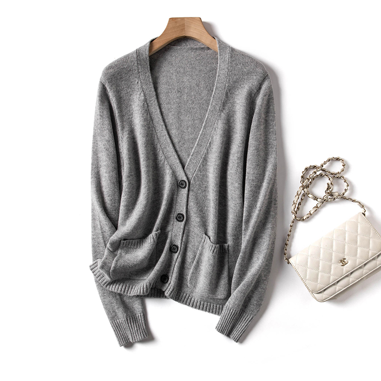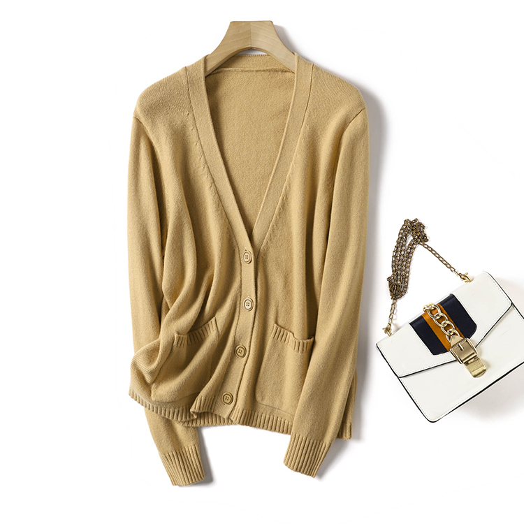 【品牌优选】【福利特惠】针织开衫女加厚V领宽松长袖外搭简约口袋上衣