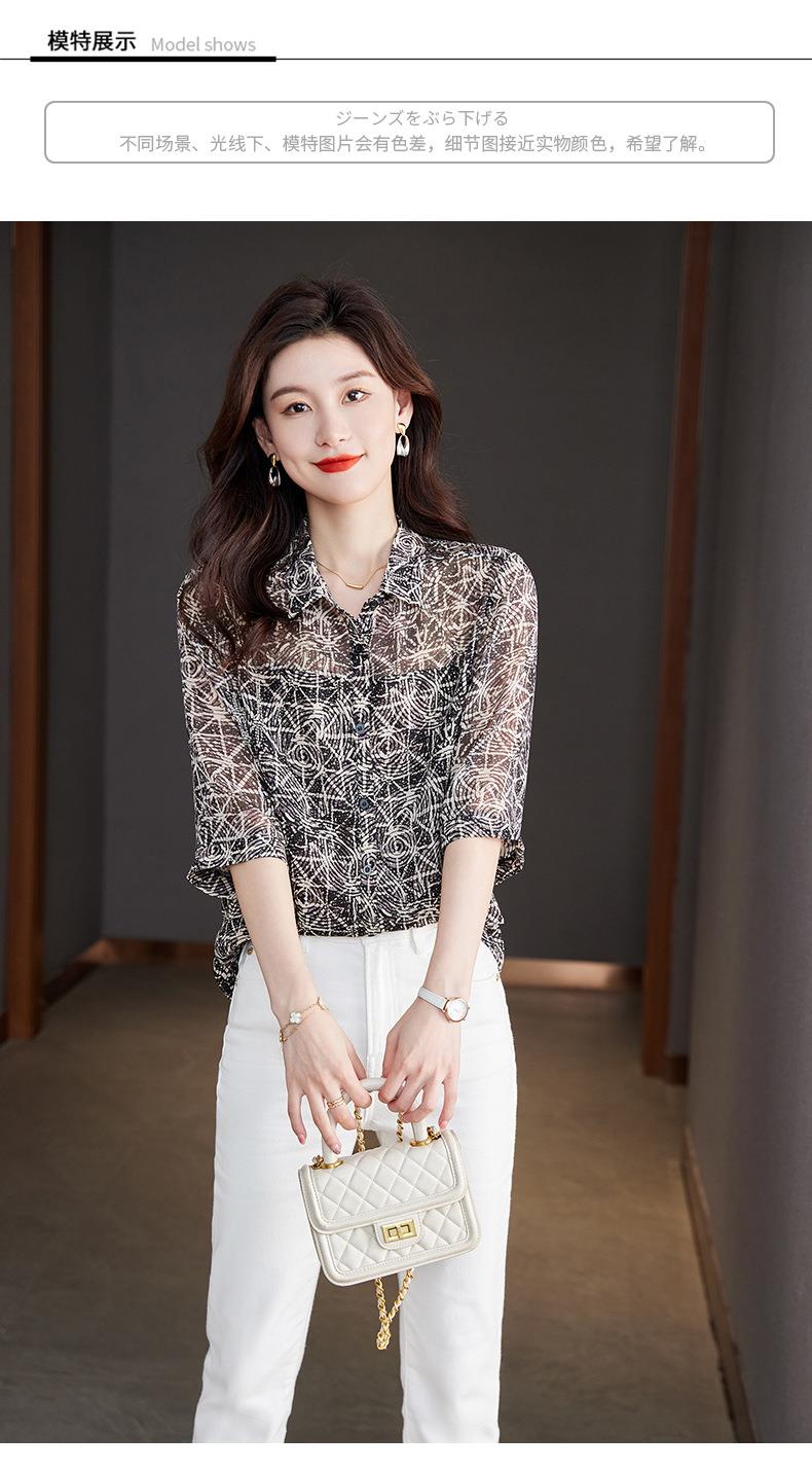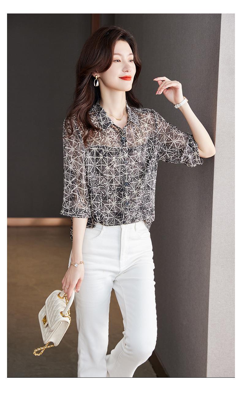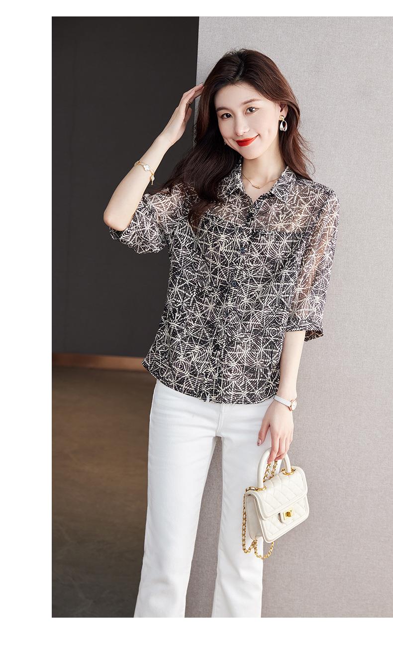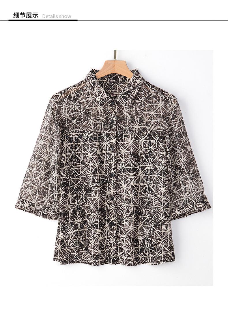 2023夏季新款雪纺衫中袖衬衫女大码T恤翻领小衫5013