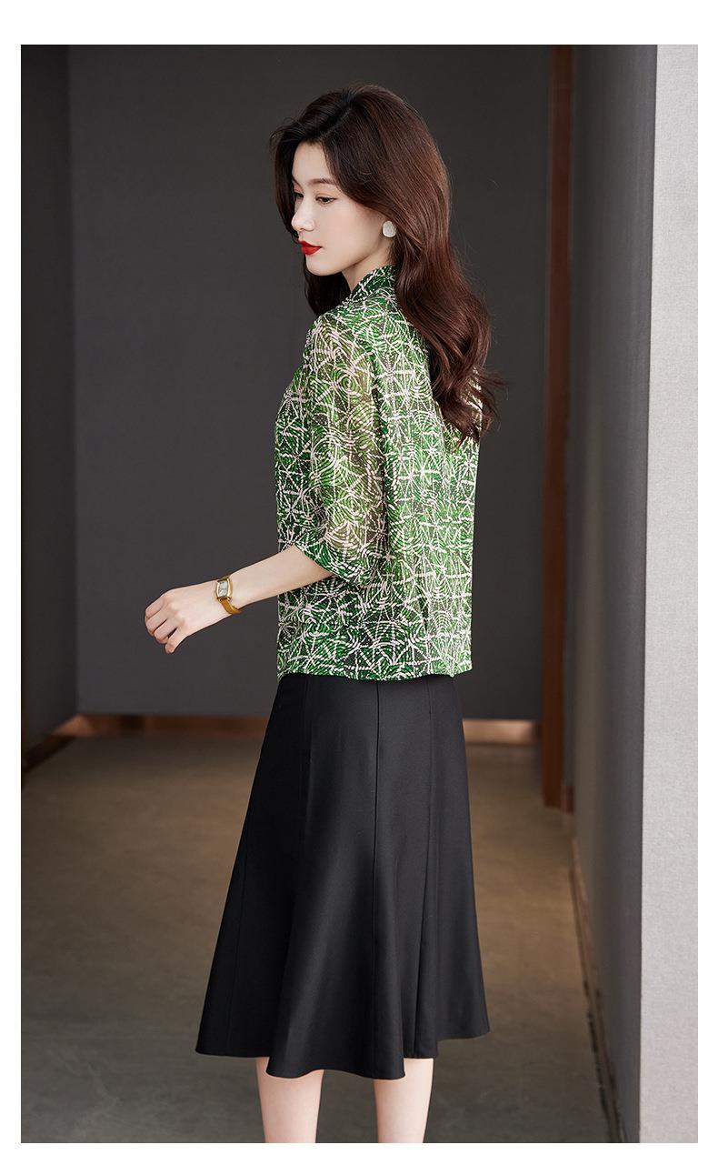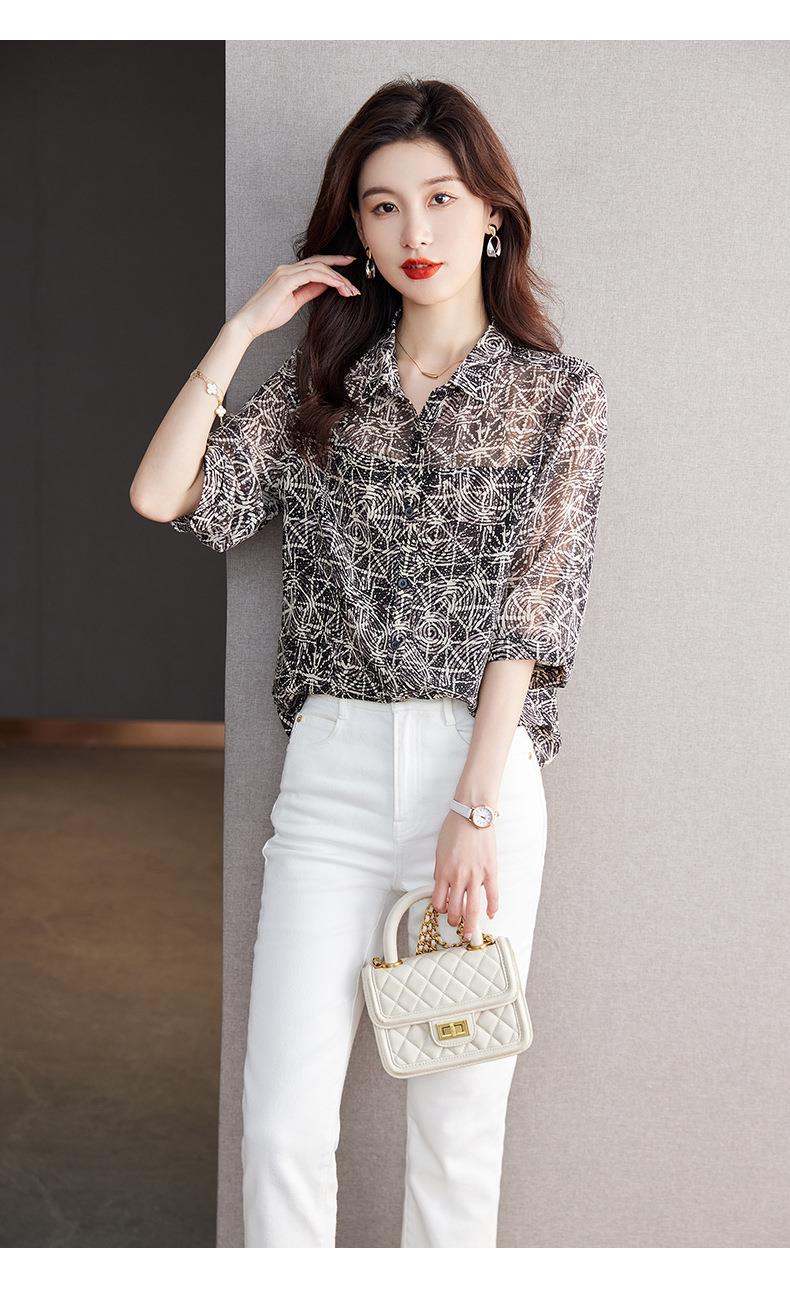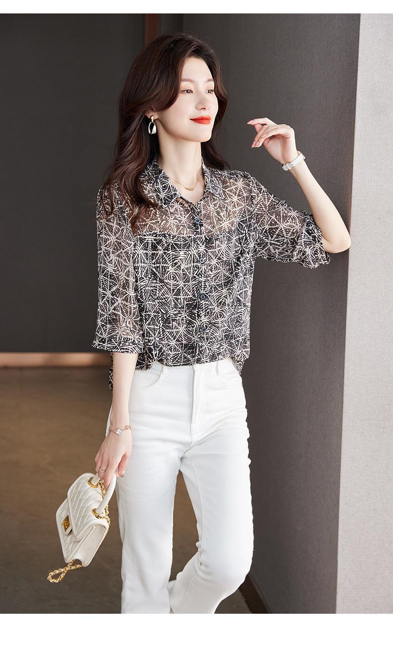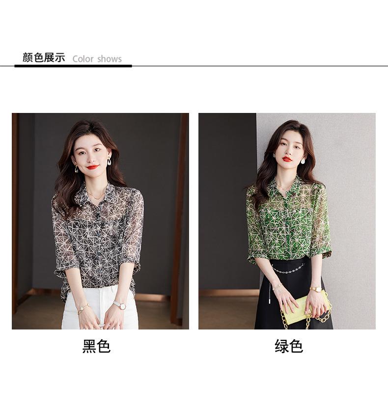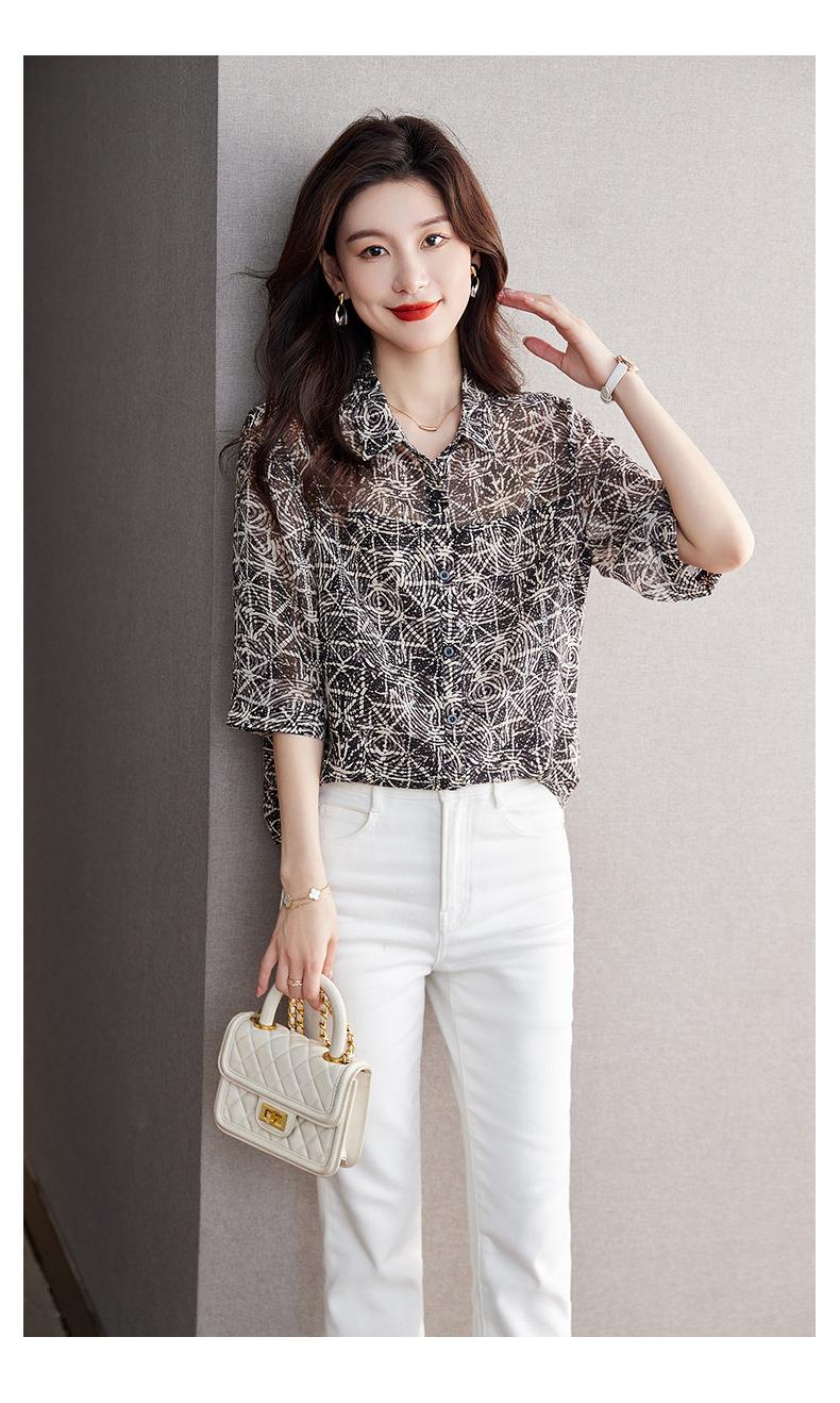 2023夏季新款雪纺衫中袖衬衫女大码T恤翻领小衫5013
