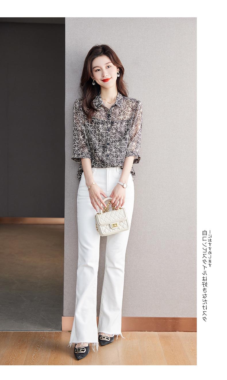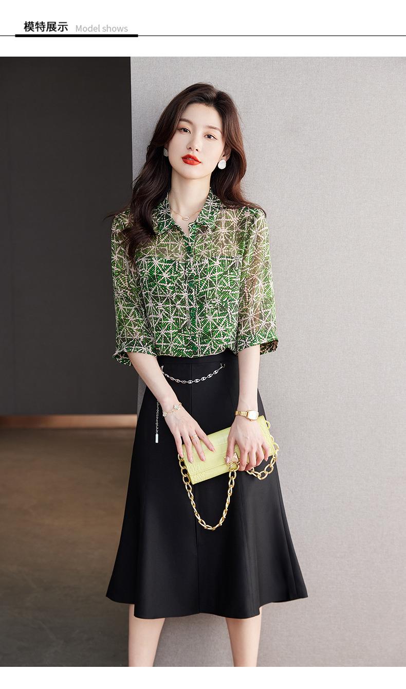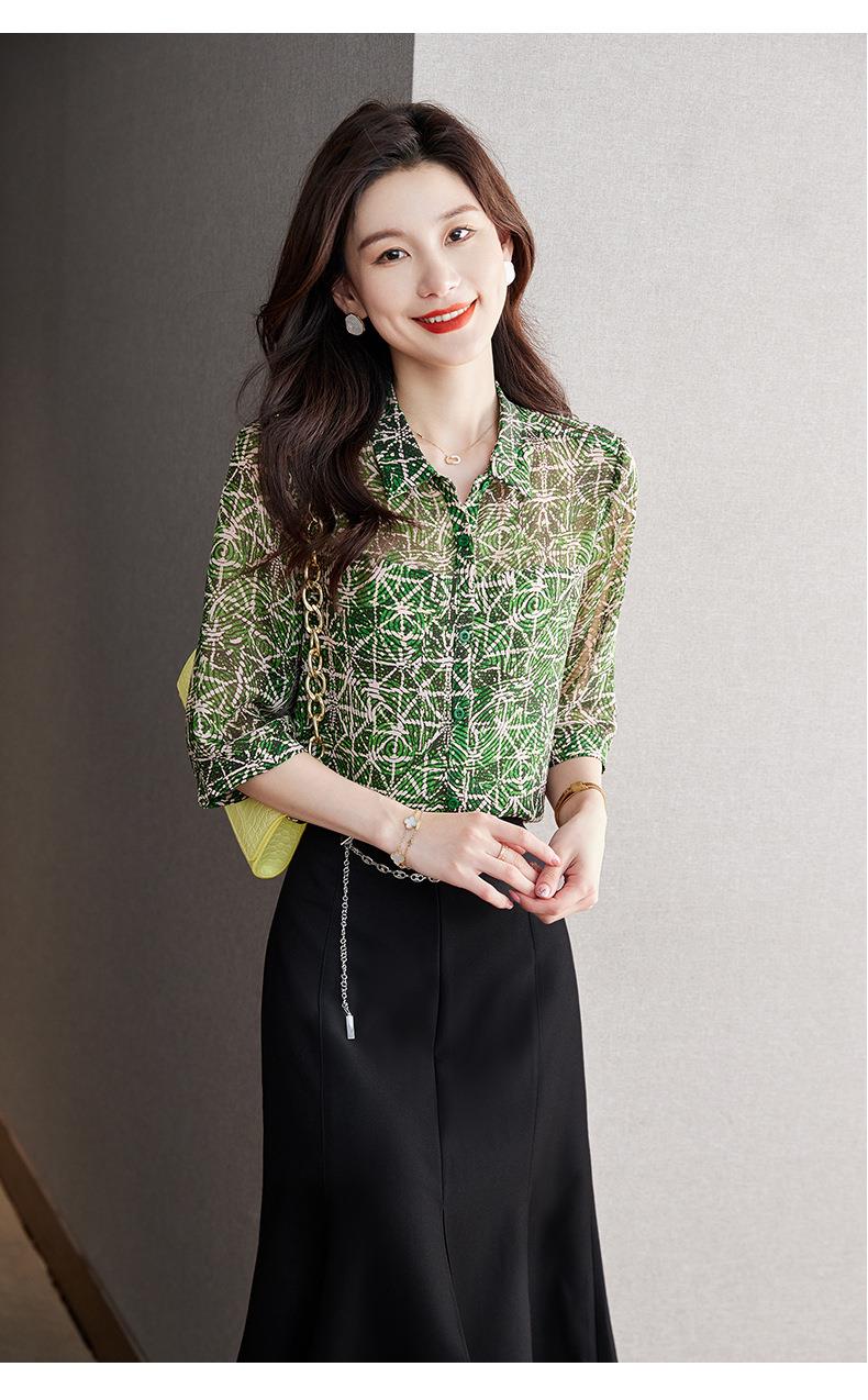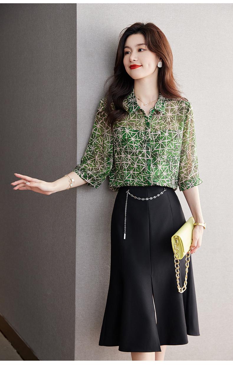 2023夏季新款雪纺衫中袖衬衫女大码T恤翻领小衫5013