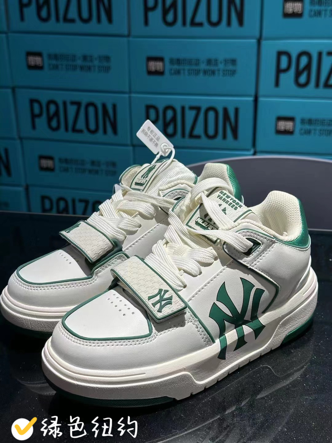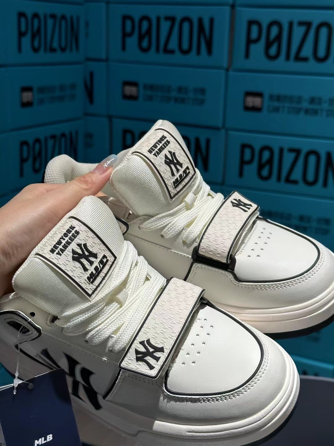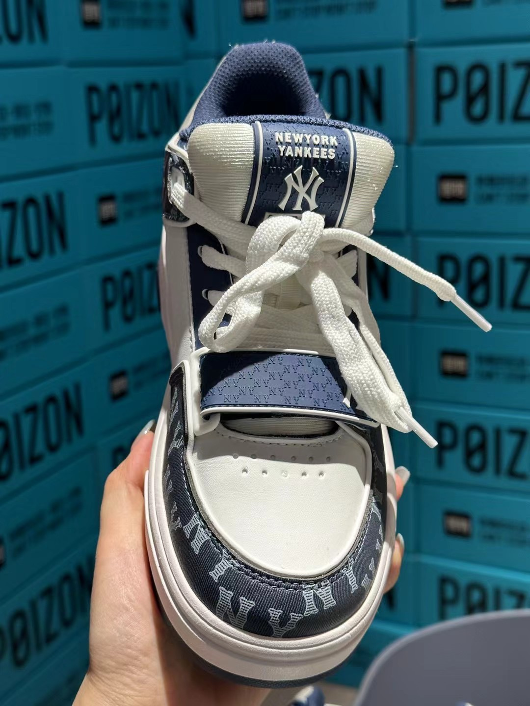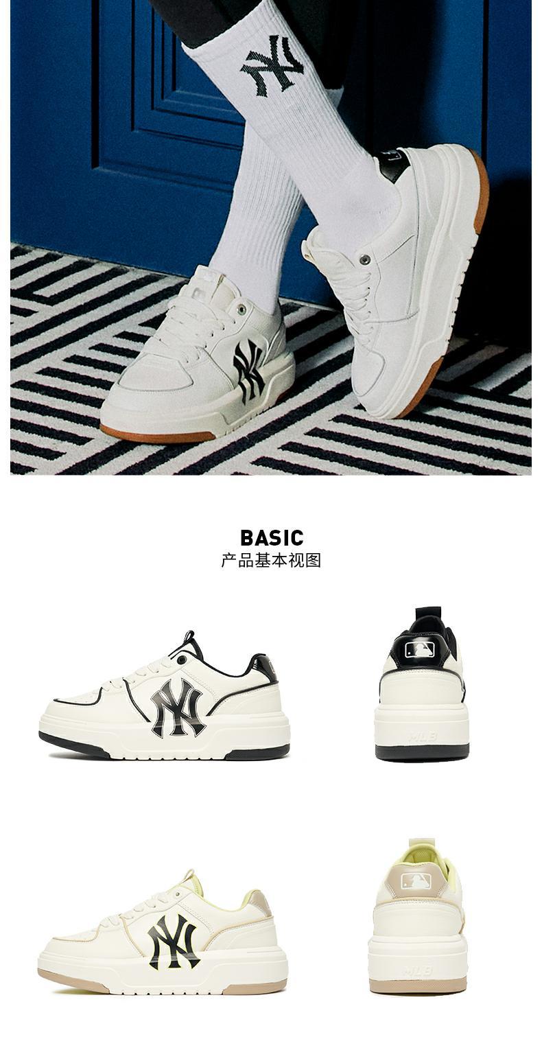 回购无数!!新款 MLB满标老花&经典洋基队板鞋丨新款3色巨轻便!!! 脚感很舒服!纽约洋基队新配色+Chunky Liner Low/ 魔术贴中帮 校园风系列增高厚底百搭学长鞋,男女可穿