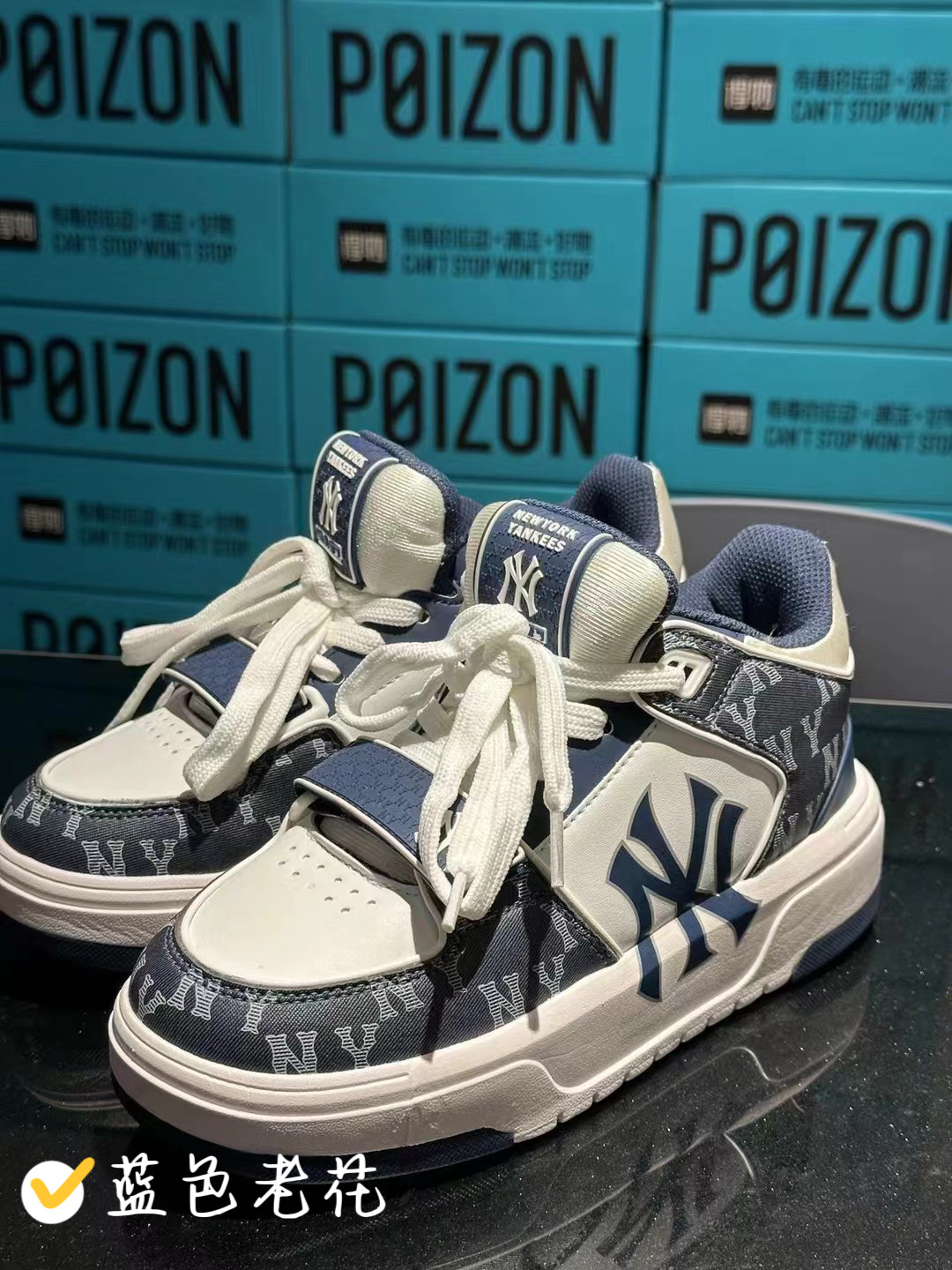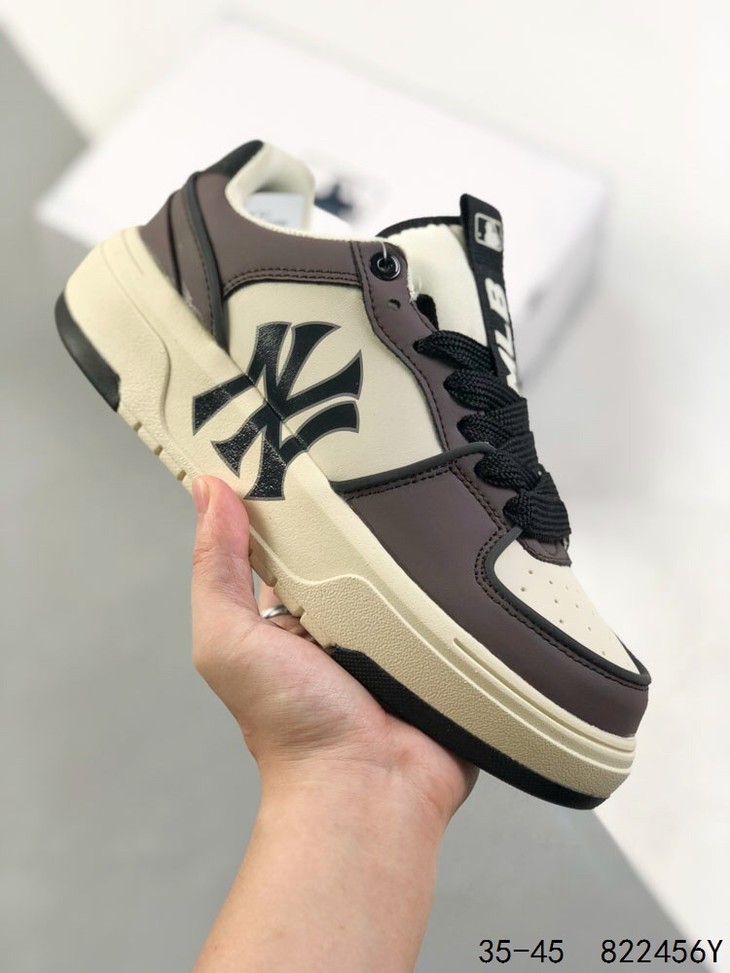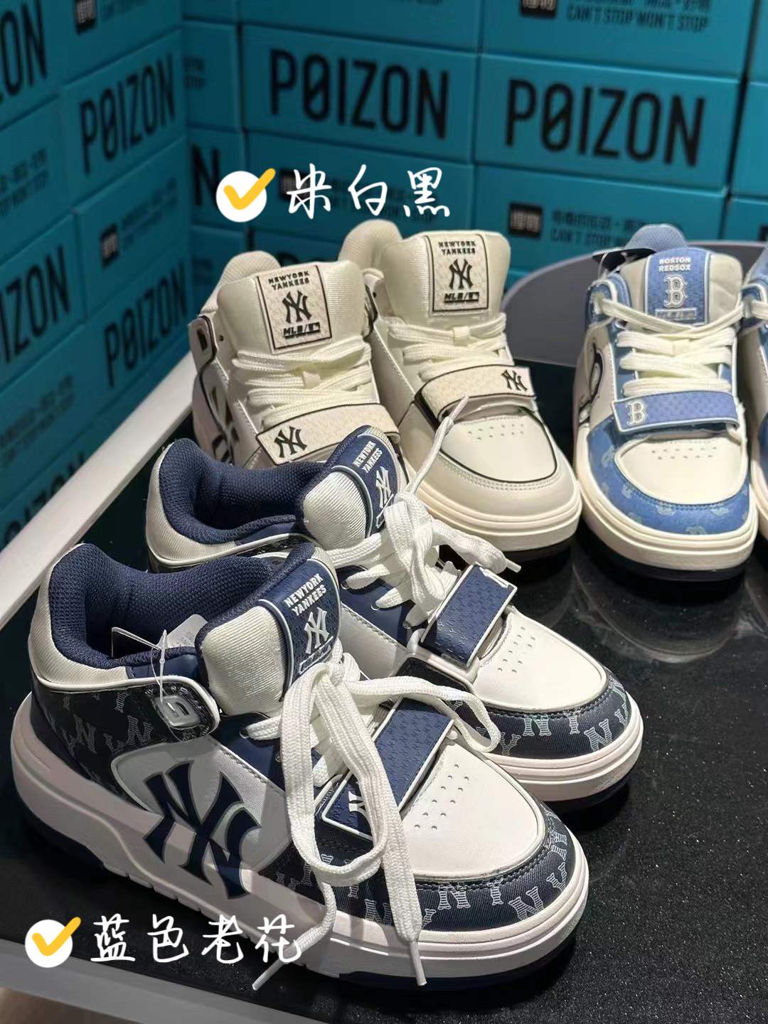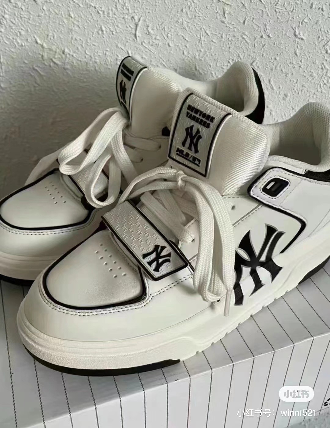 回购无数!!新款 MLB满标老花&经典洋基队板鞋丨新款3色巨轻便!!! 脚感很舒服!纽约洋基队新配色+Chunky Liner Low/ 魔术贴中帮 校园风系列增高厚底百搭学长鞋,男女可穿