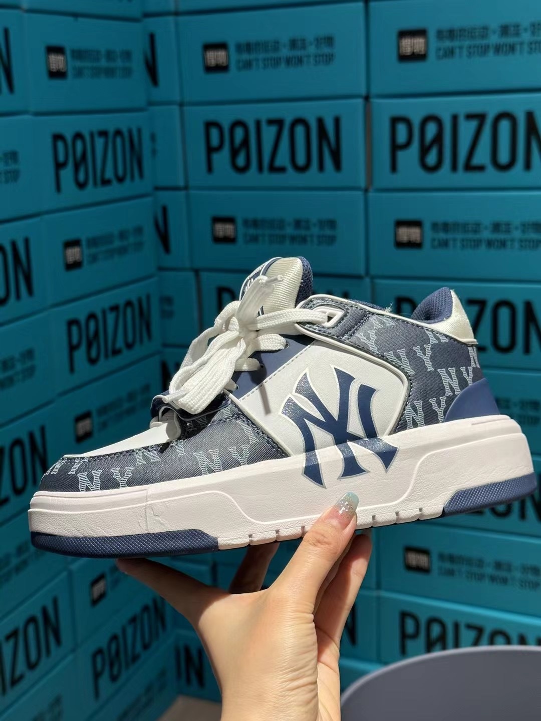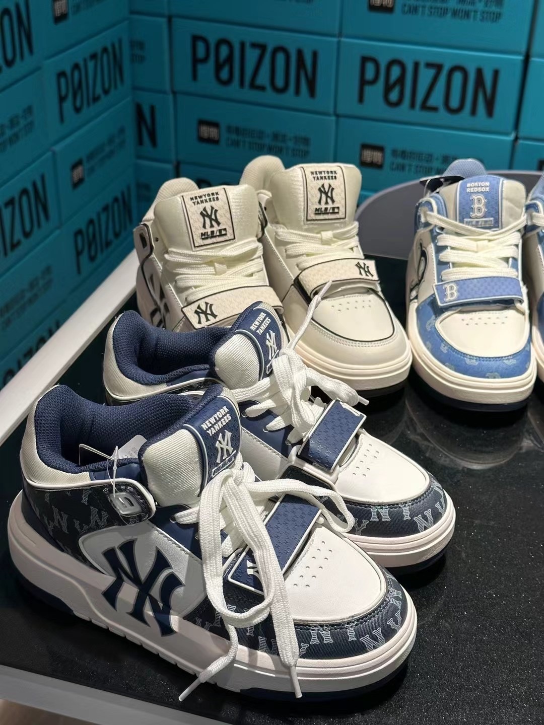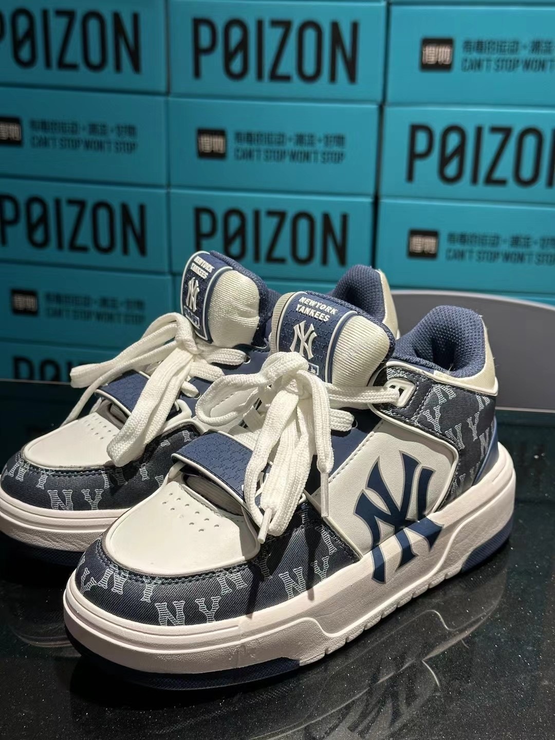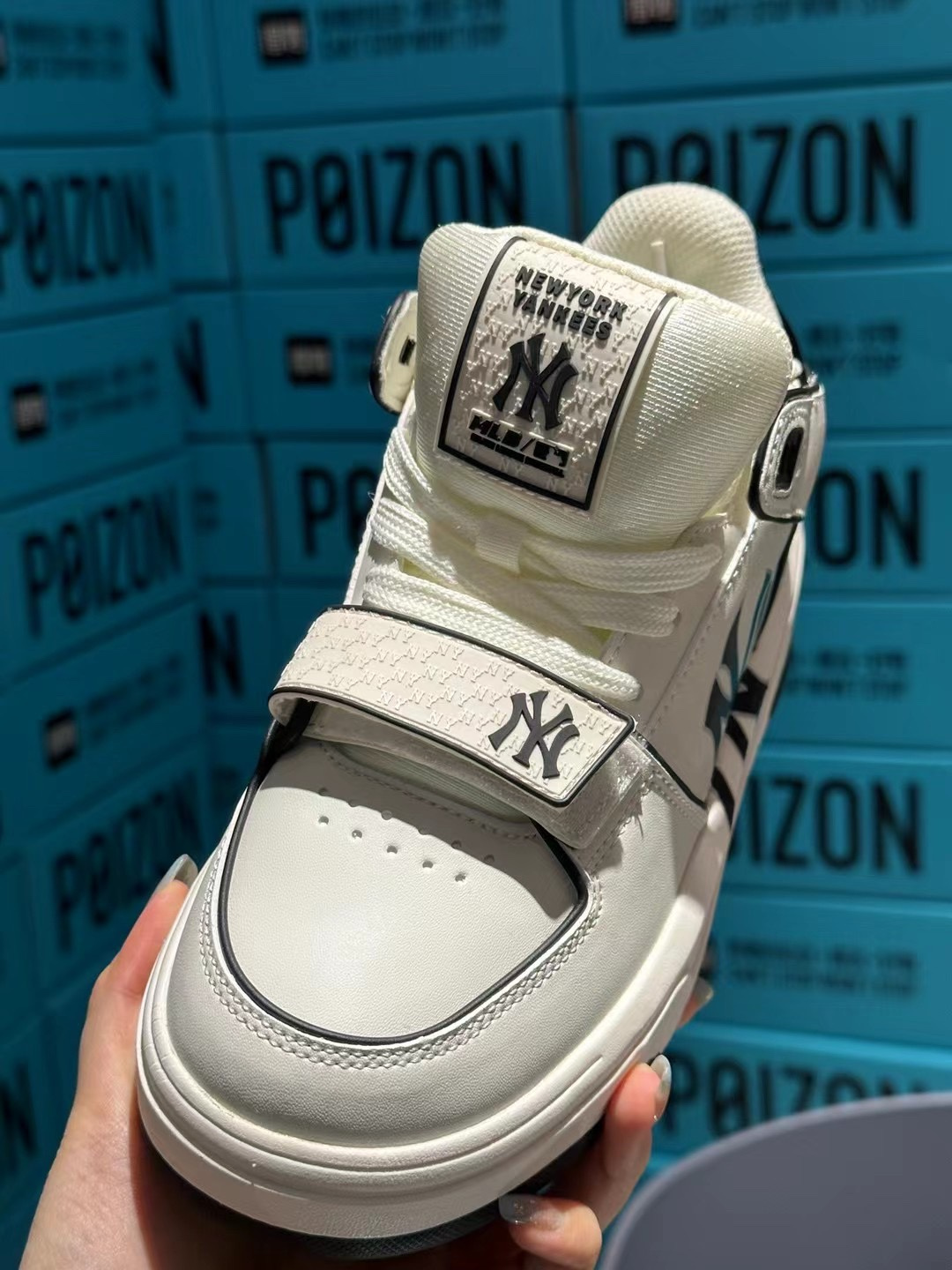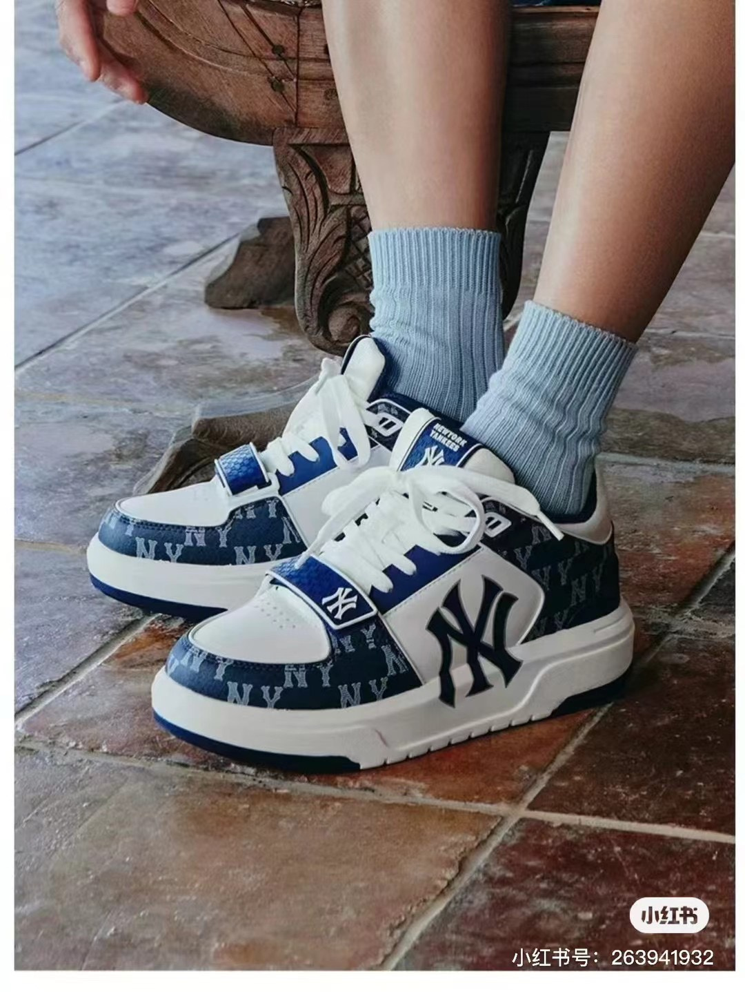 回购无数!!新款 MLB满标老花&经典洋基队板鞋丨新款3色巨轻便!!! 脚感很舒服!纽约洋基队新配色+Chunky Liner Low/ 魔术贴中帮 校园风系列增高厚底百搭学长鞋,男女可穿