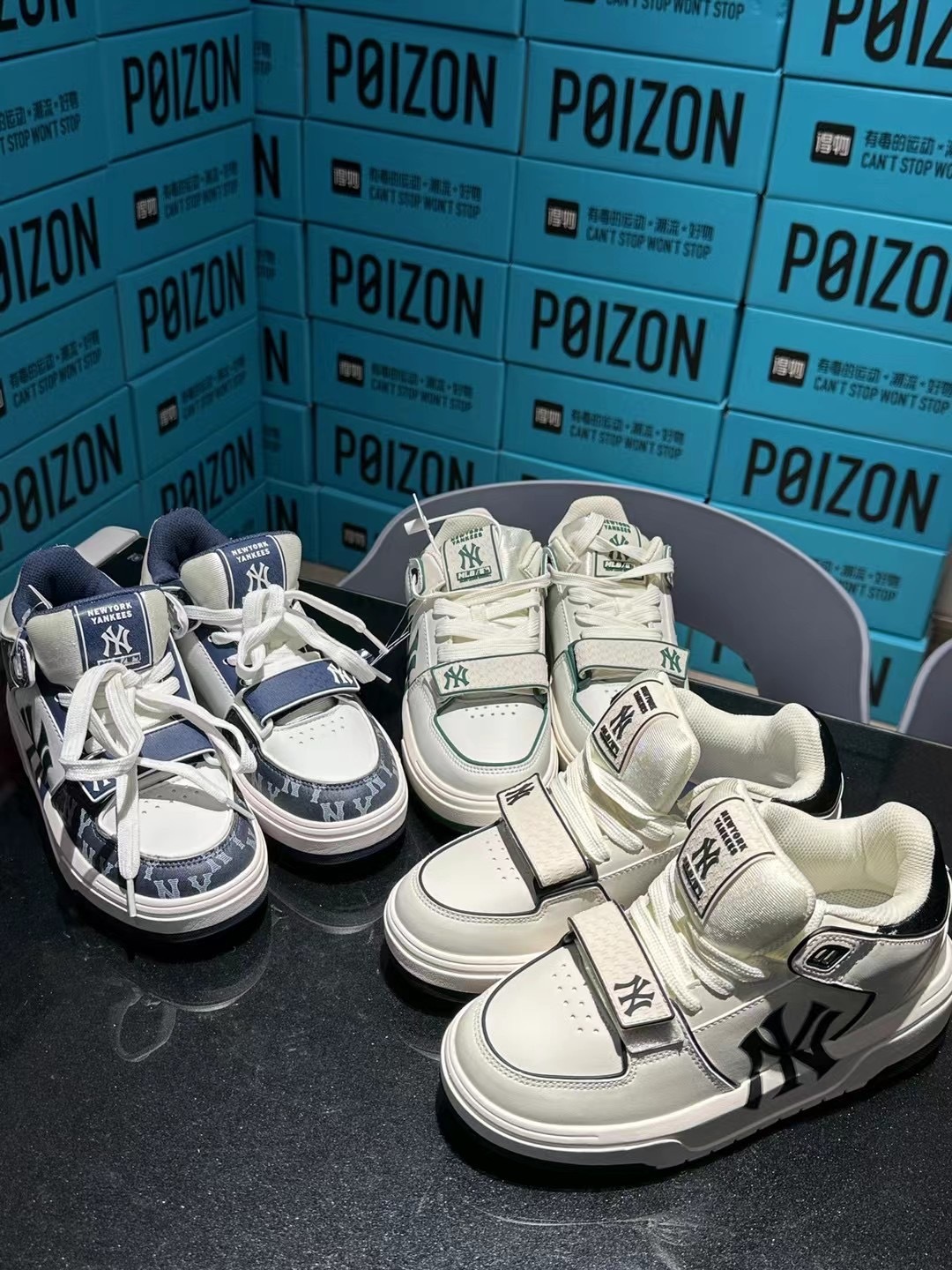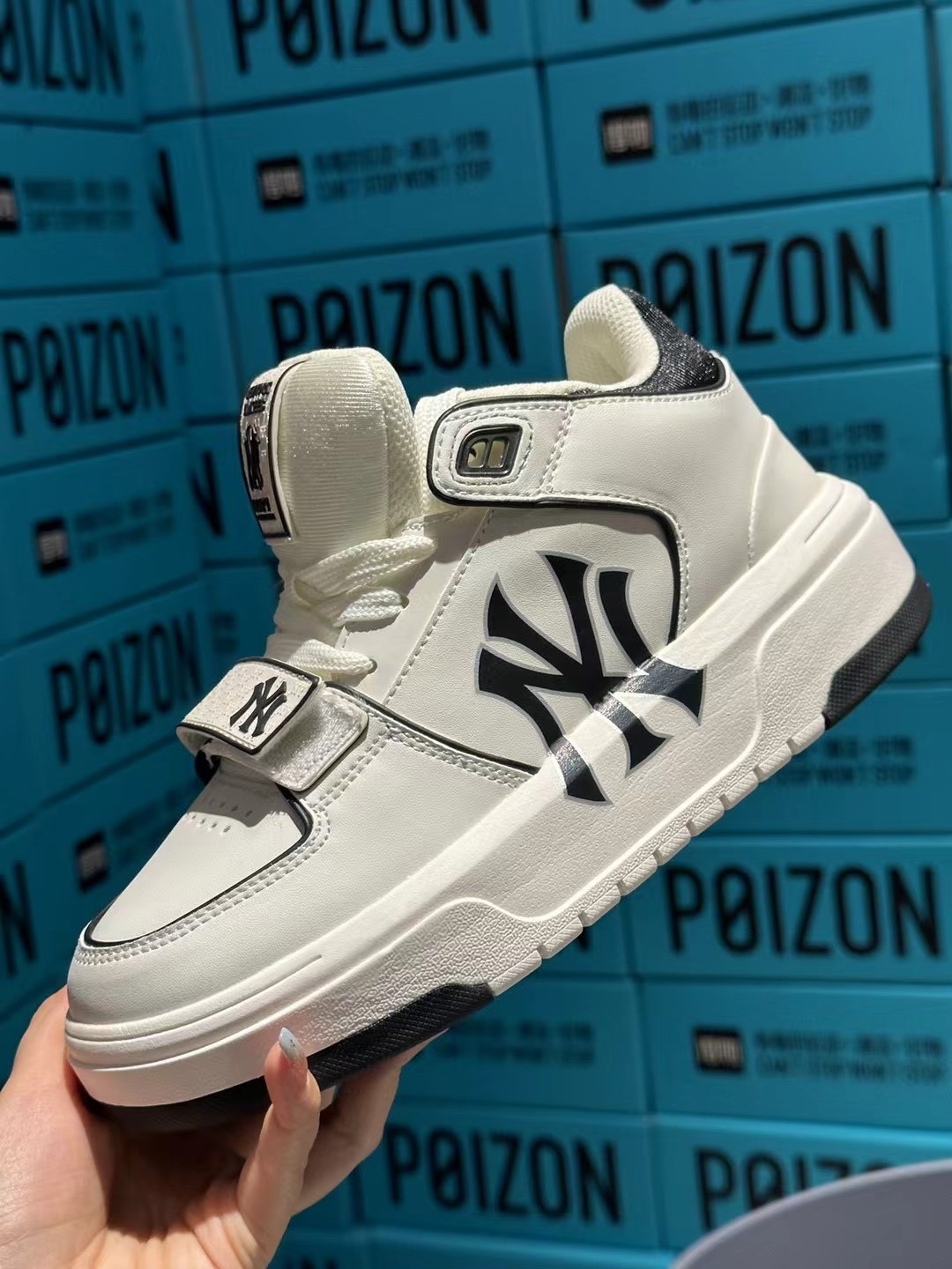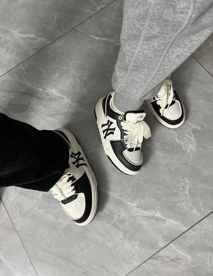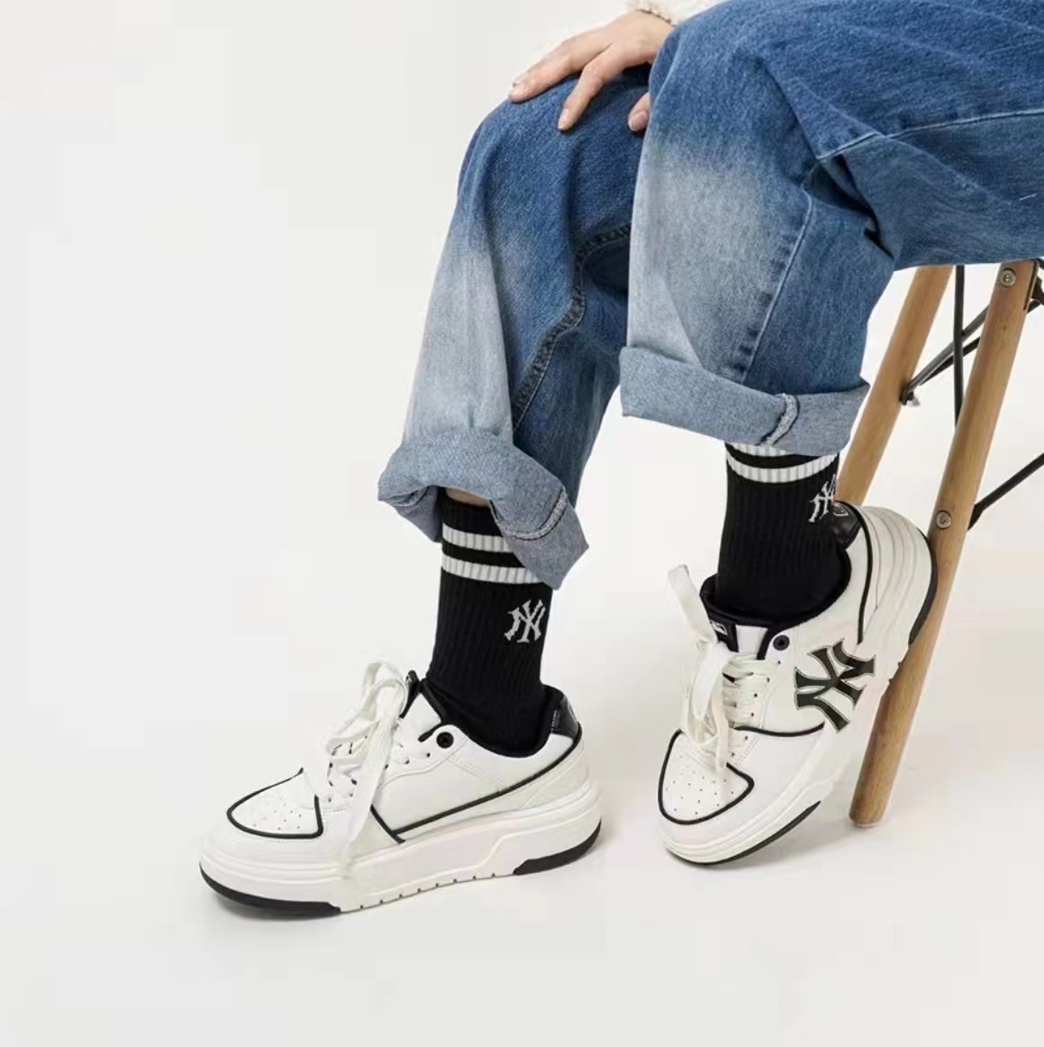 回购无数!!新款 MLB满标老花&经典洋基队板鞋丨新款3色巨轻便!!! 脚感很舒服!纽约洋基队新配色+Chunky Liner Low/ 魔术贴中帮 校园风系列增高厚底百搭学长鞋,男女可穿