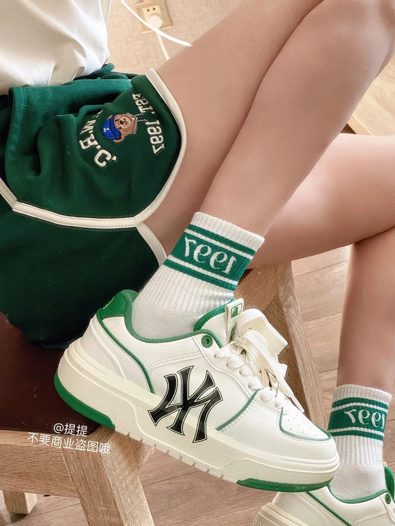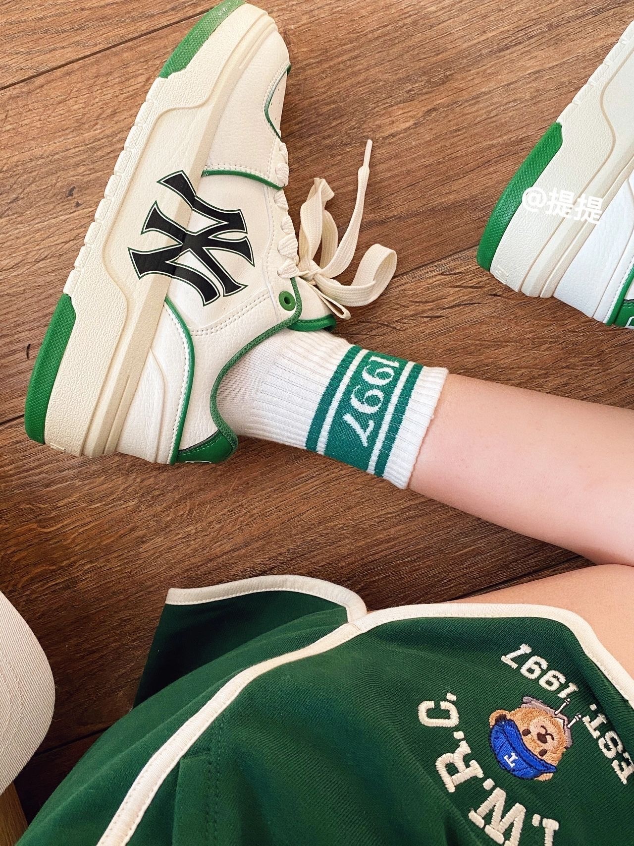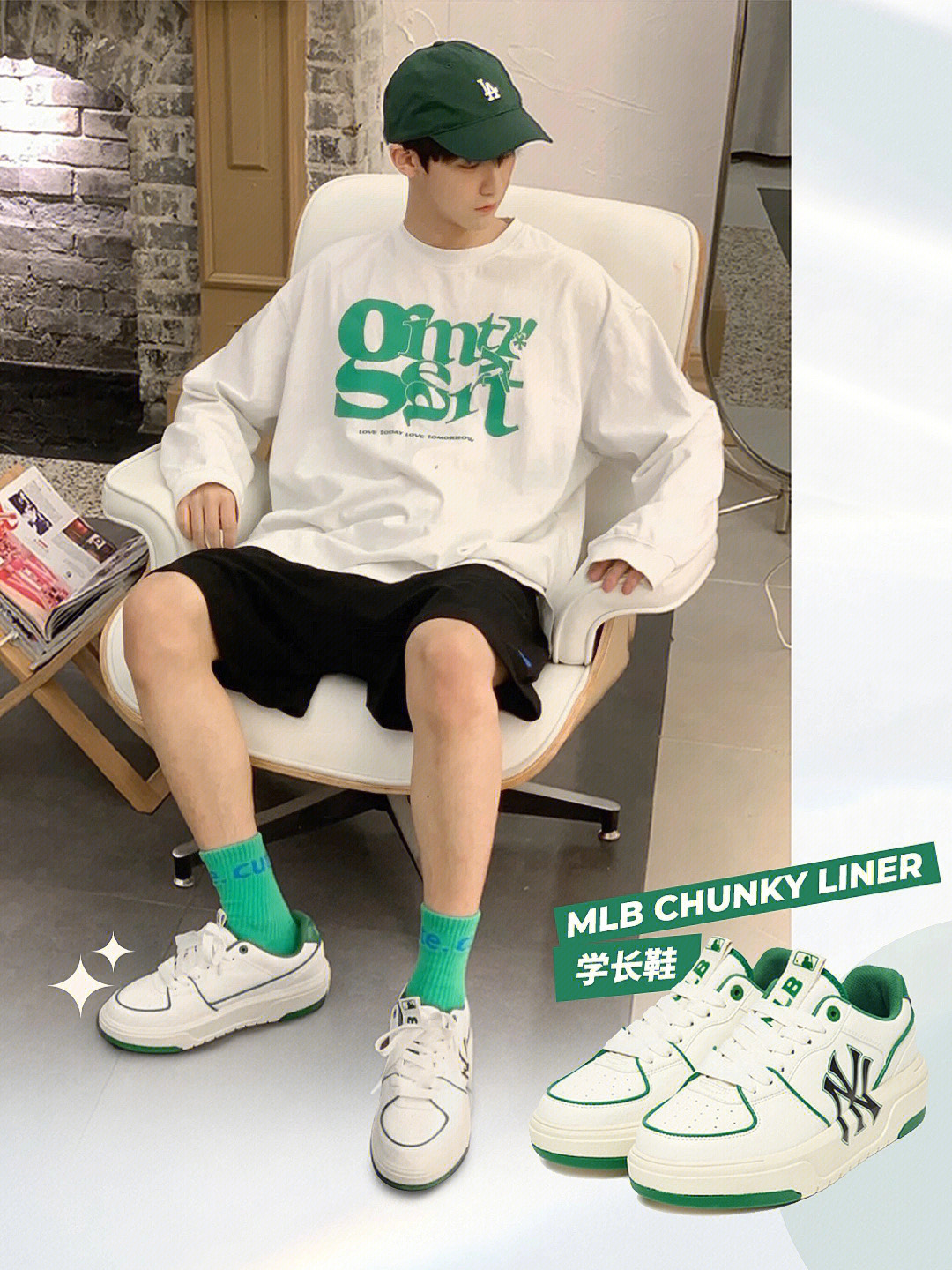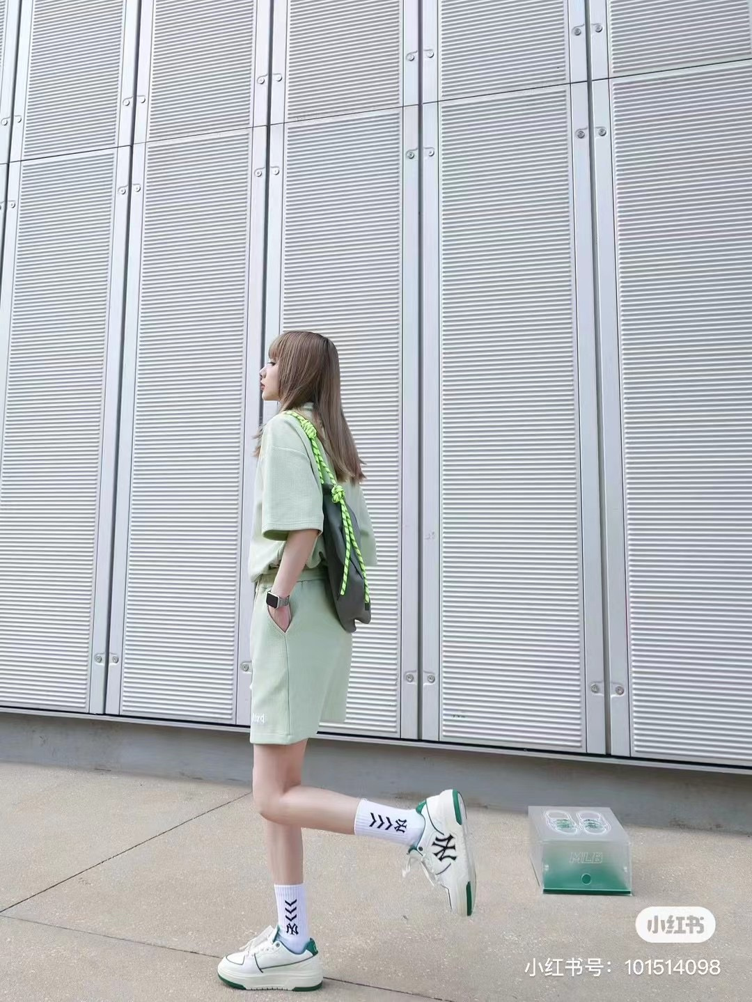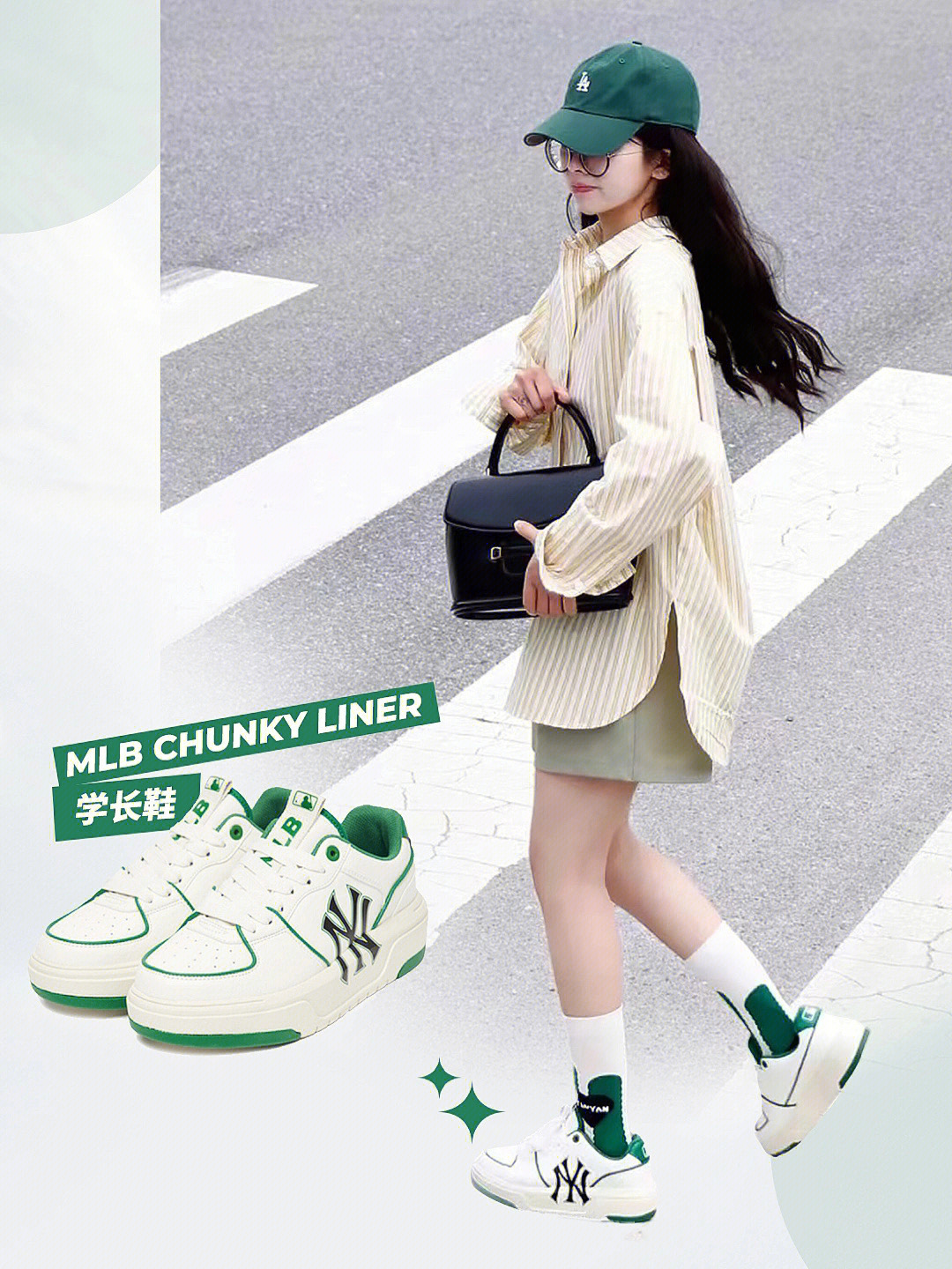 ②一双学姐学长鞋十MLB中筒袜』,拿捏可下装失踪法,显瘦显高,搭配元气绿,点亮好心情