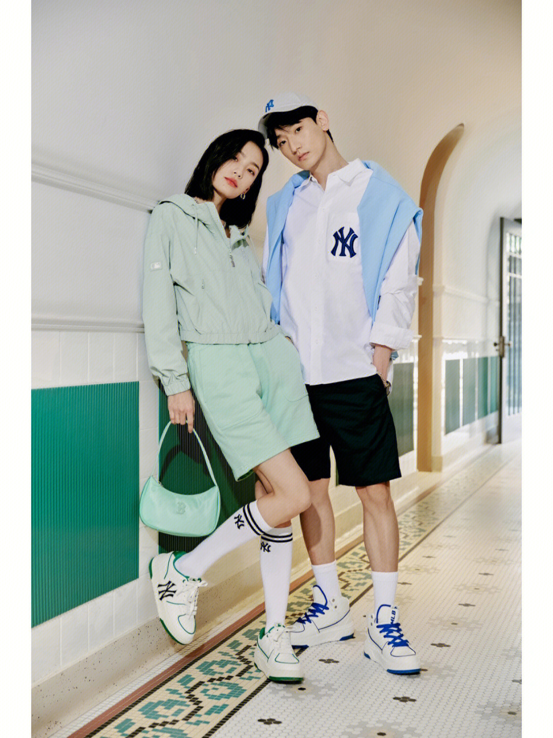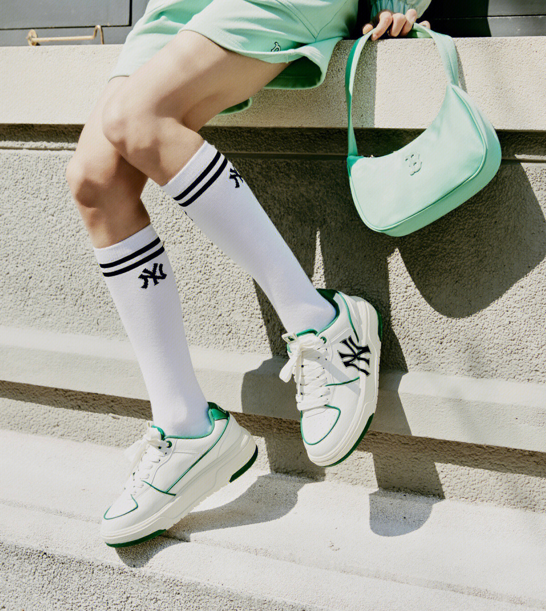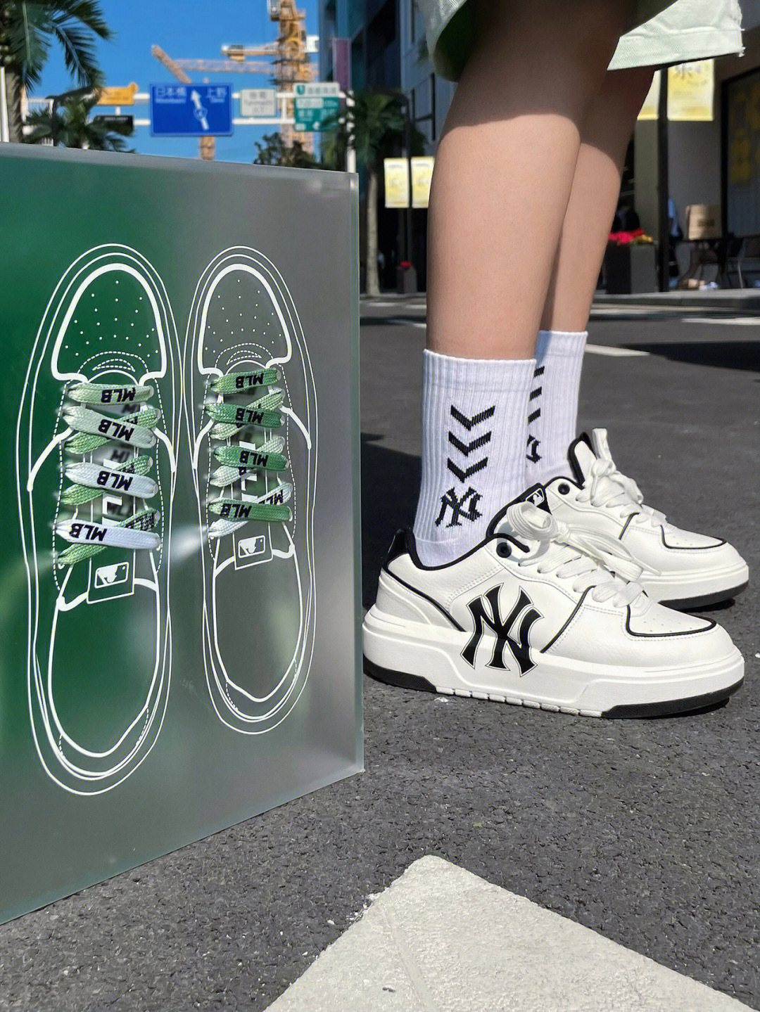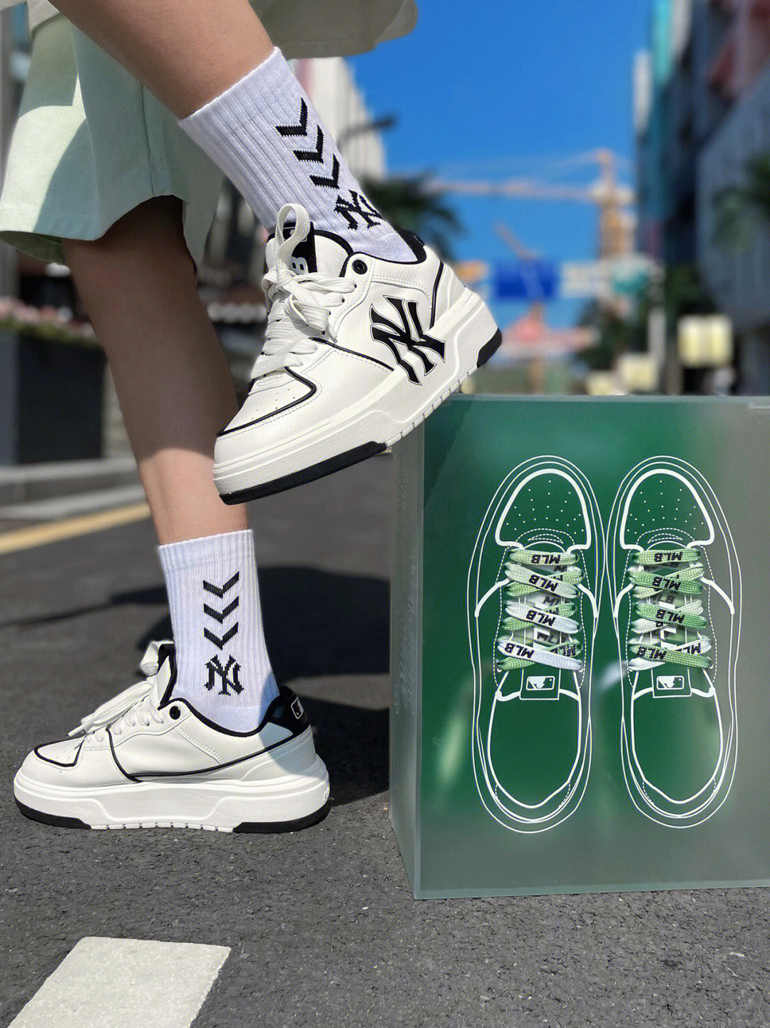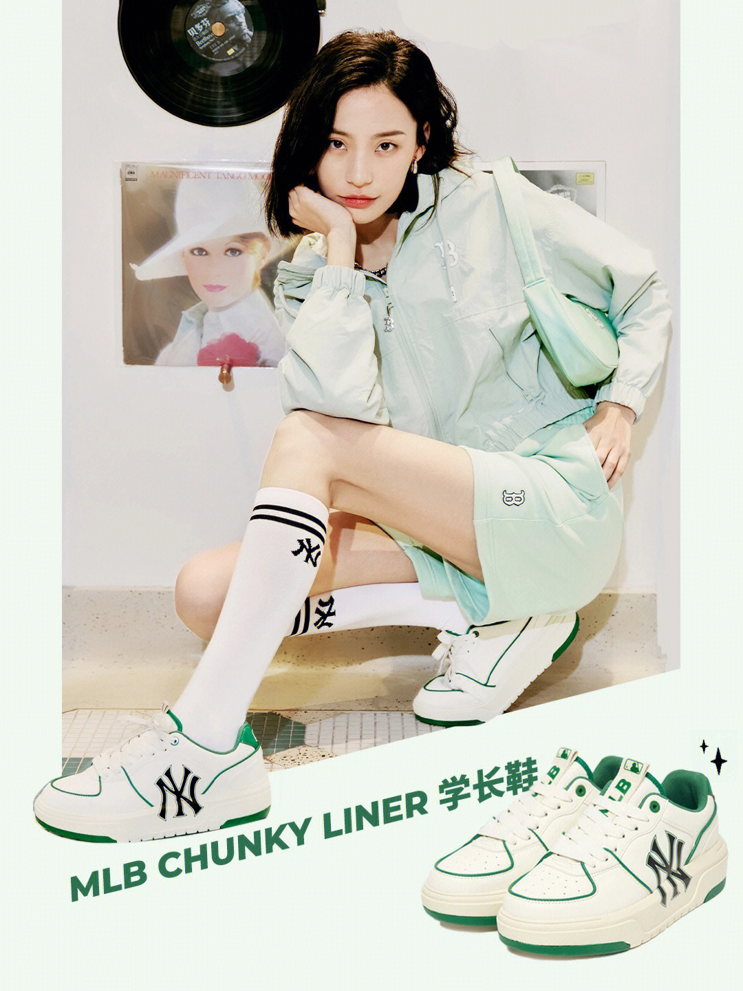 ②一双学姐学长鞋十MLB中筒袜』,拿捏可下装失踪法,显瘦显高,搭配元气绿,点亮好心情