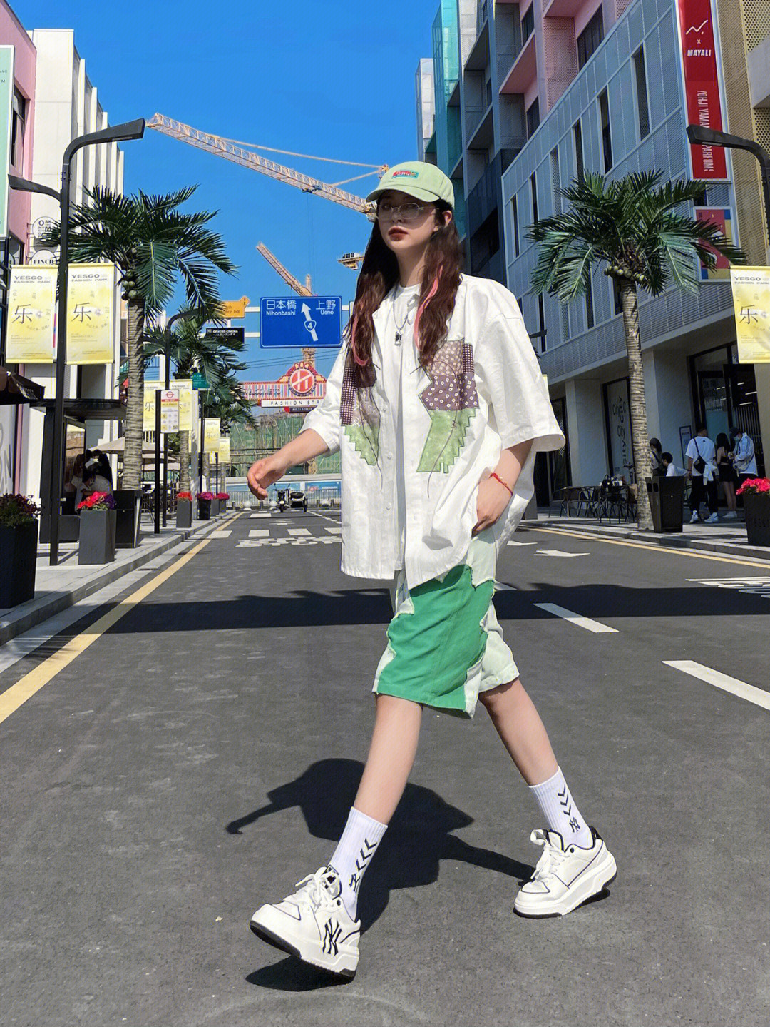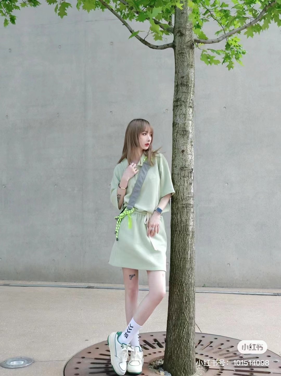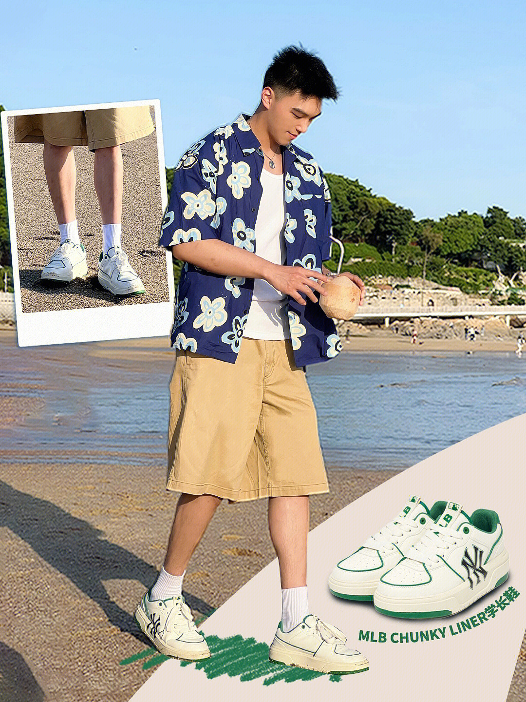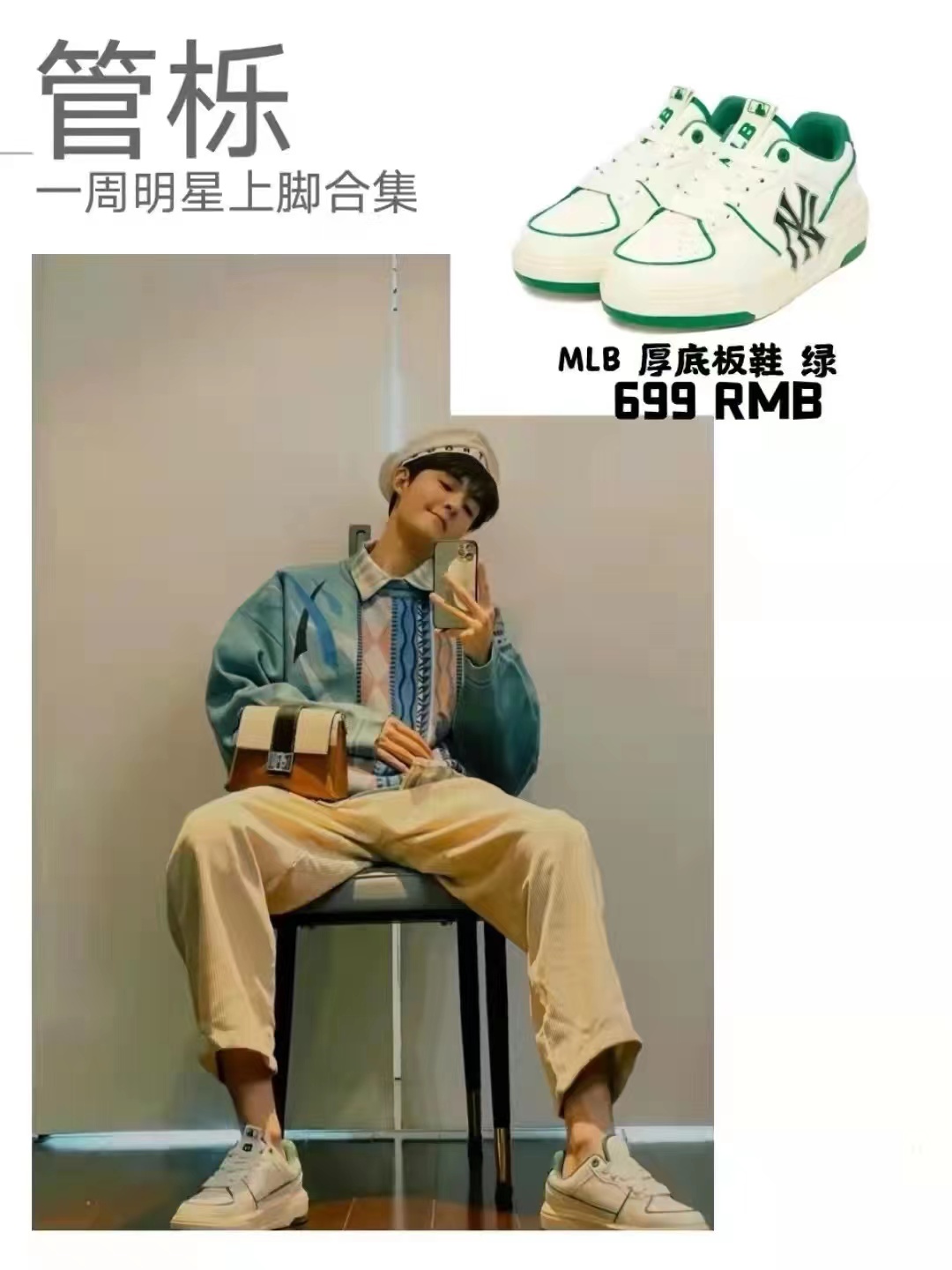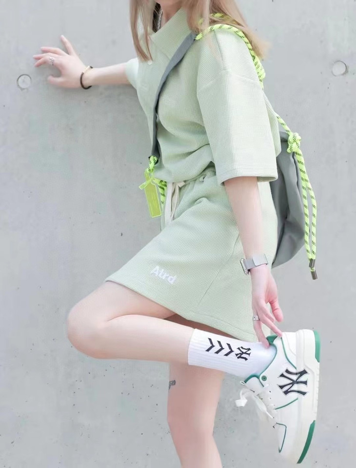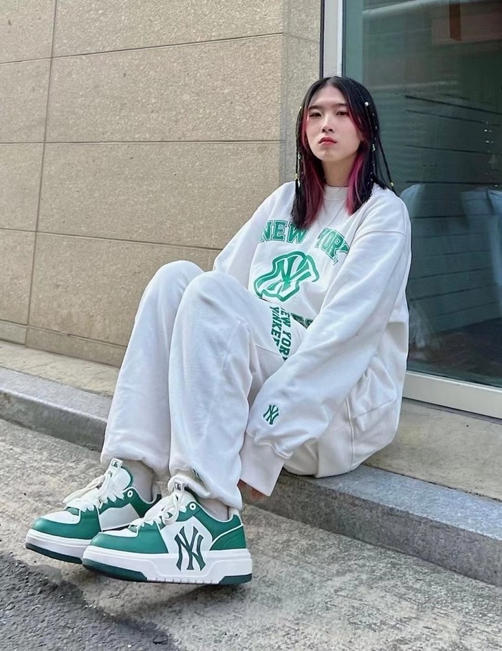 ②一双学姐学长鞋十MLB中筒袜』,拿捏可下装失踪法,显瘦显高,搭配元气绿,点亮好心情