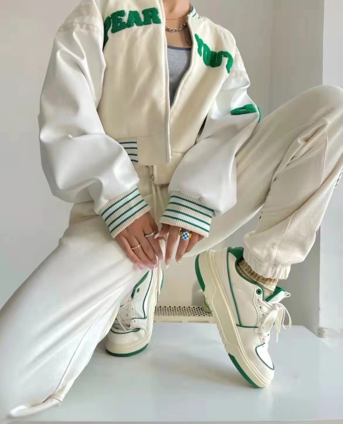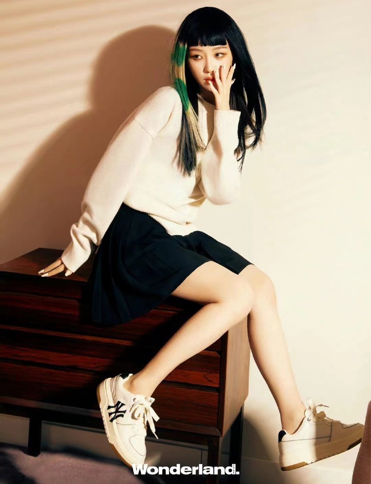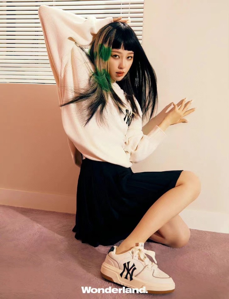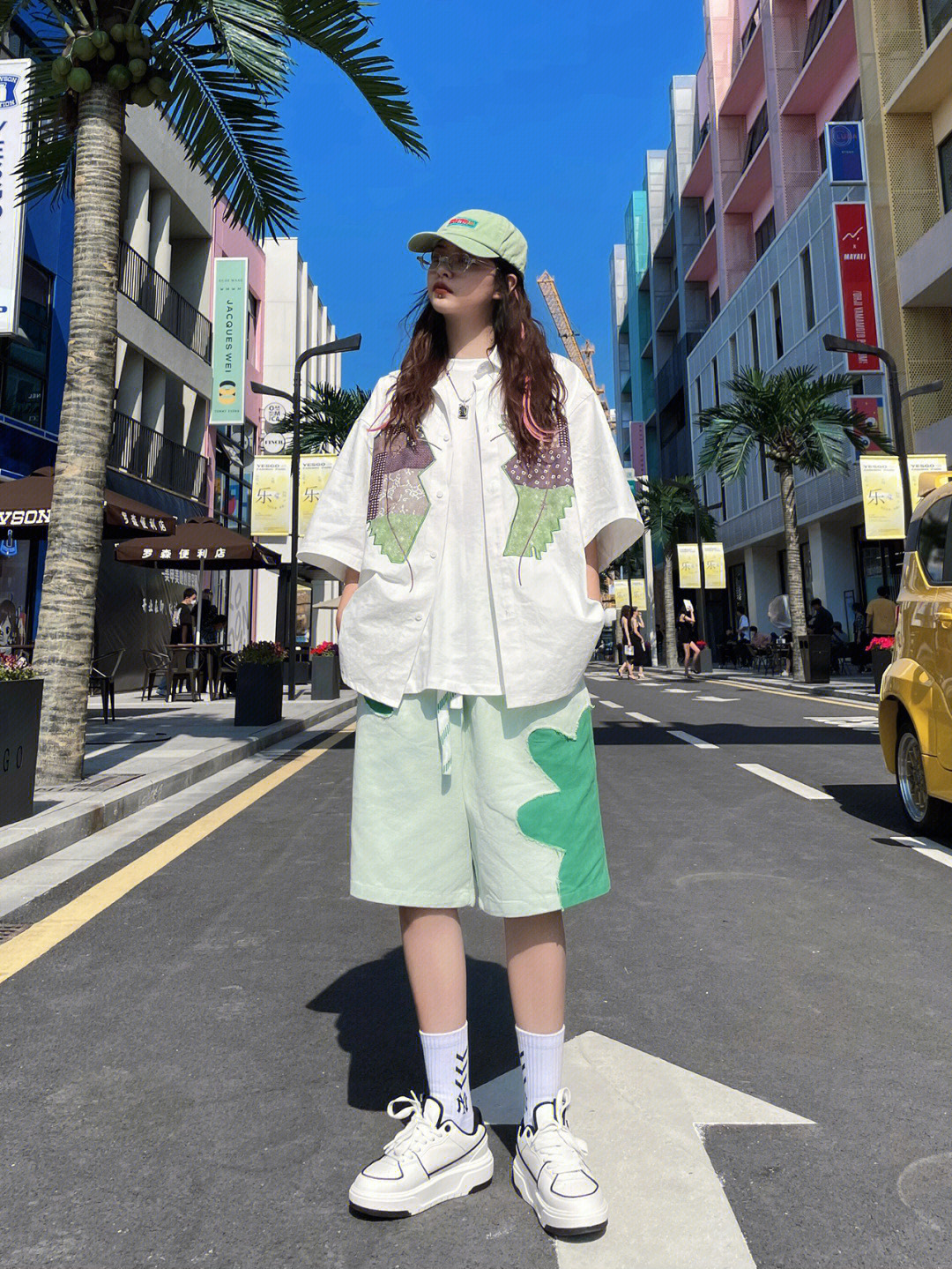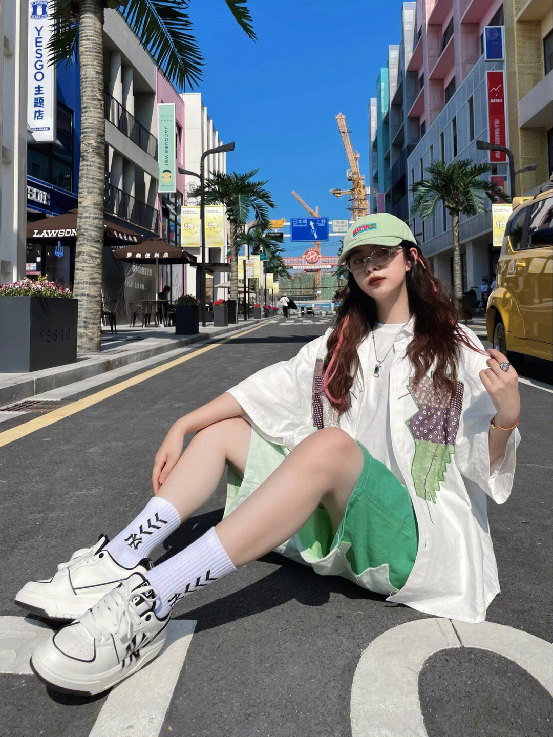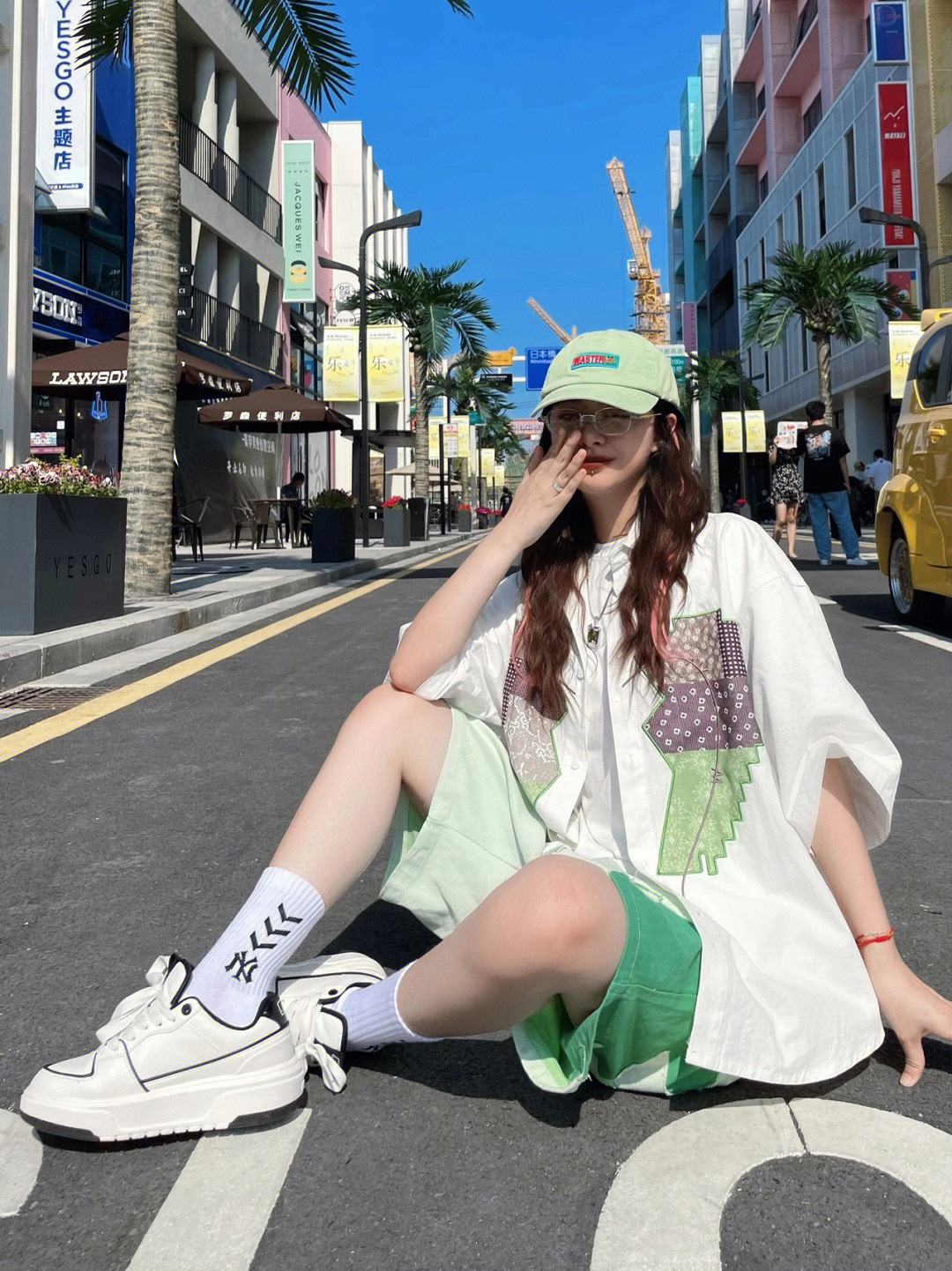 ②一双学姐学长鞋十MLB中筒袜』,拿捏可下装失踪法,显瘦显高,搭配元气绿,点亮好心情