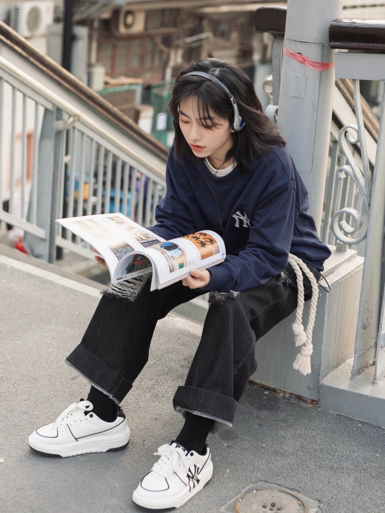 ①配色学长鞋,呼应整体穿搭LOOK,舒适感➕复古感➕甜酷,少年感十足