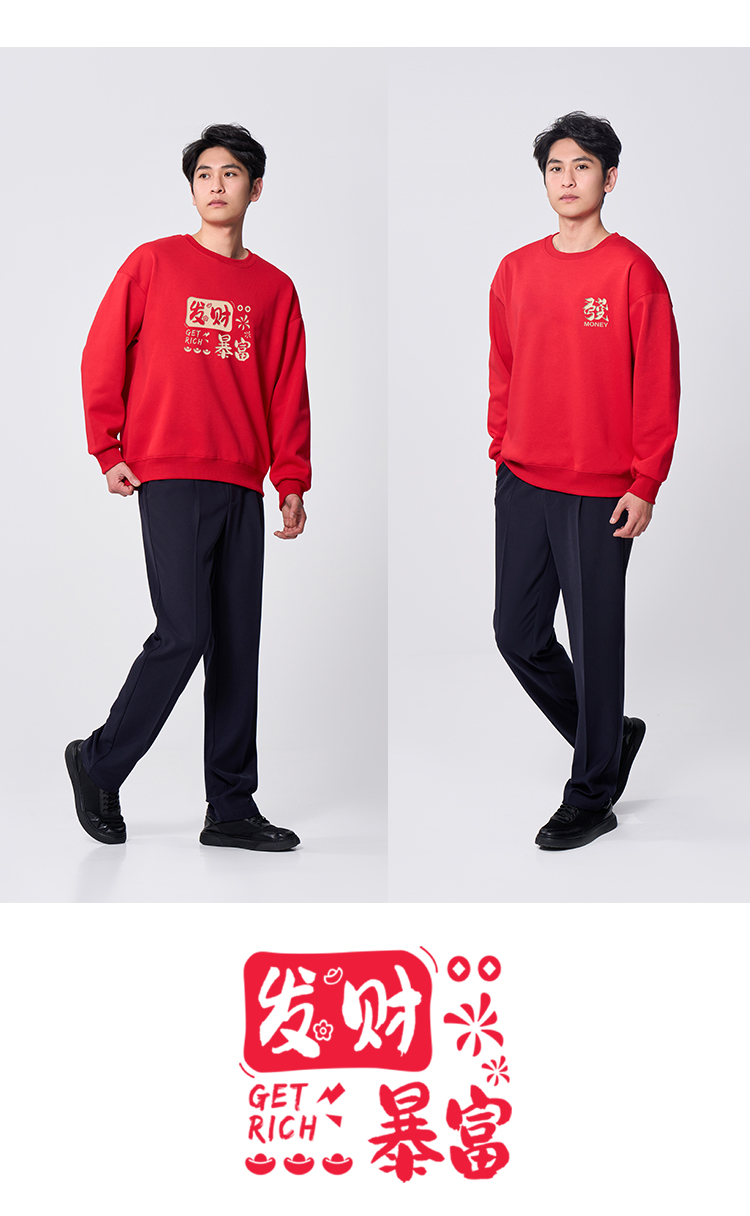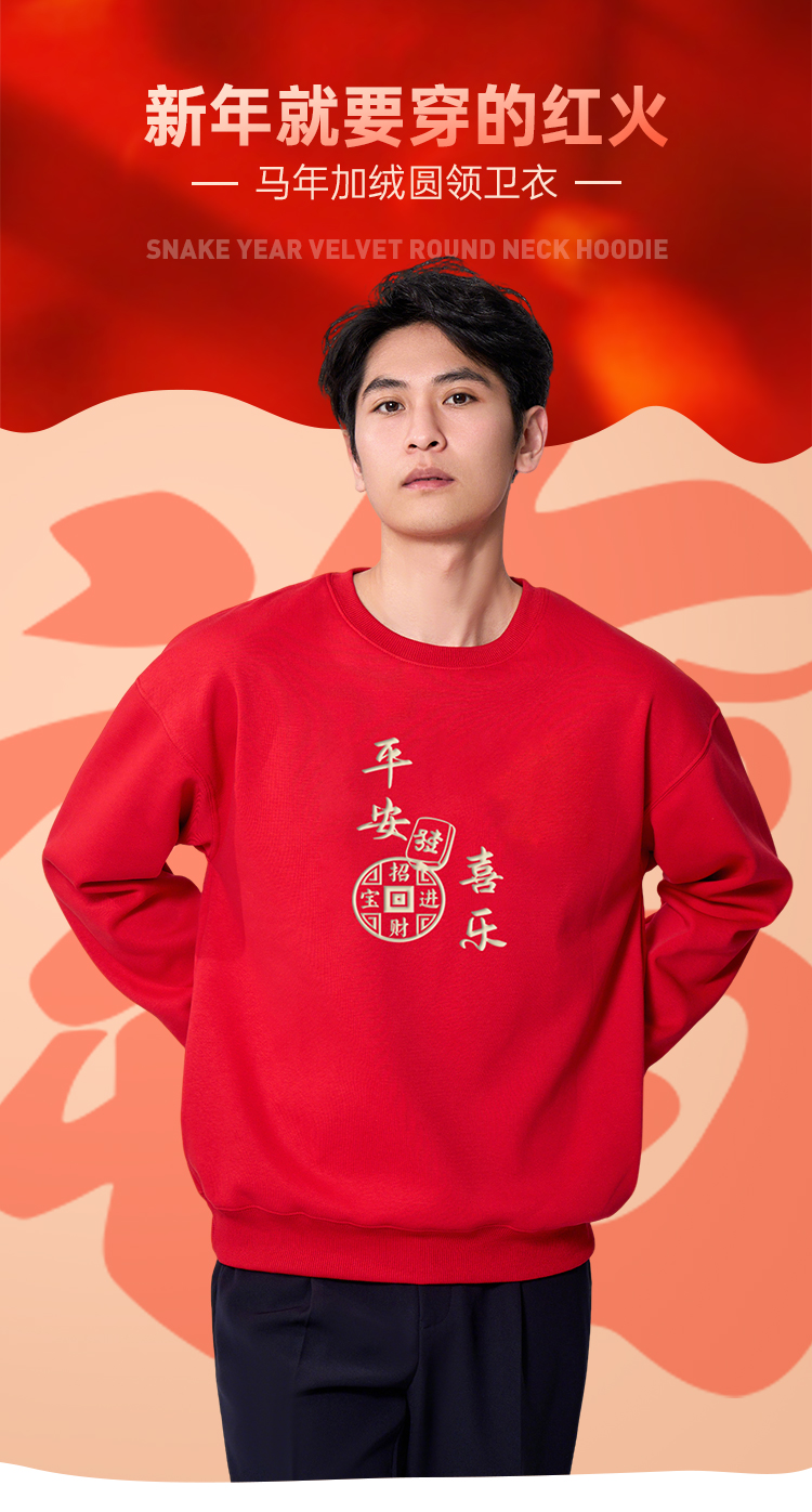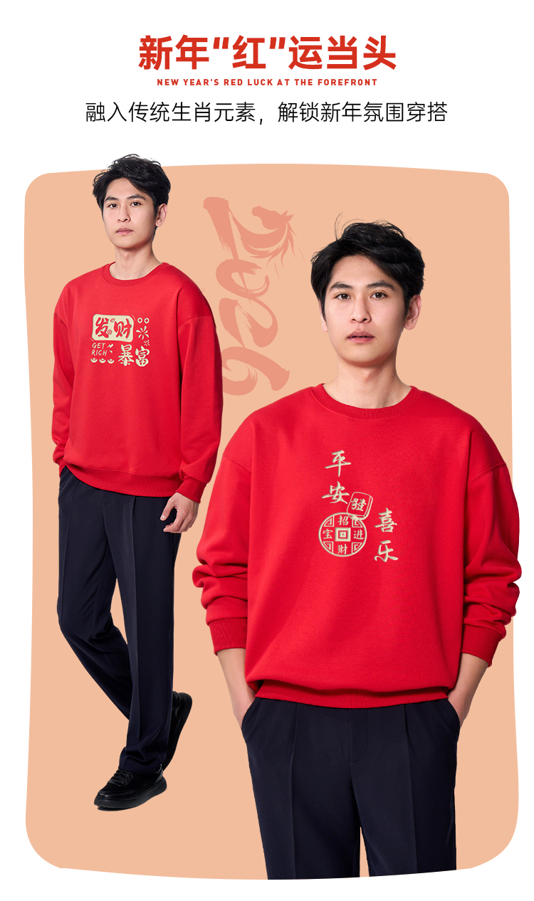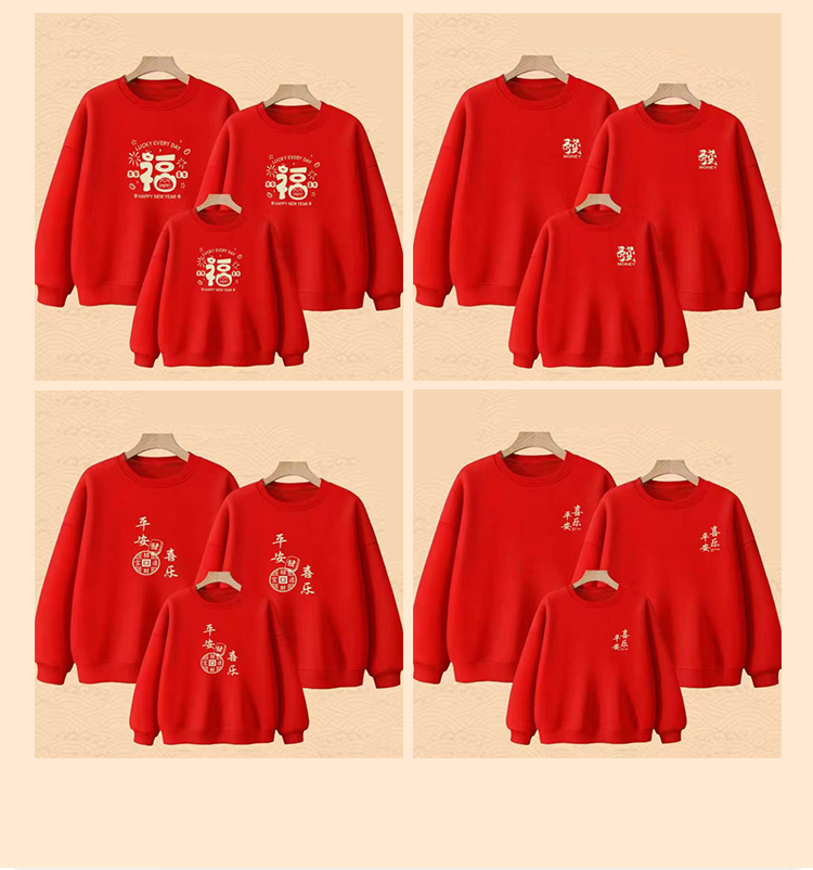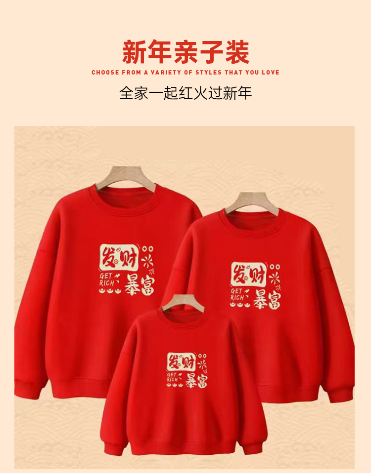 【马年新年加绒亲子卫衣】2026过年贺岁亲子装 本命年红色长袖T恤休闲保暖打底上衣VT601