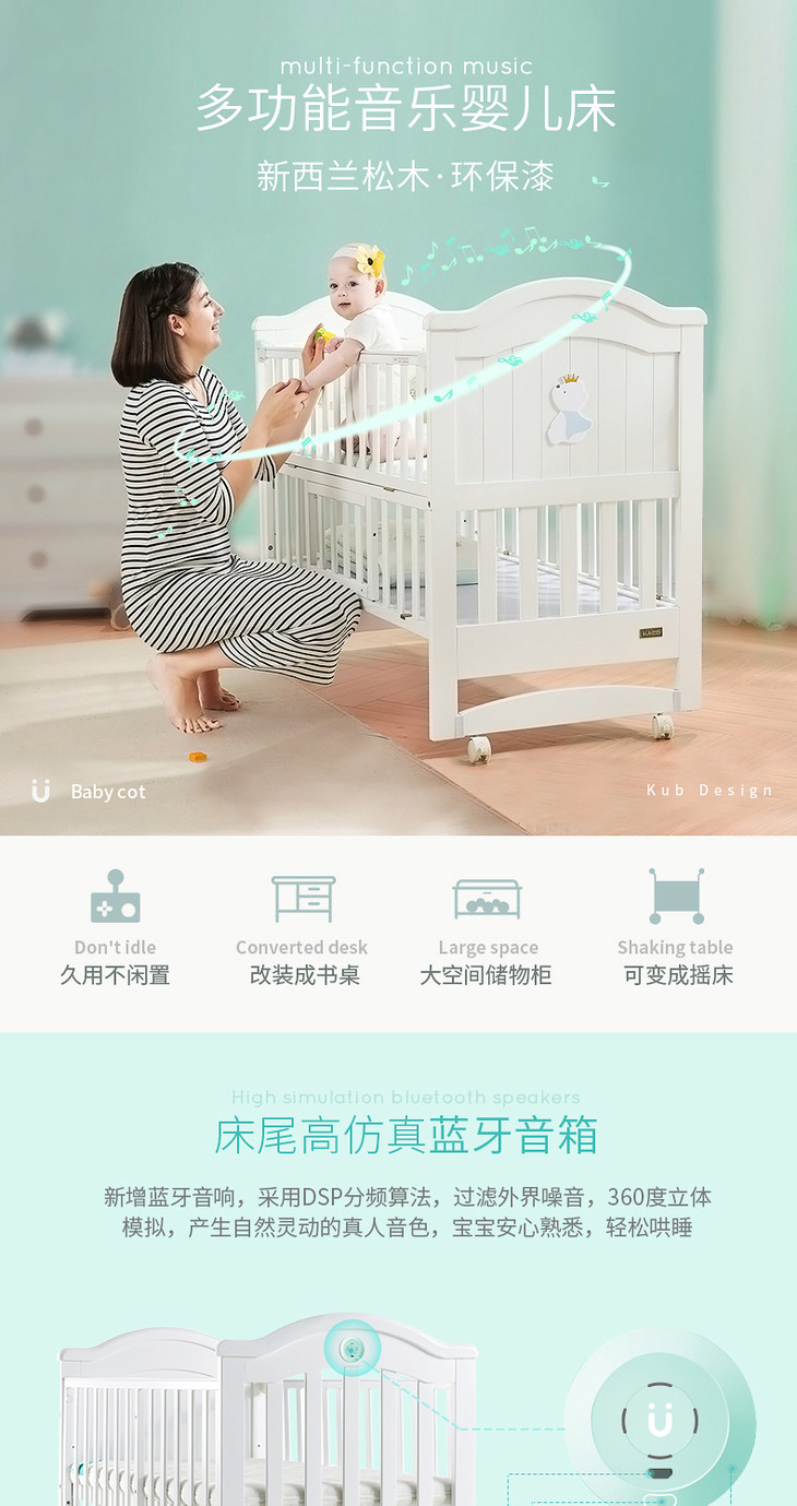 KUB可优比实木婴儿床拼接大床多功能小床摇床新生儿bb床儿童床