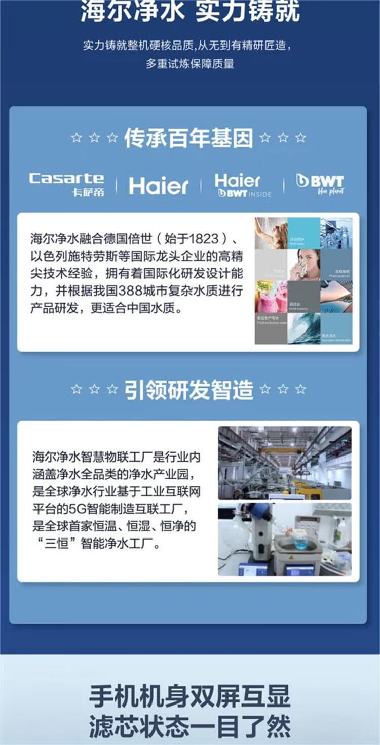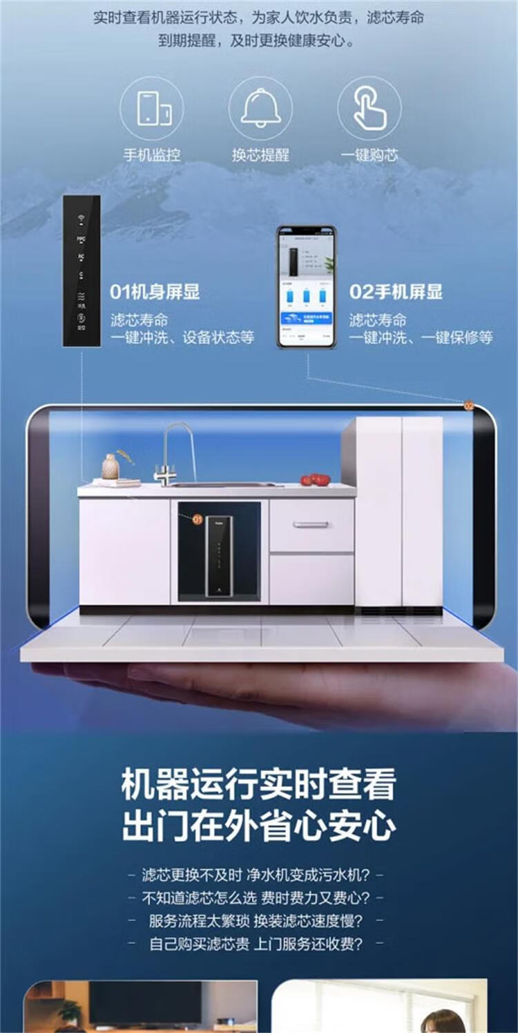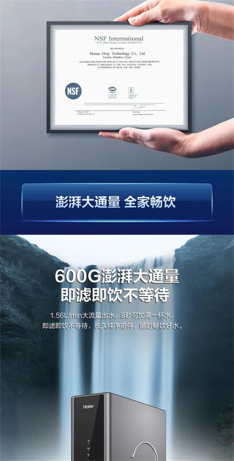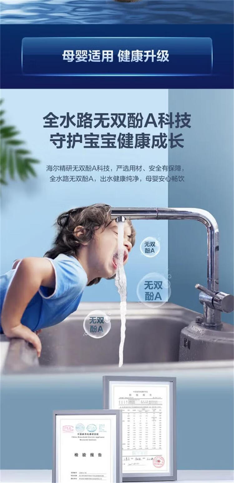 海尔(haier)海尔净水器HRO600C5-3U1家用600G纯净双出水长效RO膜反渗透抗污堵 HRO600C5-3U1