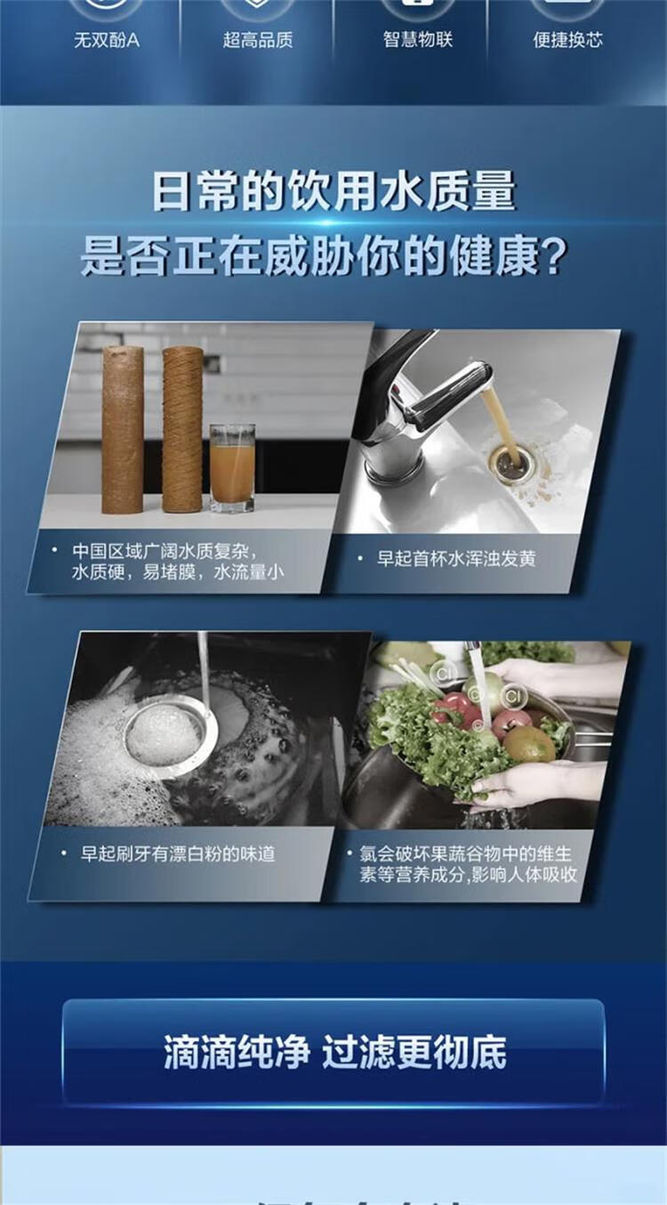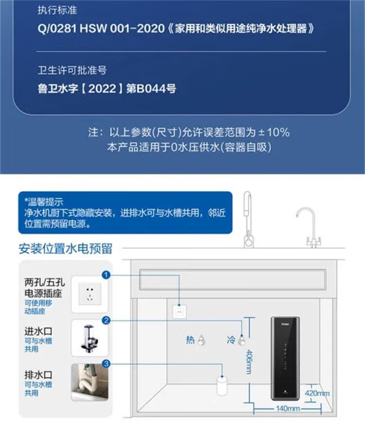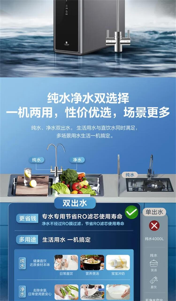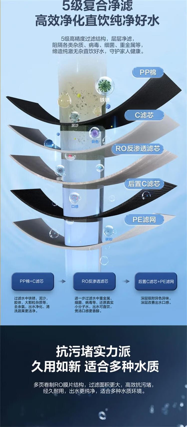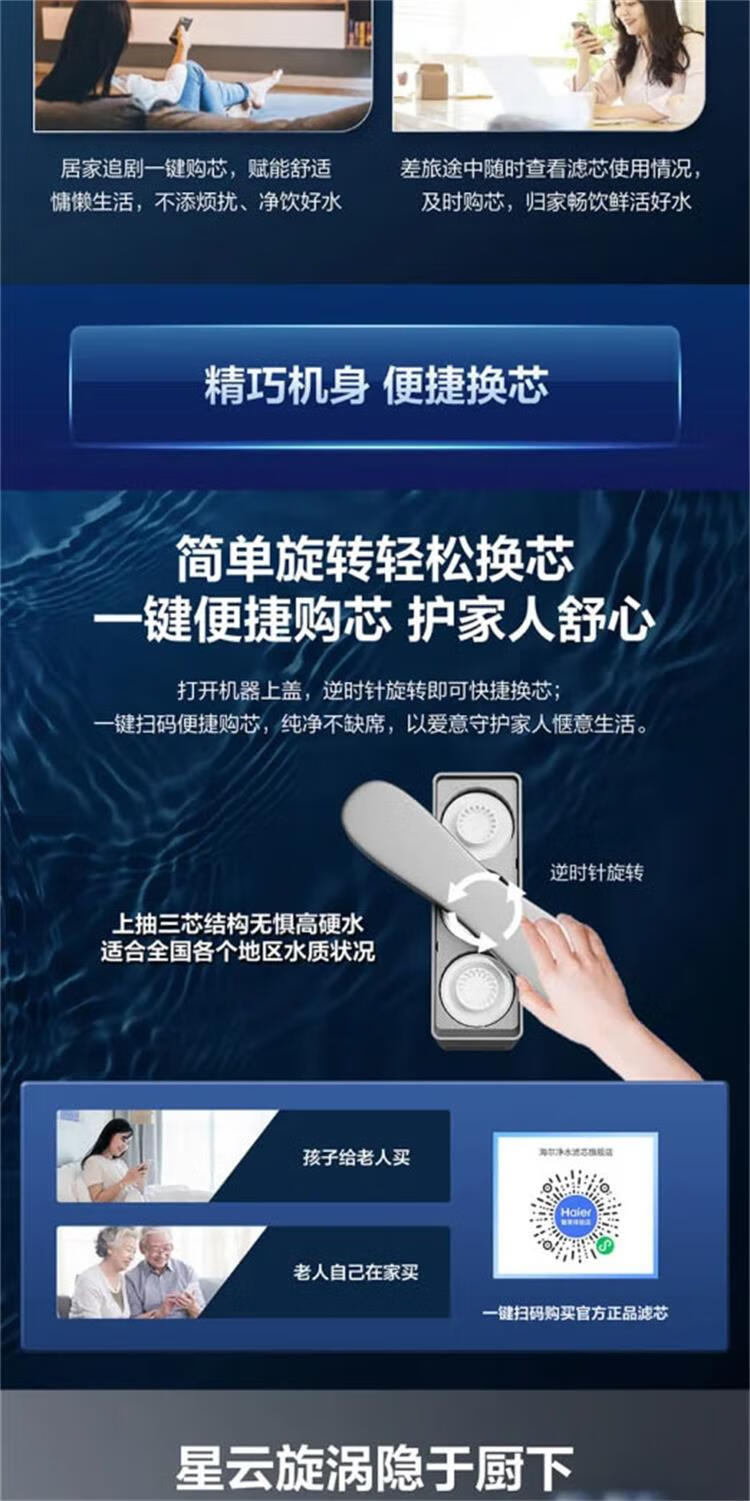海尔(haier)海尔净水器HRO600C5-3U1家用600G纯净双出水长效RO膜反渗透抗污堵 HRO600C5-3U1