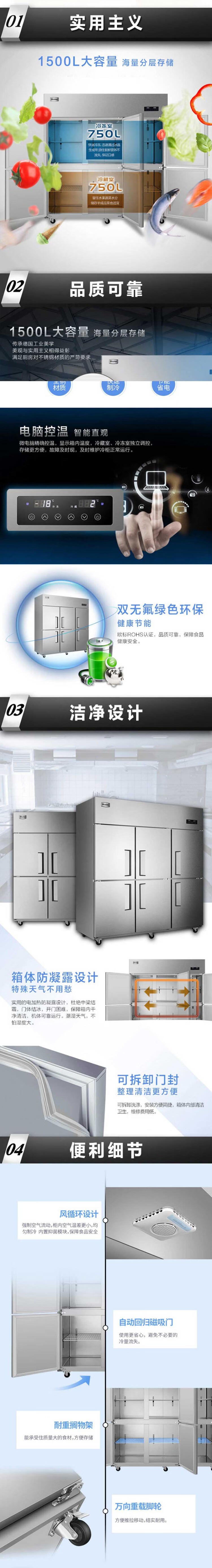 海尔商用厨房冰箱1500升 六门冷藏冷冻双温冰箱 店饭餐厅食堂保鲜不锈钢SLB-1500C3D3