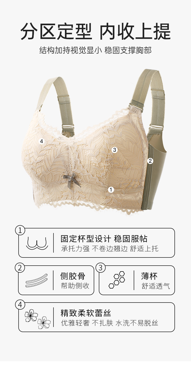 晓露漫漫 文胸(VIP)【大胸显小 全包容显瘦】无钢圈侧收副乳薄款调整型内衣