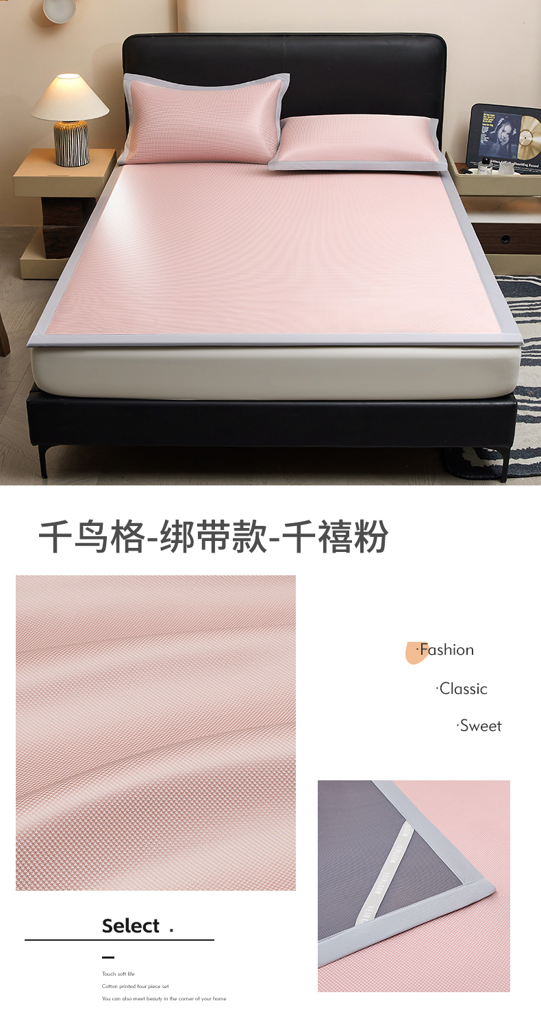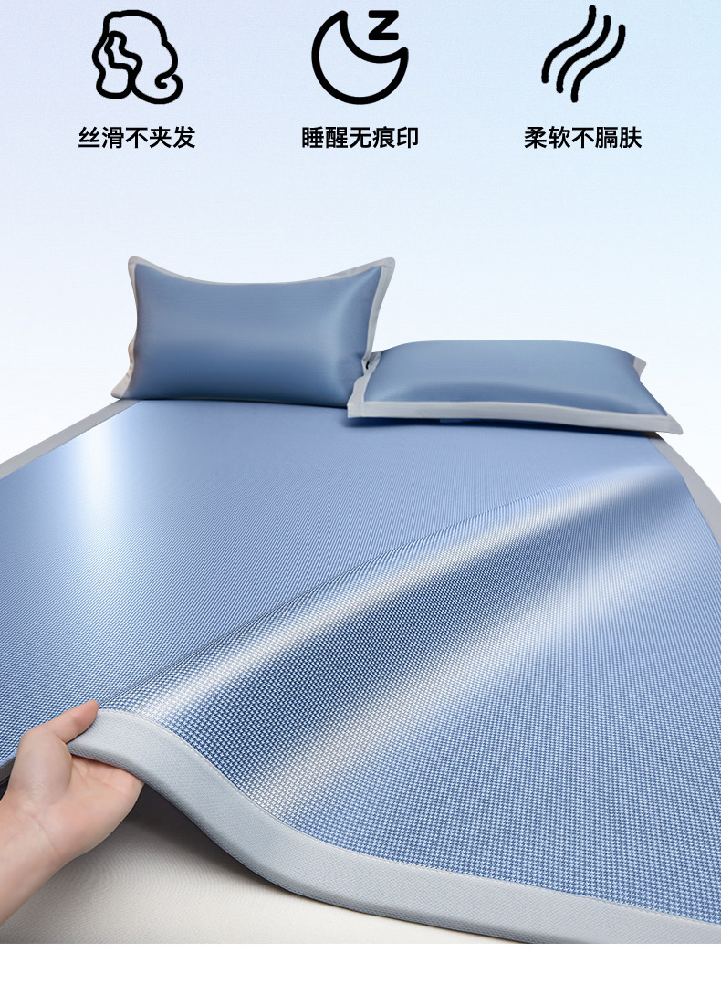【品牌直发】加倍生活 春夏新款碳光冰丝席子三件套 5色可选 加厚三明治冰丝软席平铺席凉席席子