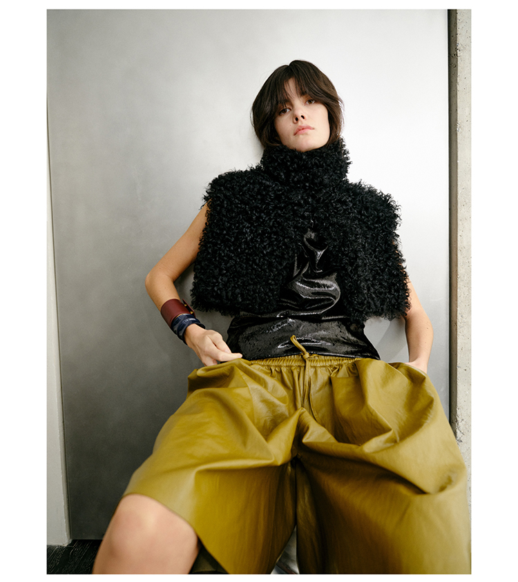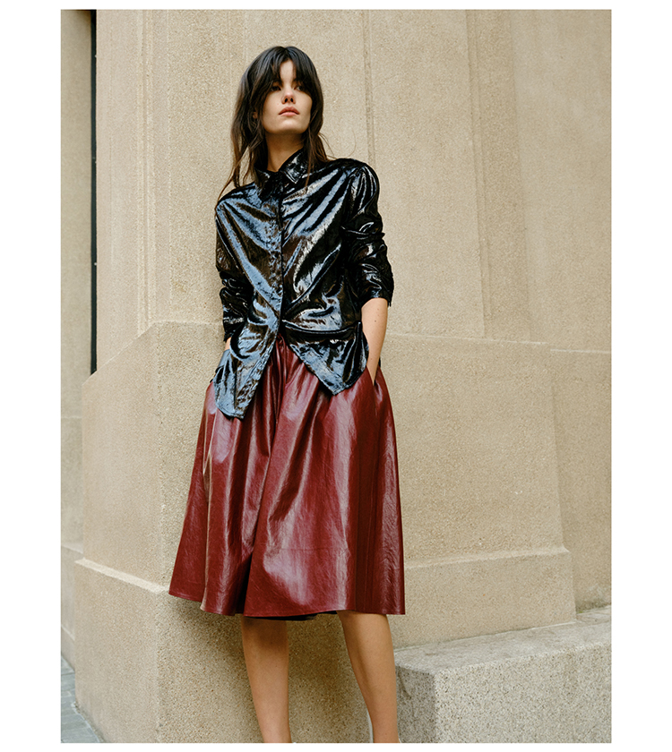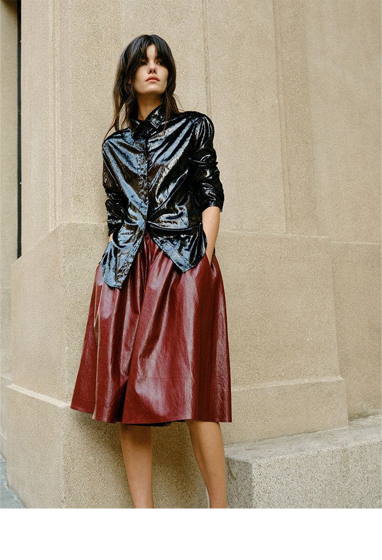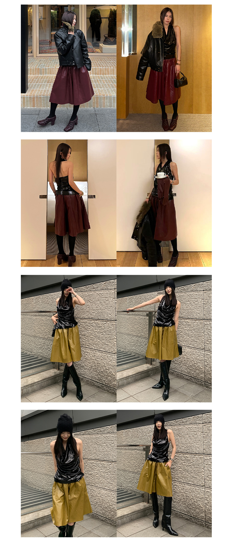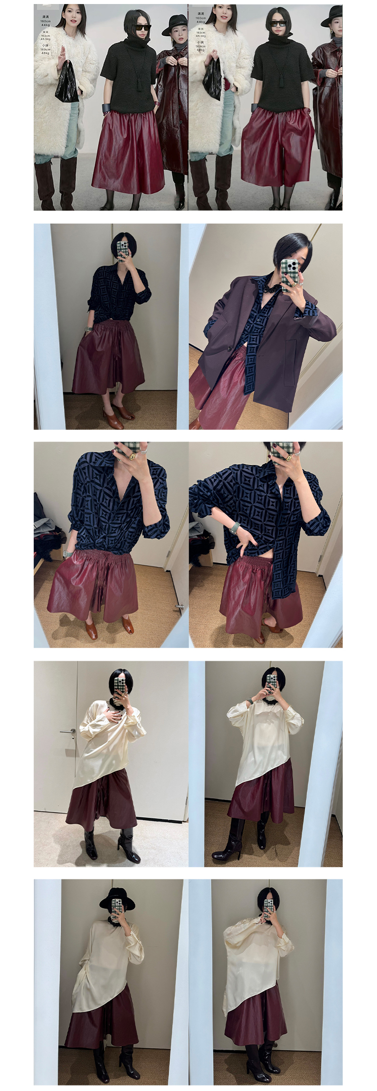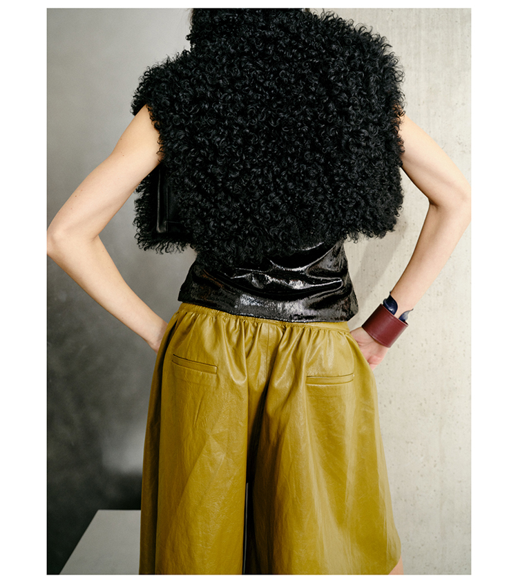 HIDEMI 【当当同款】节日系列进口特殊涂层环保蛋白皮设计感松紧腰抽身褶皱宽松男朋友中裤 勃艮第酒红/橄榄绿