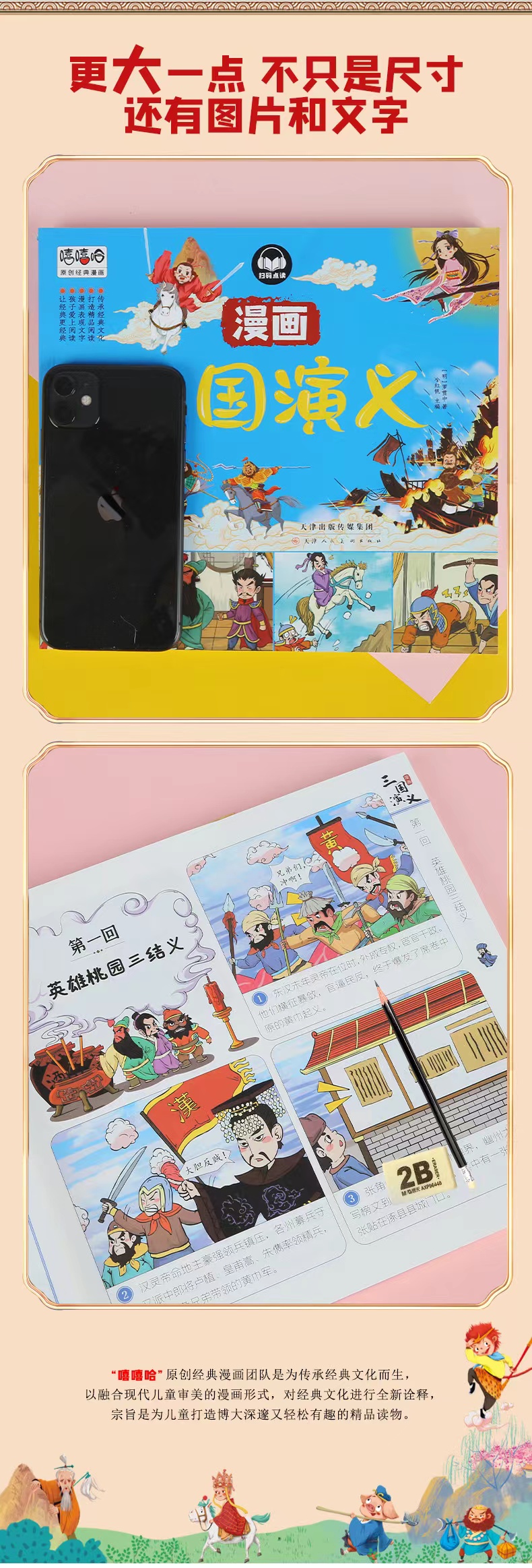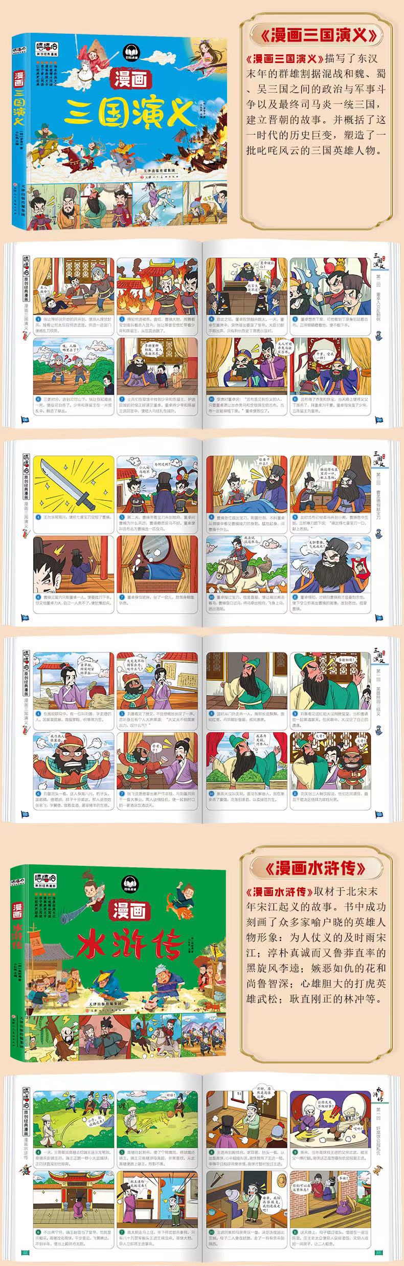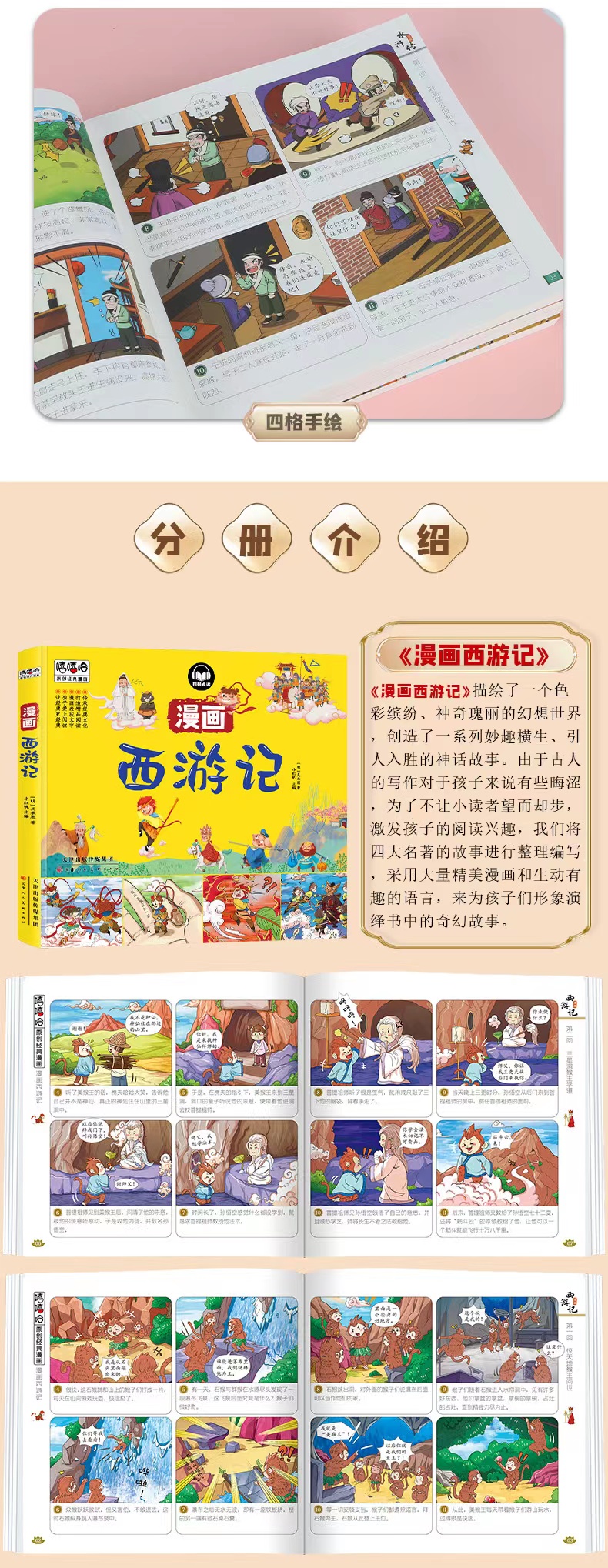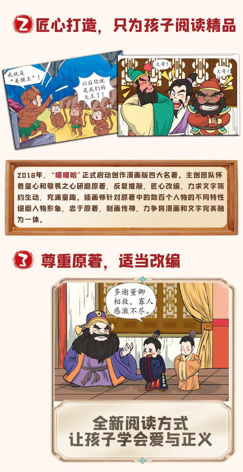 嘻嘻哈原创经典漫画-----四大名著 4本漫画让孩子读懂四大名著,趣味漫画读名著.夸张有趣的插图.附带Q萌人物关系图谱.扫码点读