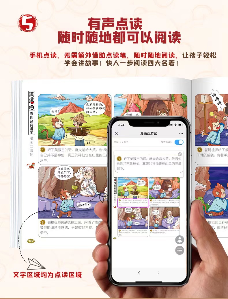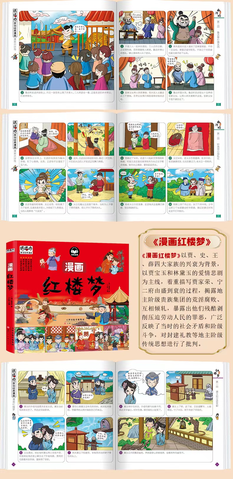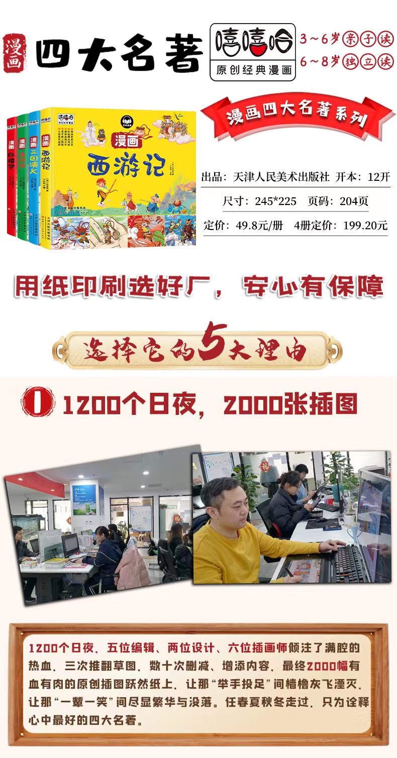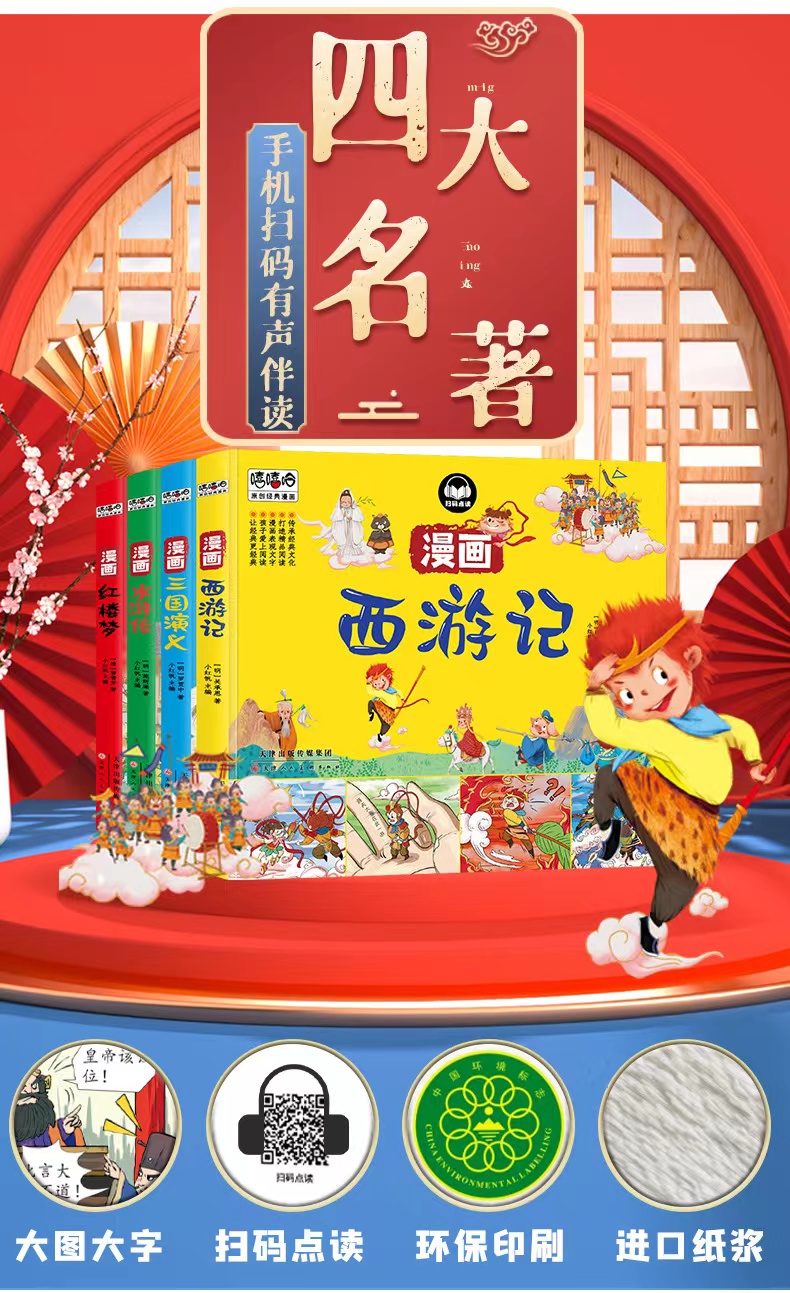 嘻嘻哈原创经典漫画-----四大名著 4本漫画让孩子读懂四大名著,趣味漫画读名著.夸张有趣的插图.附带Q萌人物关系图谱.扫码点读