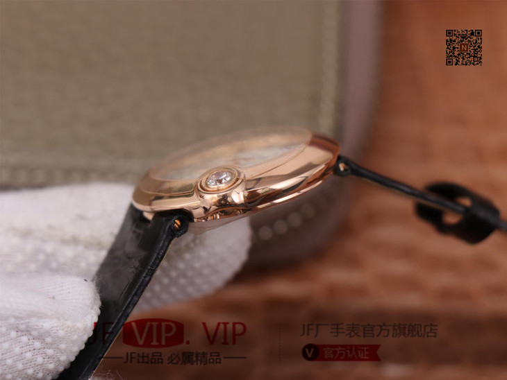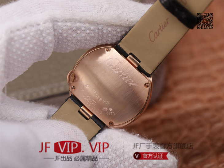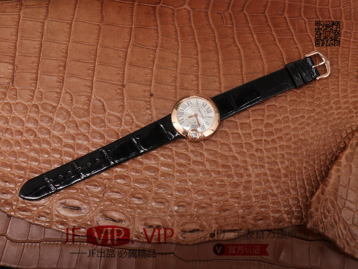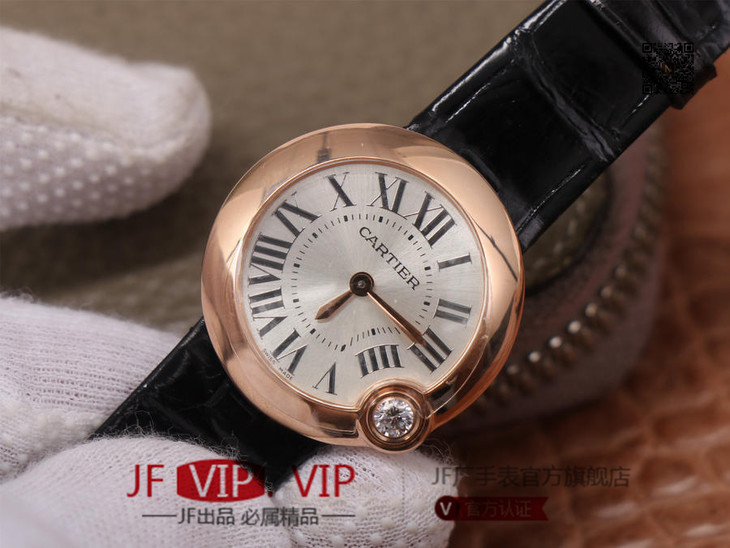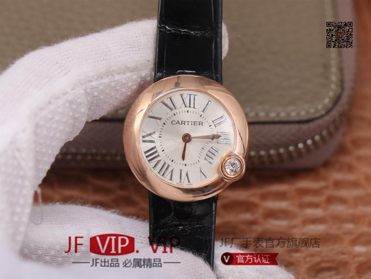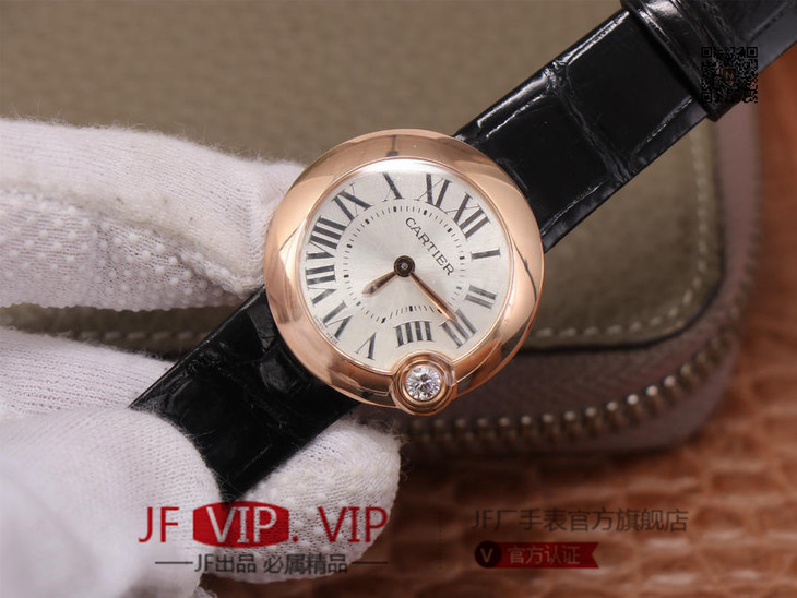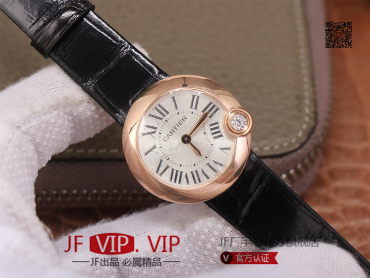 卡地亚Ballon Blanc de Cartier系列,尺寸30mm,瑞士朗达石英机芯+Cartier专用甲板 ,4点钟表冠镶嵌一颗0.14克拉的钻石,女士