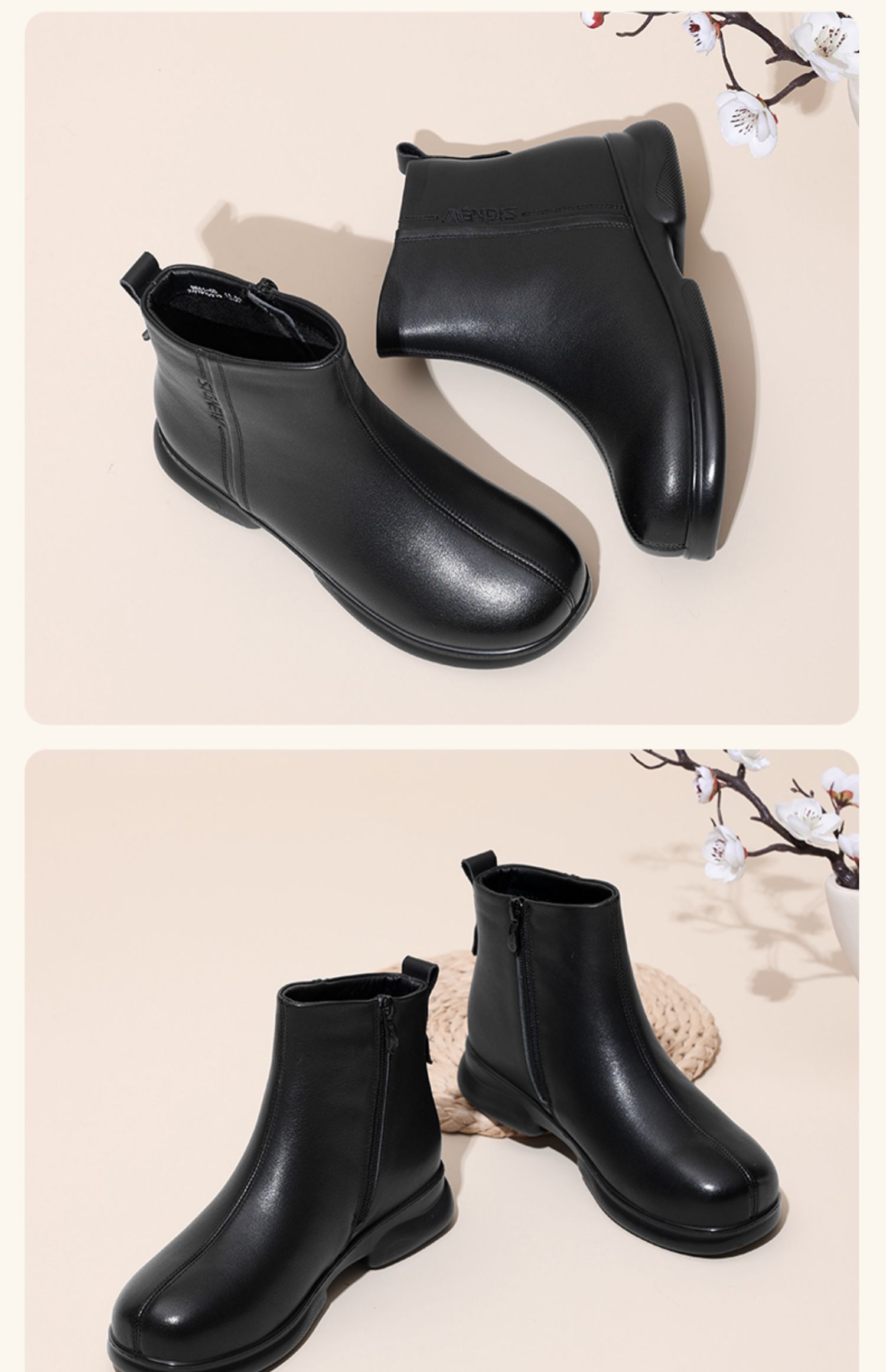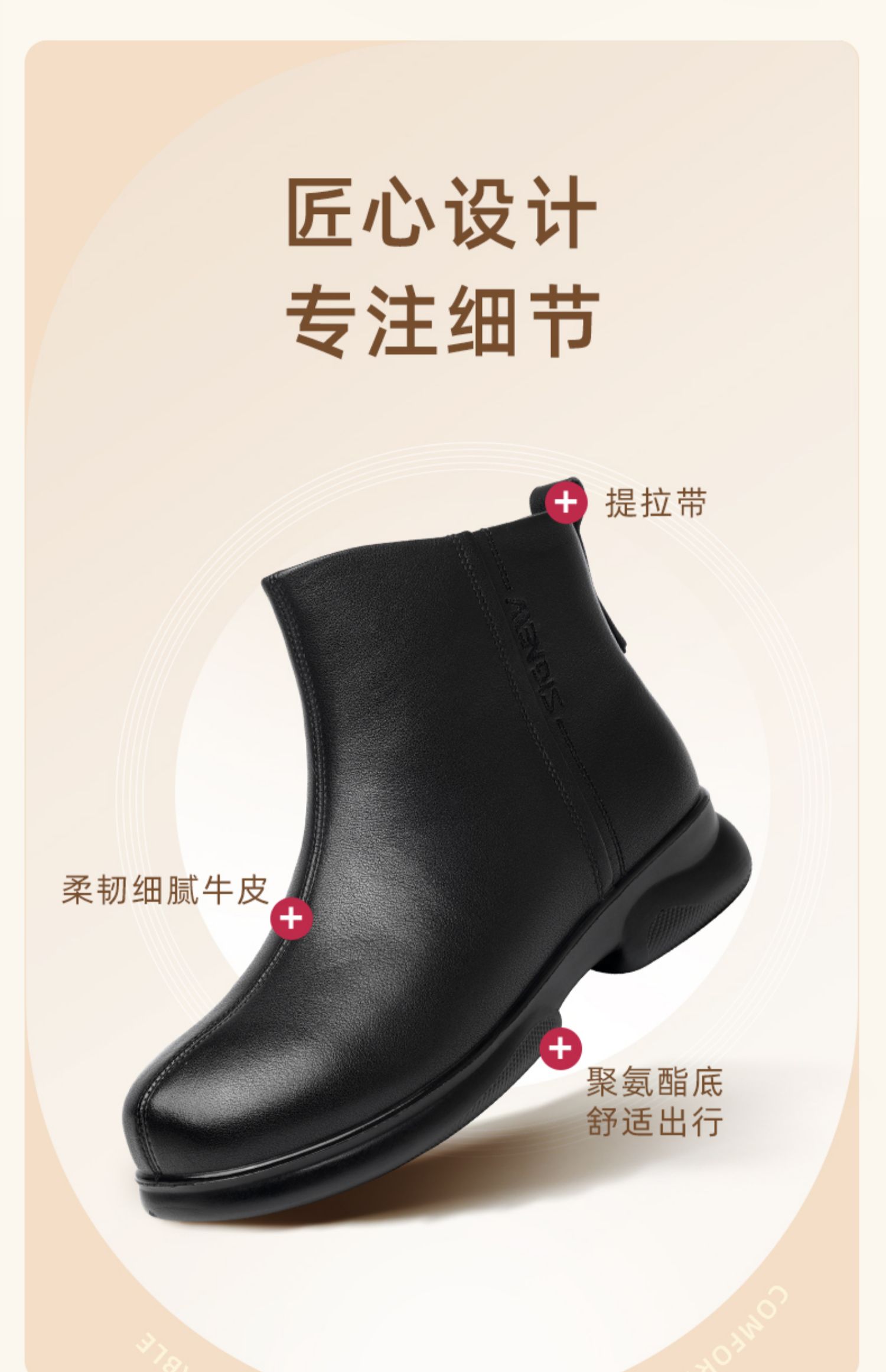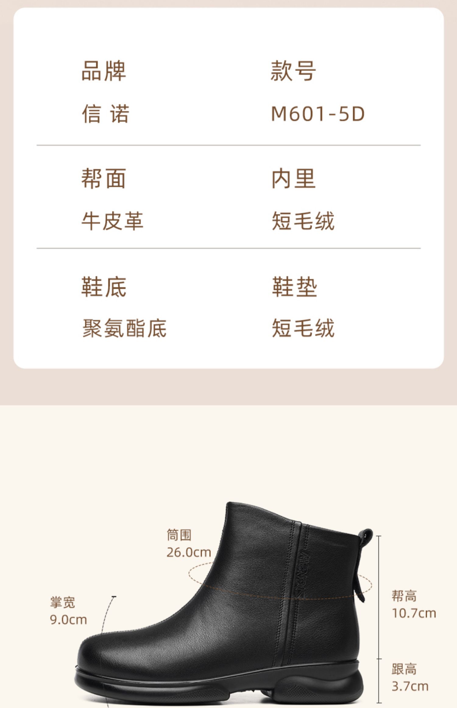 信诺真皮软底切尔西短靴女冬季新款加绒保暖妈妈棉鞋皮鞋短筒靴子M601-5D